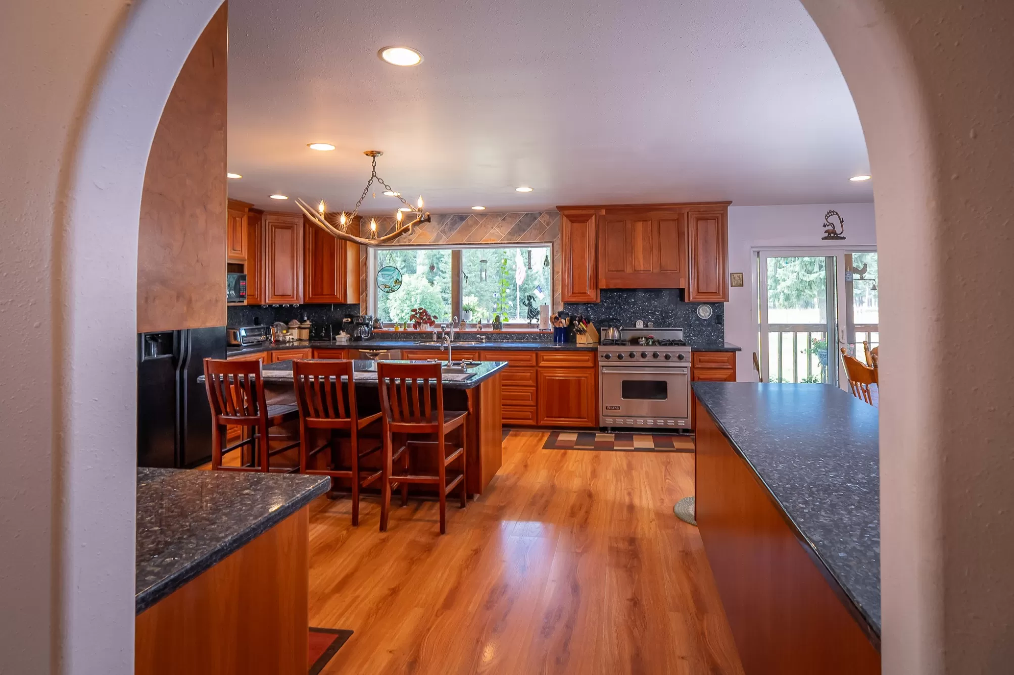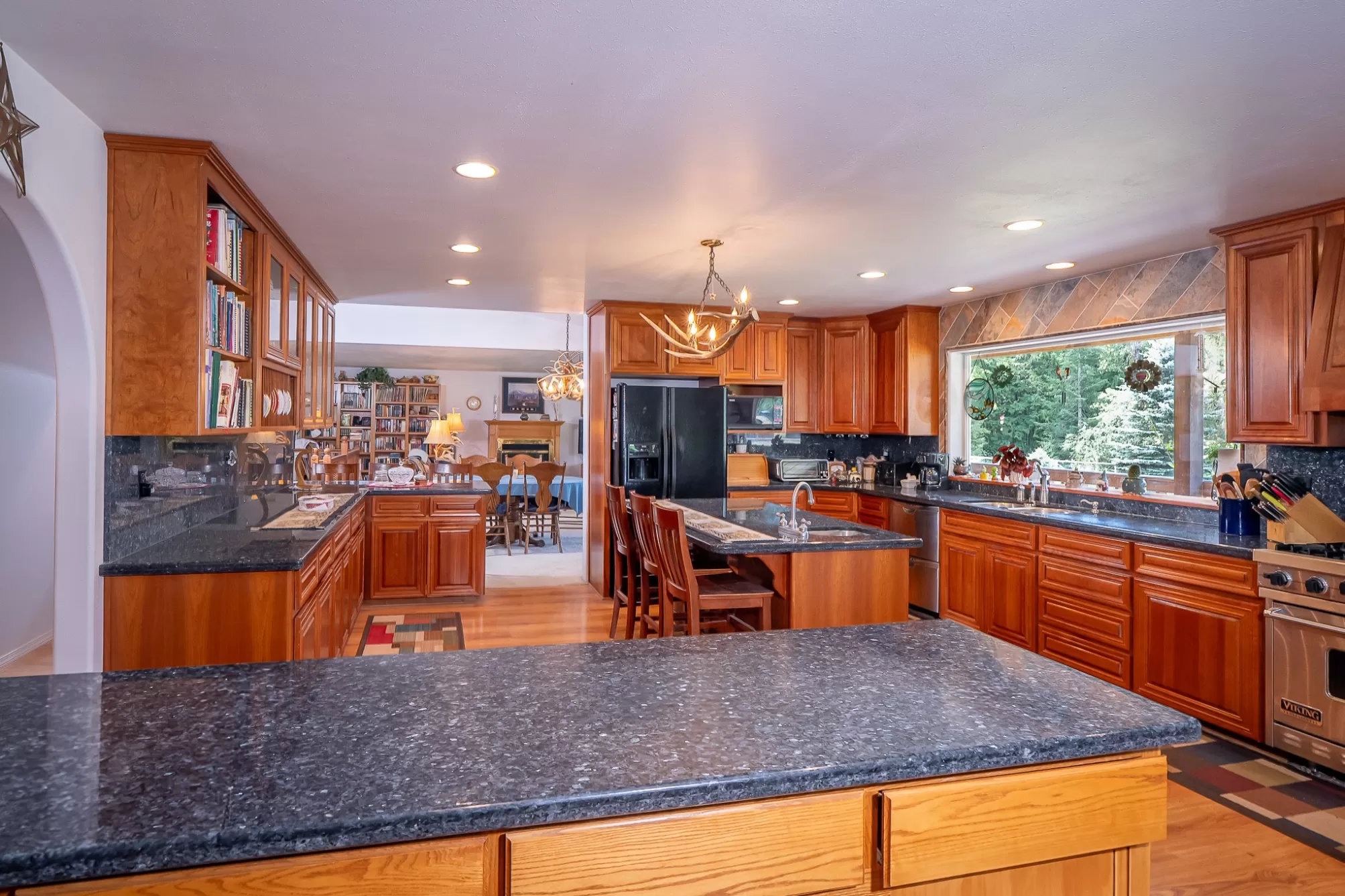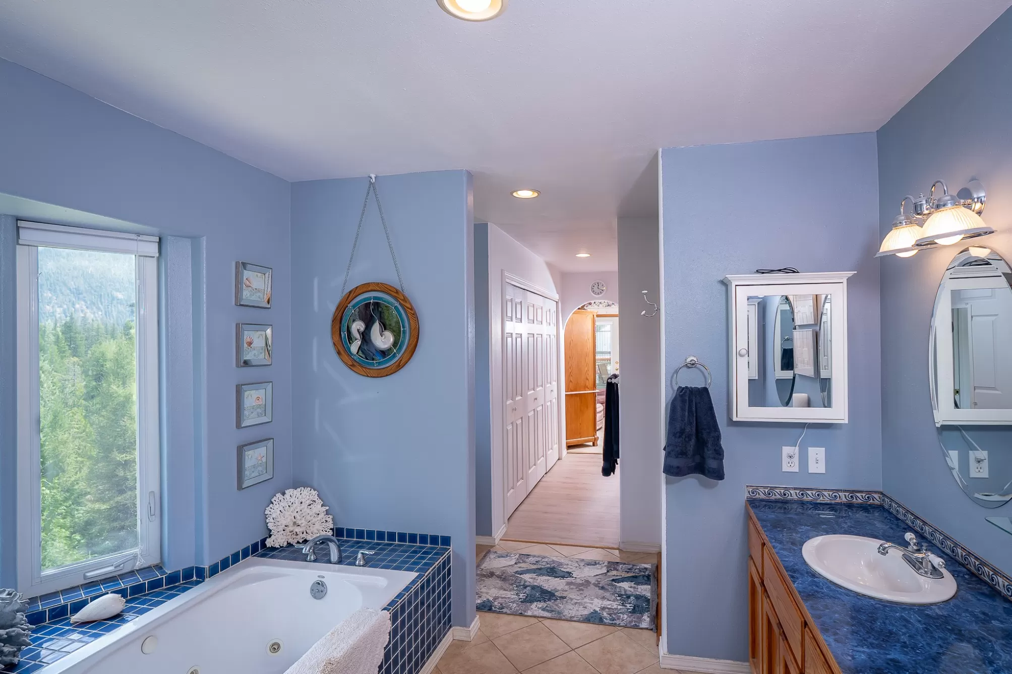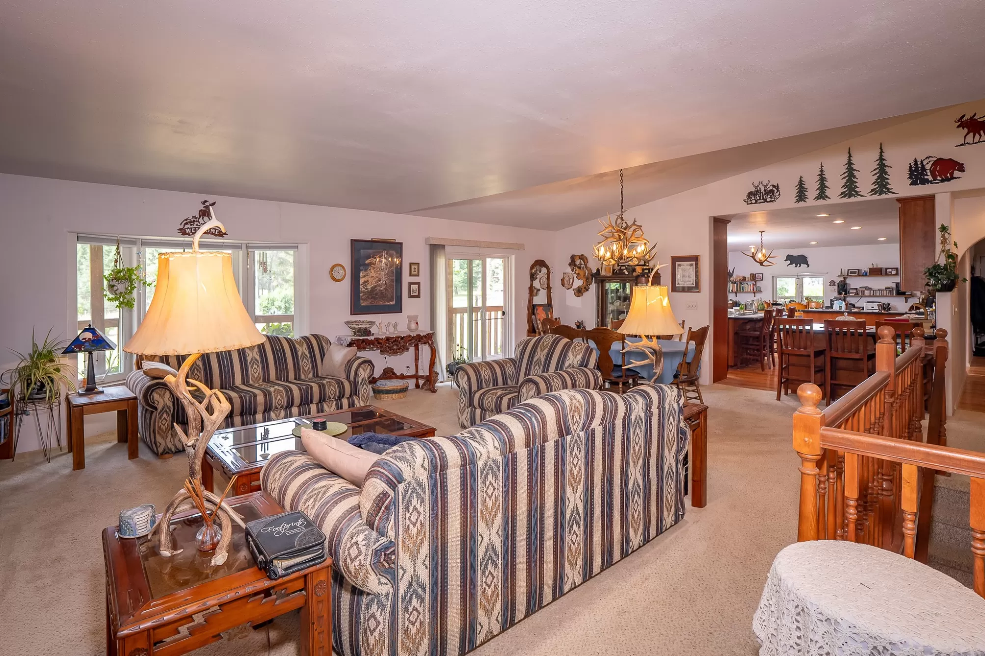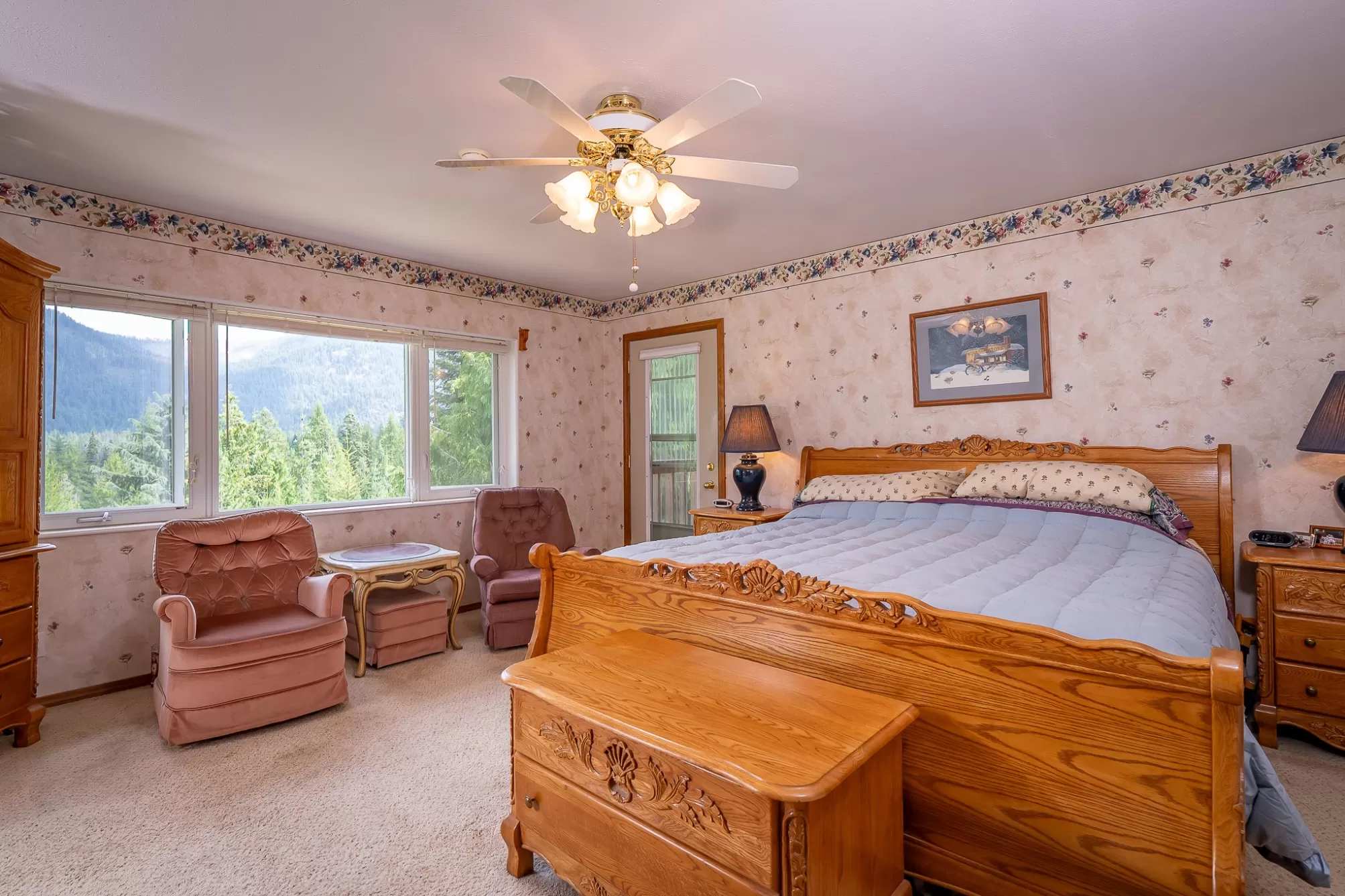 This spacious 3-bedroom/3-bathroom house sits on a benched 21.85 acres off of a maintained county road. The property features a fenced landscaped yard with a fire pit, play area, horseshoe pit, and flowering plants. There are numerous species of trees along with lilac, maple, cherry, pear and hazelnut trees. The outbuildings include a barn, woodshed, storage sheds and an older cabin with utilities that use to be (and can still become) living quarters. The main house and cabin are on separate power meters and septic but share the same (well) water source. Seasonal Cutter Creek runs through with 1st water rights to this property. Beautiful mountain views of Engle Peak, Goat Peak and Government Mountain can be seen from the 3936-sf house that boasts granite counter tops, cherry and oak cabinets, radiant in floor heat, propane fireplace, and REAL antler chandeliers. 1968-sf main level has a wraparound deck and a 1968-sf fully finished daylight basement.