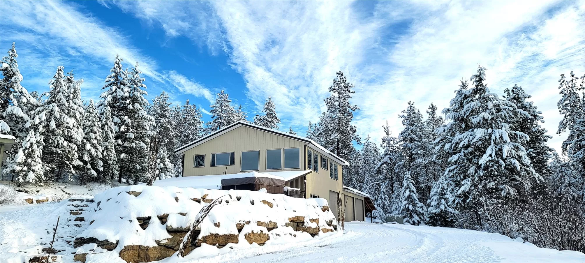 Expansive panoramic views of the gorgeous Cabinet Mountains create a Montana Mountain retreat you will rarely want to leave. Just shy of 25 acres, this property consists of 4 separate parcels that combine together to create this unique and private paradise. The main home welcomes you with a sense of warmth, featuring a fireplace that promises cozy evenings, a vaulted ceiling that enhances the spaciousness, and both wood ceiling and wood wall details that create a rustic, inviting atmosphere. Featuring an open floor plan, picture windows showcase the stunning views while the attractive kitchen with its beautiful cabinetry, double oven, and large kitchen island provide the perfect space for friends and family to gather. Lovely wood finishes tie the space together seamlessly with the butler pantry and coffee bar. Master bedroom has lovely ensuite bath. Dedicated office is perfect for those working from home. Unfinished daylight basement creates a blank canvas which can be completed to compliment a family's needs. This property has a sauna and offers a deck and patio, providing space to relax and enjoy the surroundings, with a hot tub, offering the ultimate in relaxation. The 4800 square foot detached shop features a 4+ car garage with shop space, 3+ carport spaces, den/man cave, plenty of storage, and an upstairs sky room which captures the panoramic views while providing the ideal guest quarters, exercise room, yoga studio or whatever space your family may need. Separate guest home is currently an open slate, where you can create the ideal Montana getaway for future guests. Prepare to be inspired by this remarkable mountain retreat.