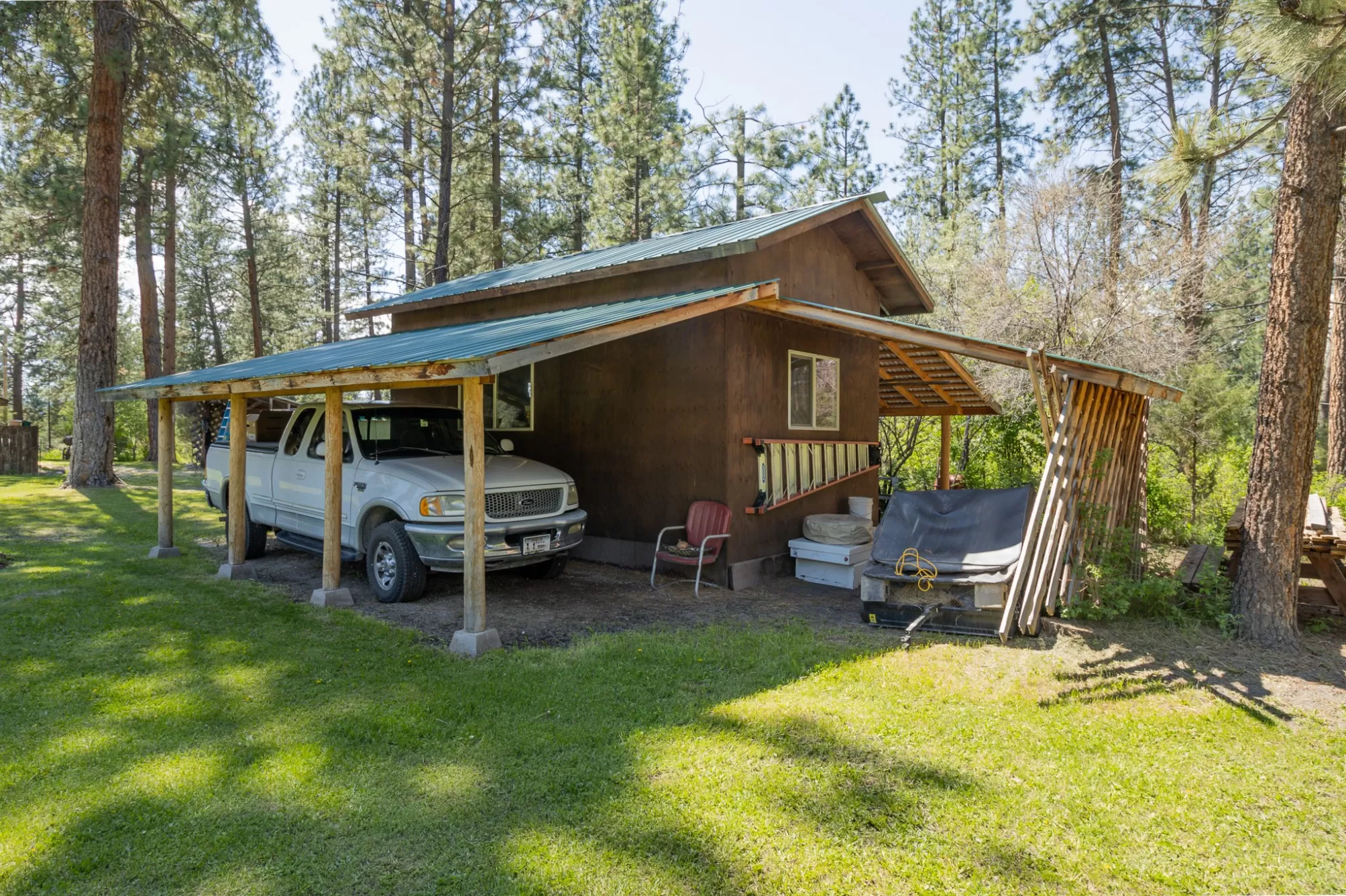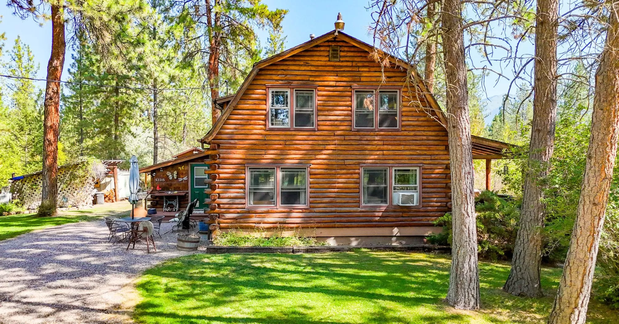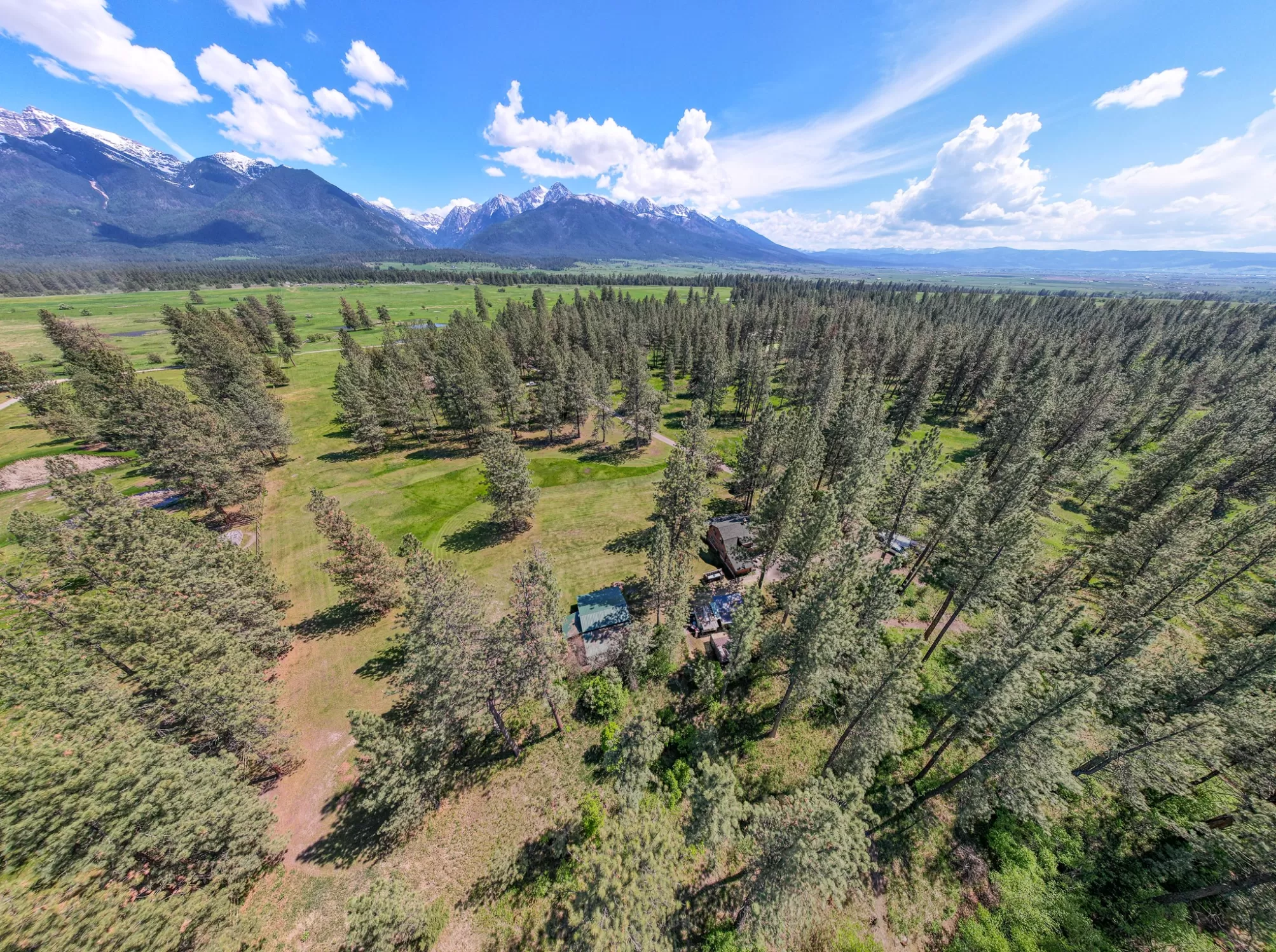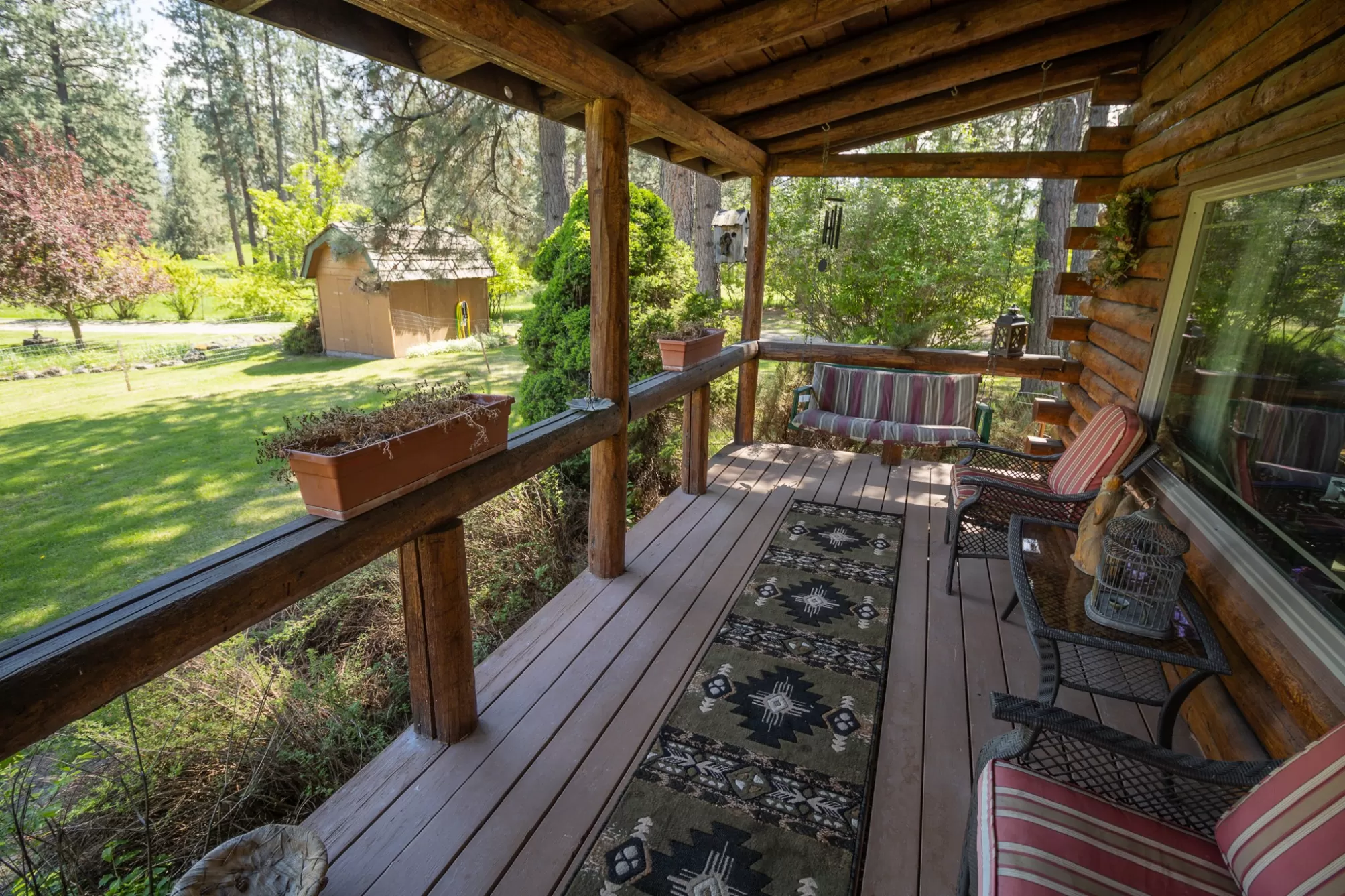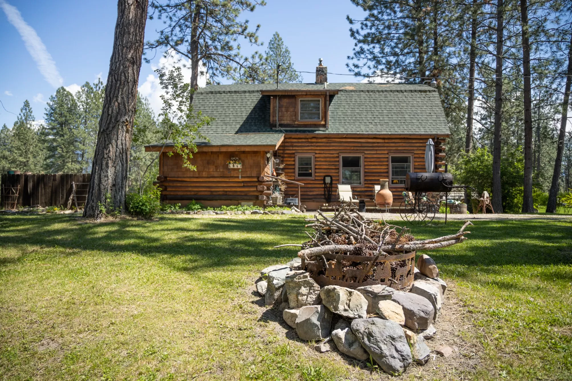 Nestled at 53315 Timberline Way, Charlo, Montana, this single-family residence offers an inviting home ready for move-in within the expansive landscape of the Mission Mountains in Lake County. The living room presents a captivating space, where the warmth of the propane fired living room stove and the rustic charm of a log home are complemented by a beamed ceiling, creating cozy sophistication. The kitchen and dining space for culinary endeavors and gatherings, extending the home's distinctive aesthetic into a private retreat. Outside, the property boasts a 5 acre lot, offering space to breathe and explore, room for horses and animals, along with a shed, covered deck and patio for enjoying Mission Mountain views. The gambrel roof adds architectural interest, while the laundry room provides functionality. The year around freely flowing Marsh creek adds to its privacy and charm. Enjoy the Beautiful Ninepipes reservoir for hunting and fishing. Don't forget the wood fired Hot tub!