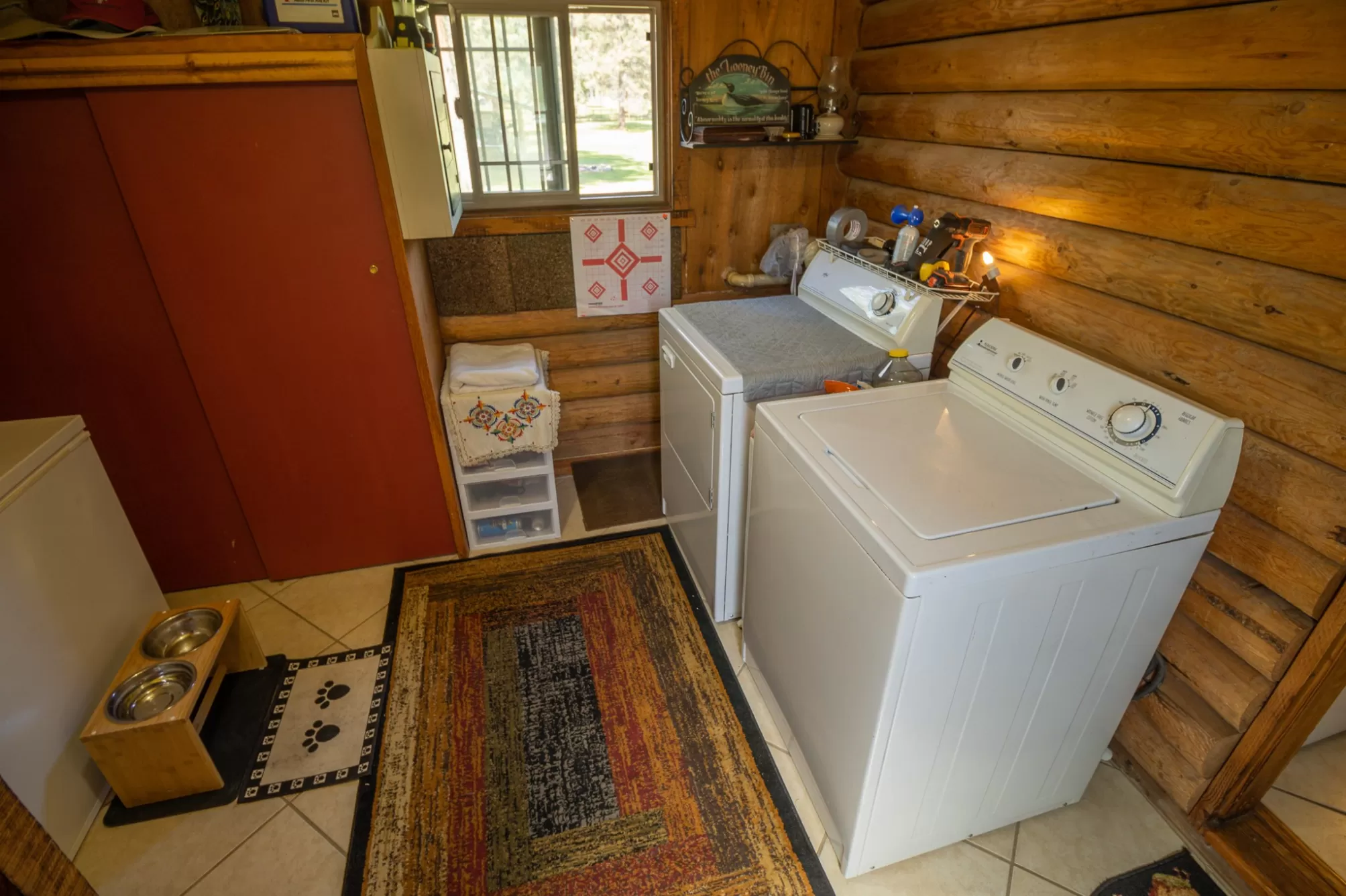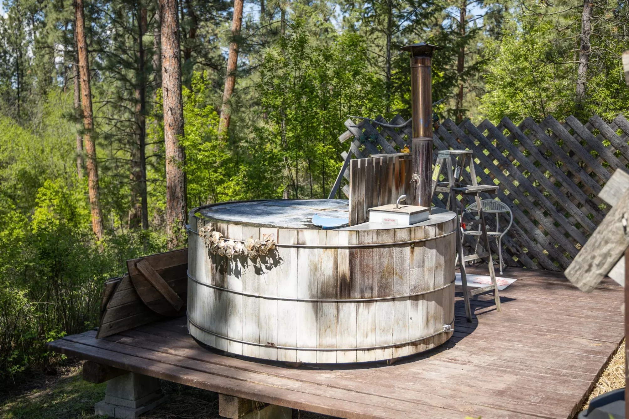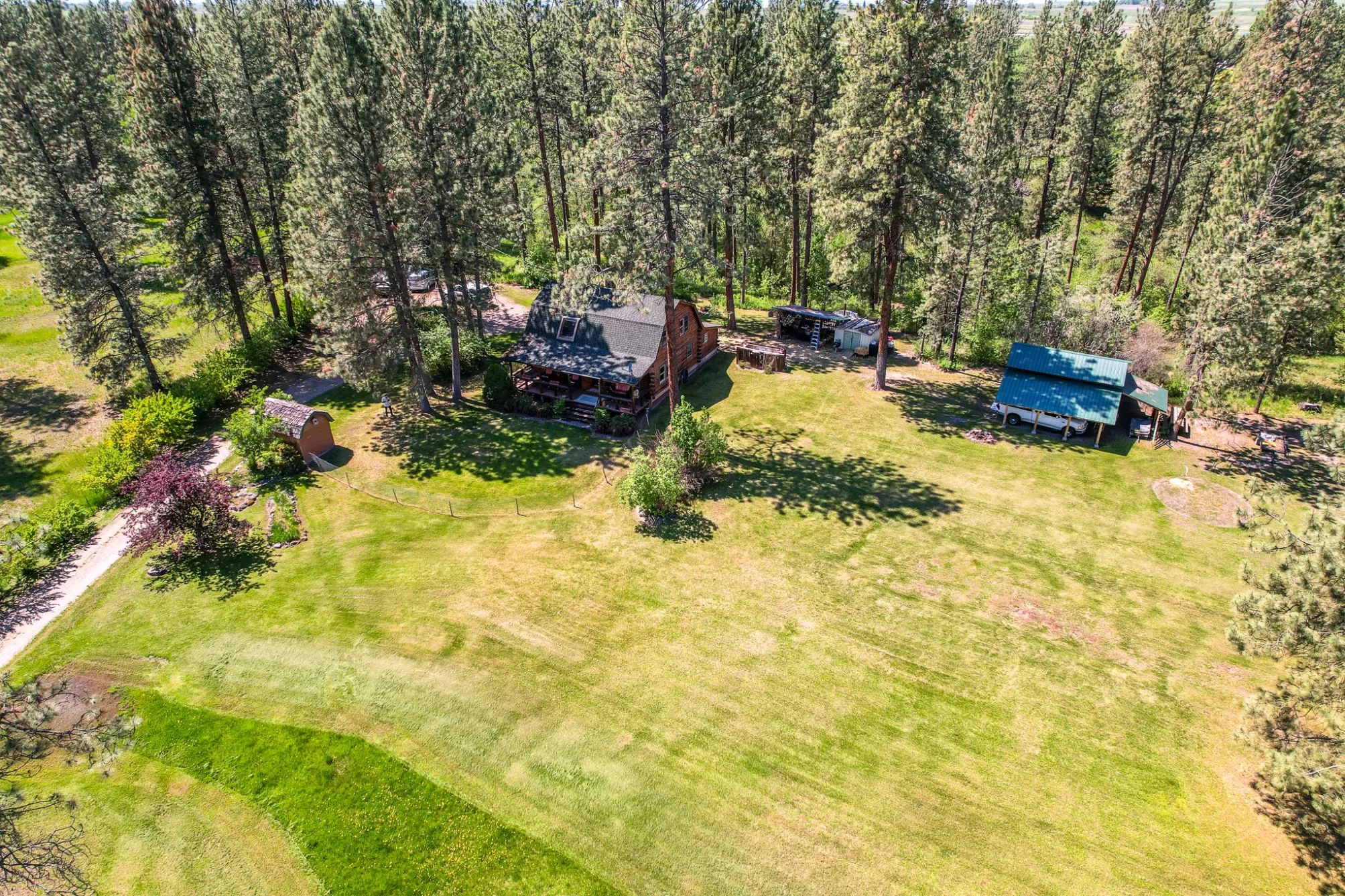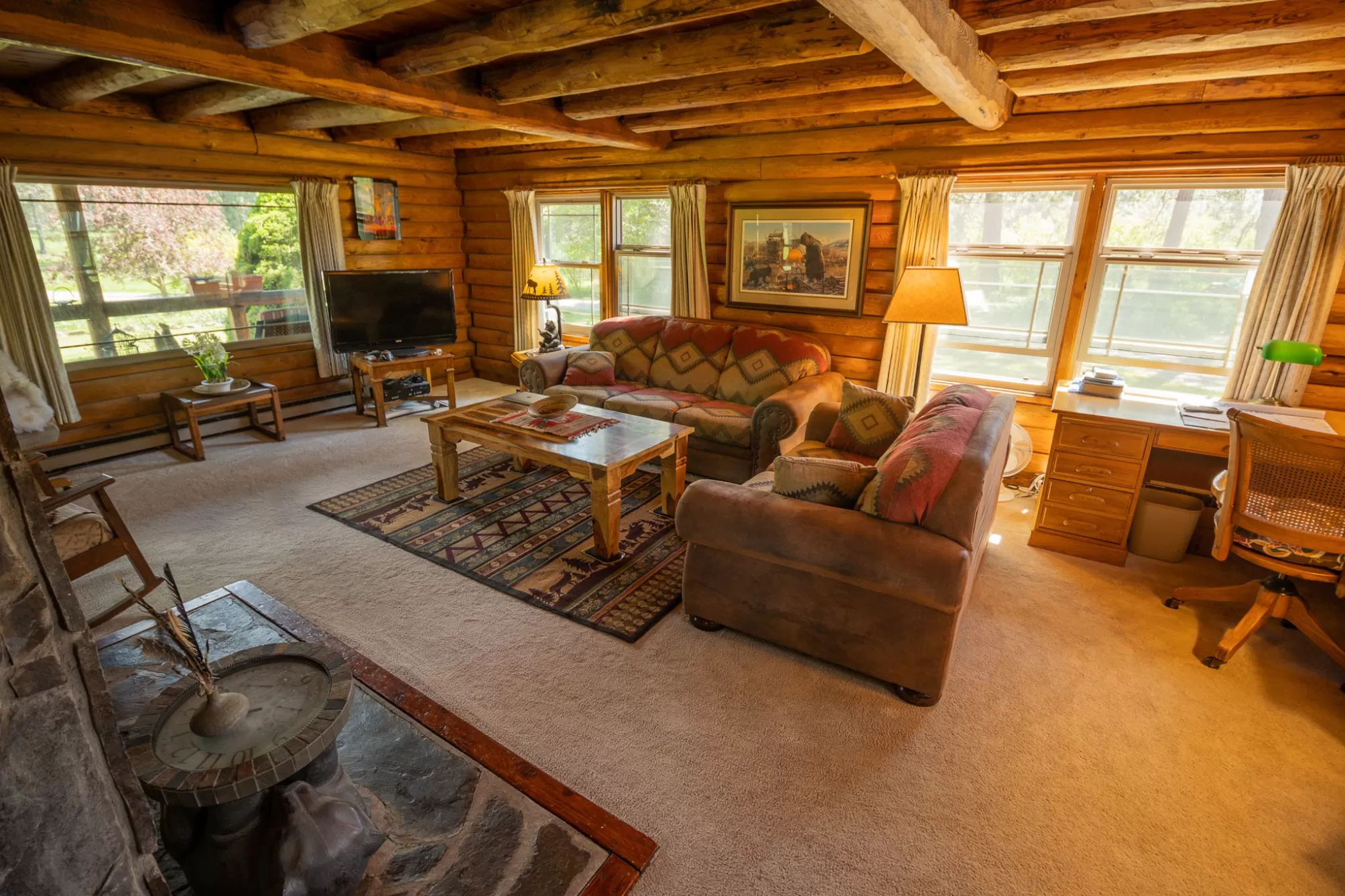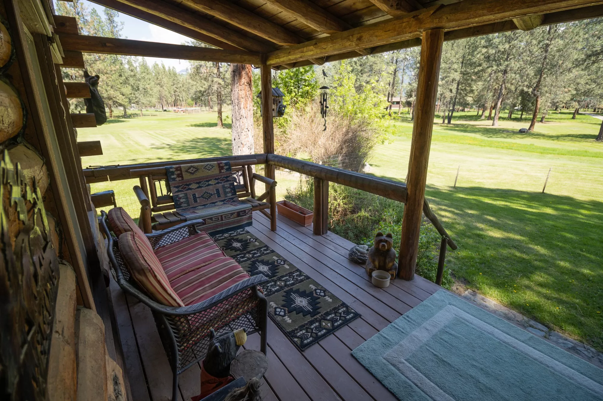 Nestled at 53315 Timberline Way, Charlo, Montana, this single-family residence offers an inviting home ready for move-in within the expansive landscape of the Mission Mountains in Lake County. The living room presents a captivating space, where the warmth of the propane fired living room stove and the rustic charm of a log home are complemented by a beamed ceiling, creating cozy sophistication. The kitchen and dining space for culinary endeavors and gatherings, extending the home's distinctive aesthetic into a private retreat. Outside, the property boasts a 5 acre lot, offering space to breathe and explore, room for horses and animals, along with a shed, covered deck and patio for enjoying Mission Mountain views. The gambrel roof adds architectural interest, while the laundry room provides functionality. The year around freely flowing Marsh creek adds to its privacy and charm. Enjoy the Beautiful Ninepipes reservoir for hunting and fishing. Don't forget the wood fired Hot tub!