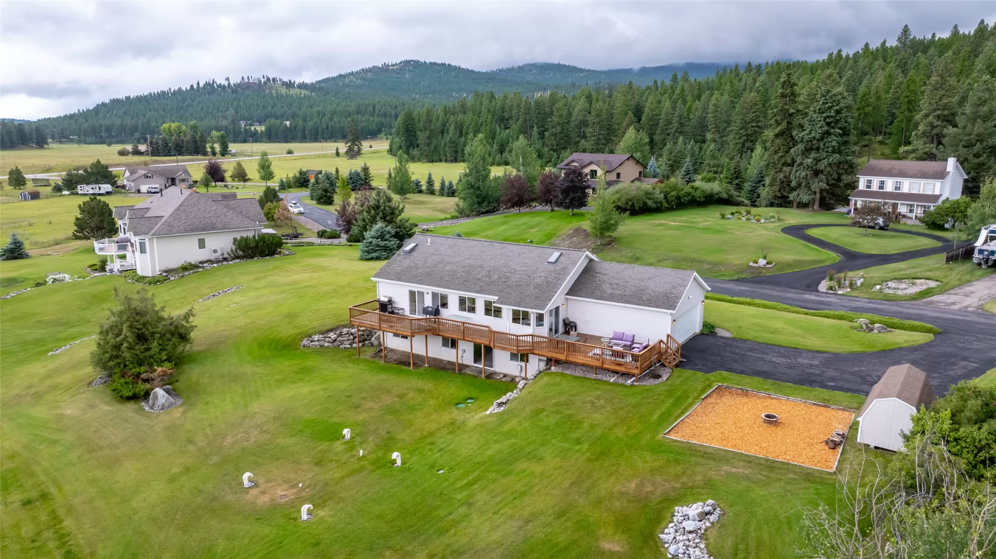 Discover your dream home at 106 Rainbow Drive! This stunning 4-bedroom, 3-bath residence offers peek a boo views of Foys Lake and is perfectly positioned within a short distance to Herron Park and Lone Pine State Park—ideal for outdoor enthusiasts. Enjoy a spacious, light-filled layout with open-concept living, perfect for entertaining or relaxing. Retreat to the generous primary suite with its own private bath, while additional bedrooms provide flexibility for guests, home office, or hobbies. Large walk out basement and additional storage space. Possibility of creating a wet bar for additional entertaining. Step outside to enjoy the massive backyard, fire pit area and storage shed. With quick access to hiking, biking, and water recreation, this home blends comfort, convenience, and Montana beauty. A rare opportunity in a highly desirable location!