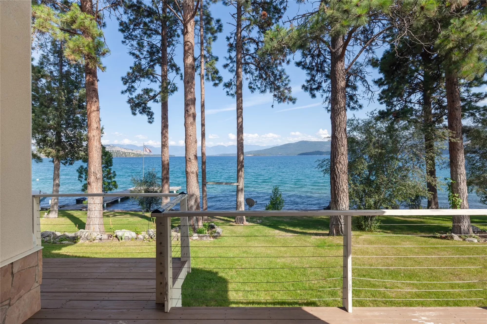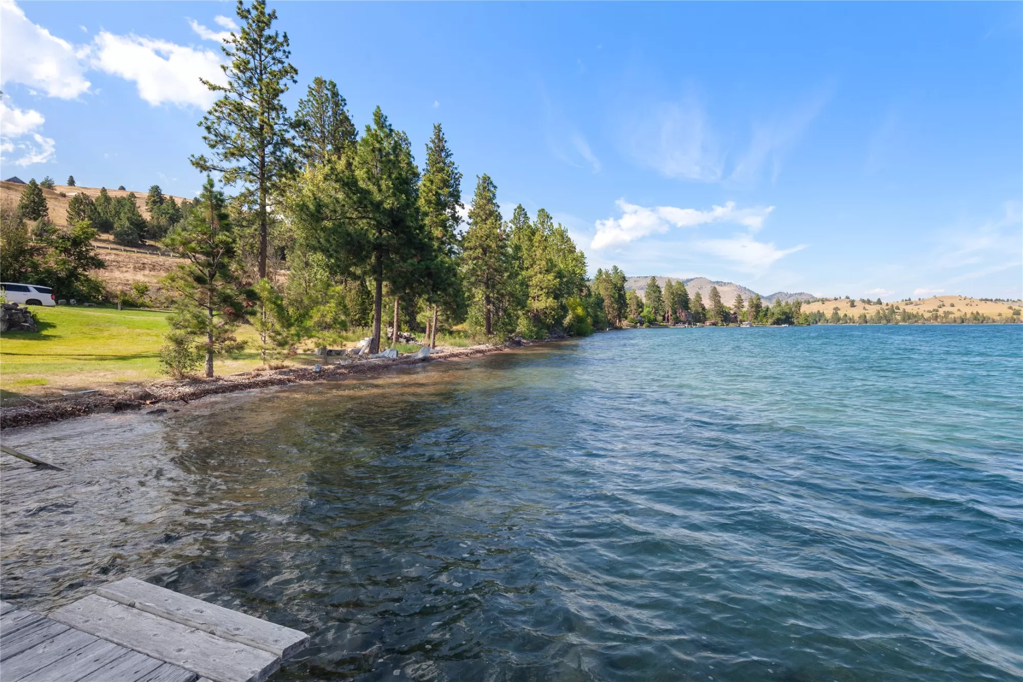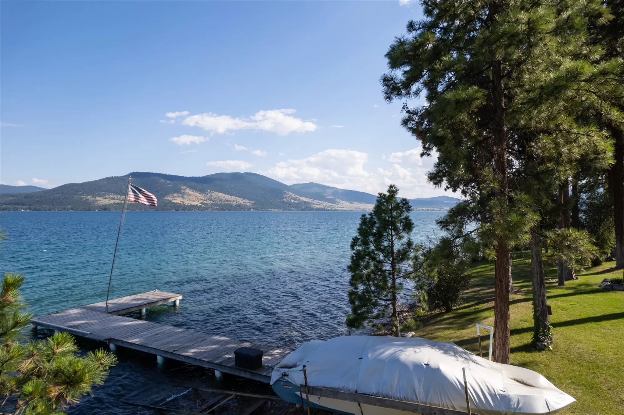 Welcome to your dream waterfront retreat! This immaculate 4,678 sq. ft. custom home is perfectly positioned on 2.2 gently sloped acres with 876’ of private Flathead Lake frontage—offering unparalleled views of Wildhorse, Cromwell, and Melita Islands, as well as the majestic Mission Mountains. Step inside to discover 4 spacious bedrooms and 3.5 bathrooms, with ensuite baths in every bedroom, vaulted ceilings, radiant in-floor heating, and a wall of windows that flood the open-concept living spaces with natural light. The chef's kitchen is appointed w/ custom maple cabinetry, granite countertops, and flows effortlessly into both the formal living and family rooms - complete with a cozy wood and gas fireplace, wet bar, and multiple entertaining areas. The elegant master suite features a jacuzzi tub, bidet, and private deck access. A custom spiral staircase leads to a second-story room currently used as a game and entertainment area, and is plumbed for an additional bath. The home also features an office area, circulating hot water, and an oversized 3-car attached garage. Enjoy lakeside living at its best from the expansive deck or the L-shaped dock with electric boat rail system—ideal for summer adventures and gatherings. The grounds are beautifully landscaped with mature trees, underground sprinklers, and a portion of the property remains undeveloped, offering potential for future expansion or privacy. This home is accessible year-round, making it the perfect legacy property for family getaways, entertaining, or peaceful full-time living.