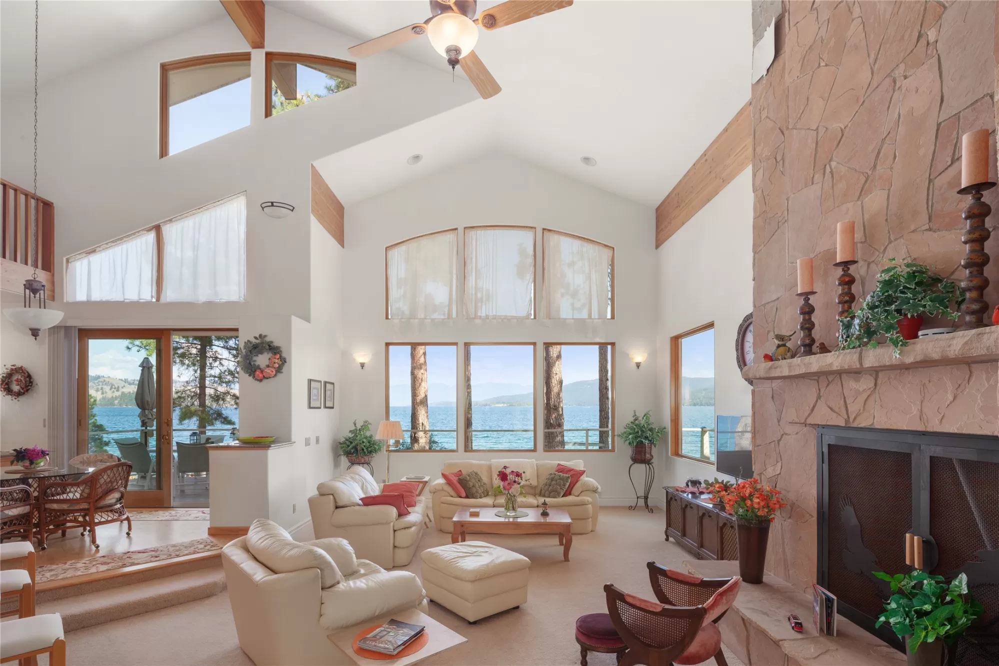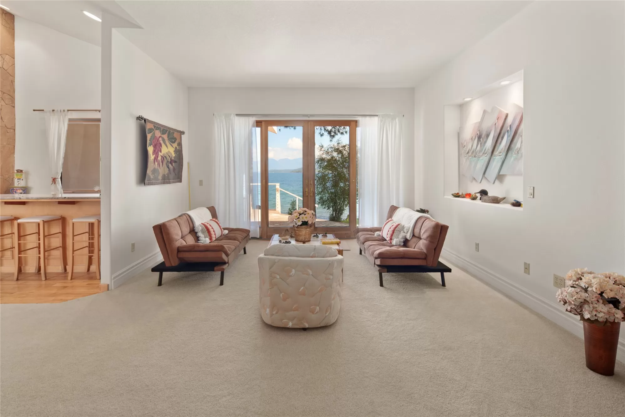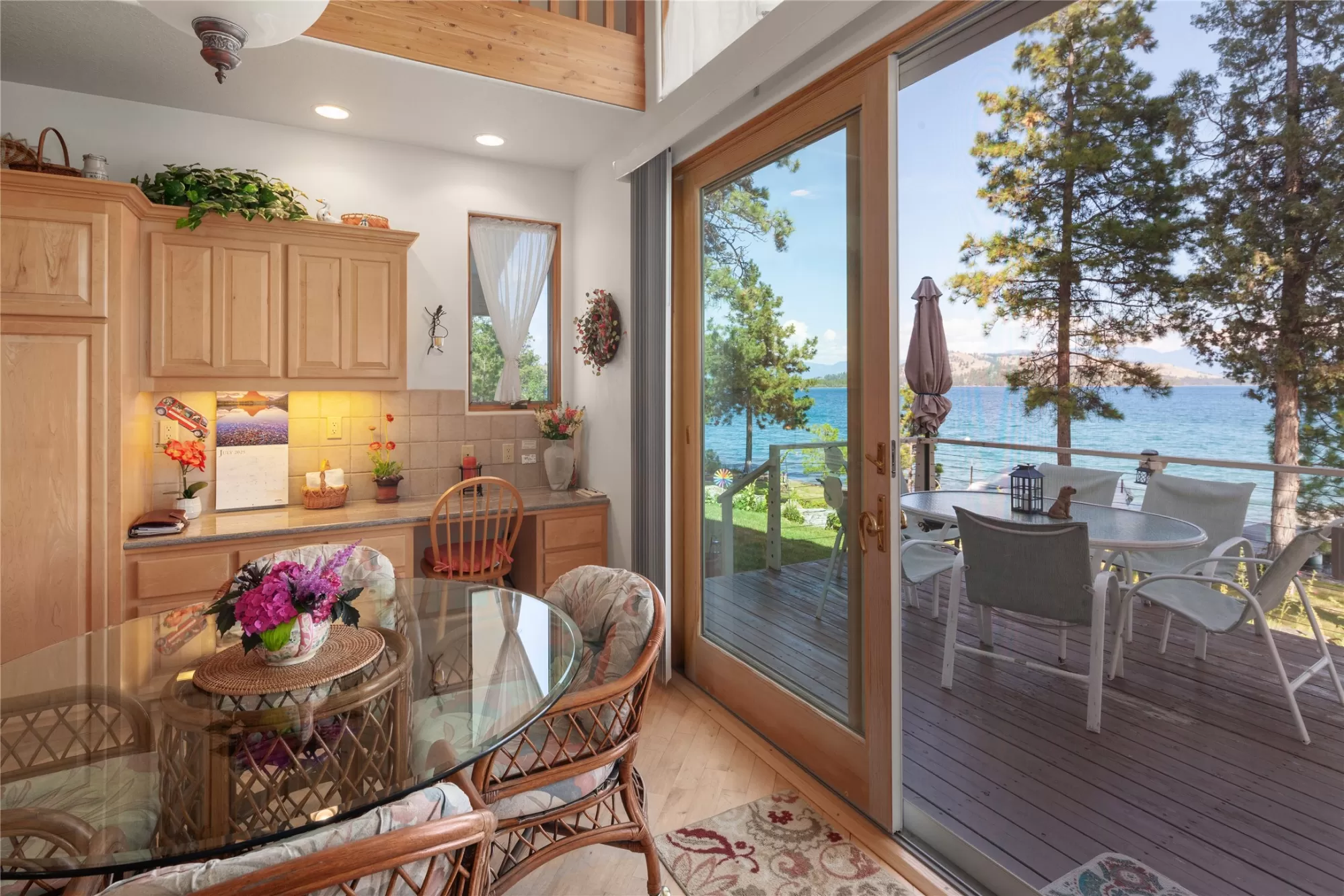 Welcome to your dream waterfront retreat! This immaculate 4,678 sq. ft. custom home is perfectly positioned on 2.2 gently sloped acres with 876’ of private Flathead Lake frontage—offering unparalleled views of Wildhorse, Cromwell, and Melita Islands, as well as the majestic Mission Mountains. Step inside to discover 4 spacious bedrooms and 3.5 bathrooms, with ensuite baths in every bedroom, vaulted ceilings, radiant in-floor heating, and a wall of windows that flood the open-concept living spaces with natural light. The chef's kitchen is appointed w/ custom maple cabinetry, granite countertops, and flows effortlessly into both the formal living and family rooms - complete with a cozy wood and gas fireplace, wet bar, and multiple entertaining areas. The elegant master suite features a jacuzzi tub, bidet, and private deck access. A custom spiral staircase leads to a second-story room currently used as a game and entertainment area, and is plumbed for an additional bath. The home also features an office area, circulating hot water, and an oversized 3-car attached garage. Enjoy lakeside living at its best from the expansive deck or the L-shaped dock with electric boat rail system—ideal for summer adventures and gatherings. The grounds are beautifully landscaped with mature trees, underground sprinklers, and a portion of the property remains undeveloped, offering potential for future expansion or privacy. This home is accessible year-round, making it the perfect legacy property for family getaways, entertaining, or peaceful full-time living.