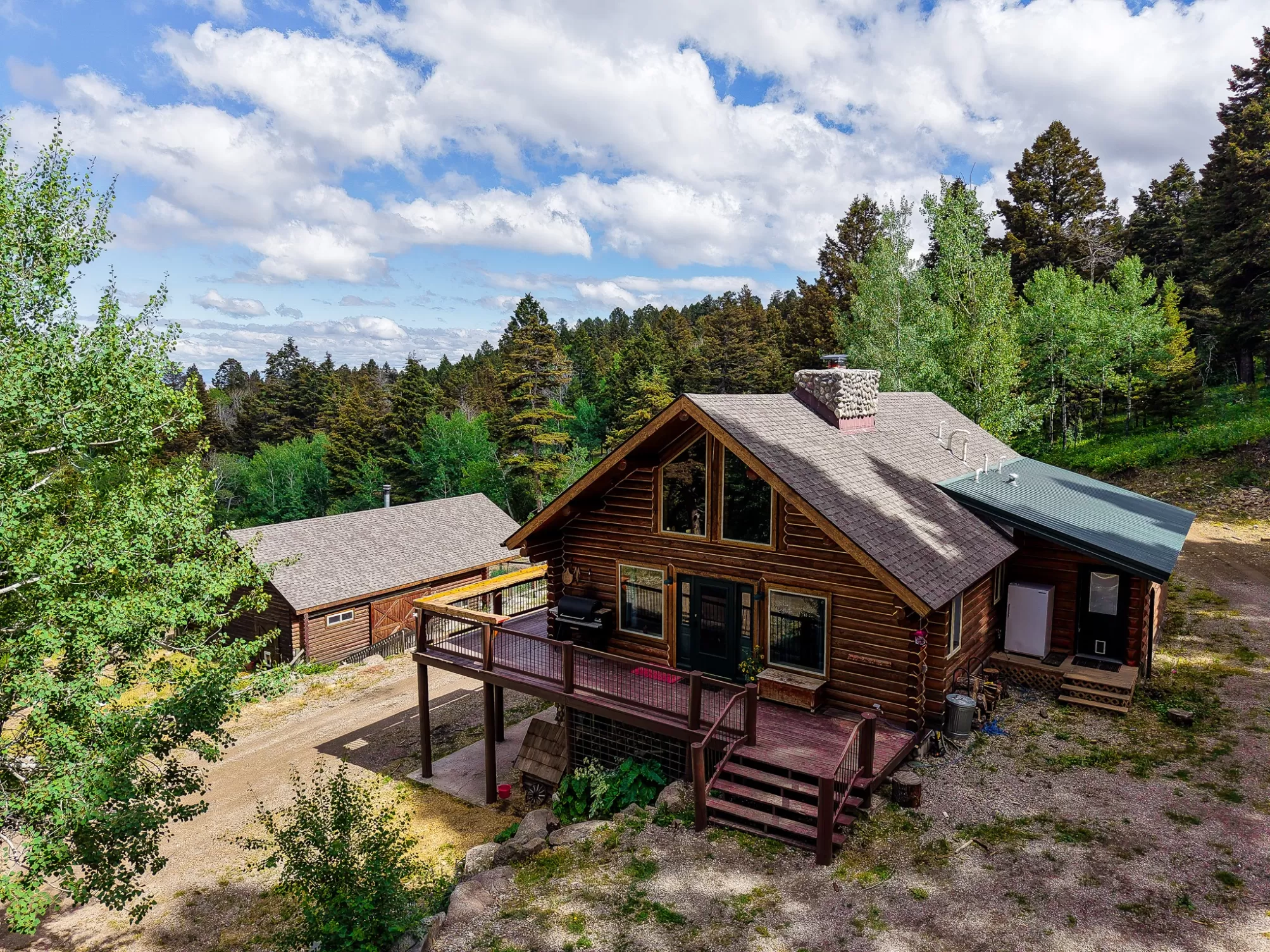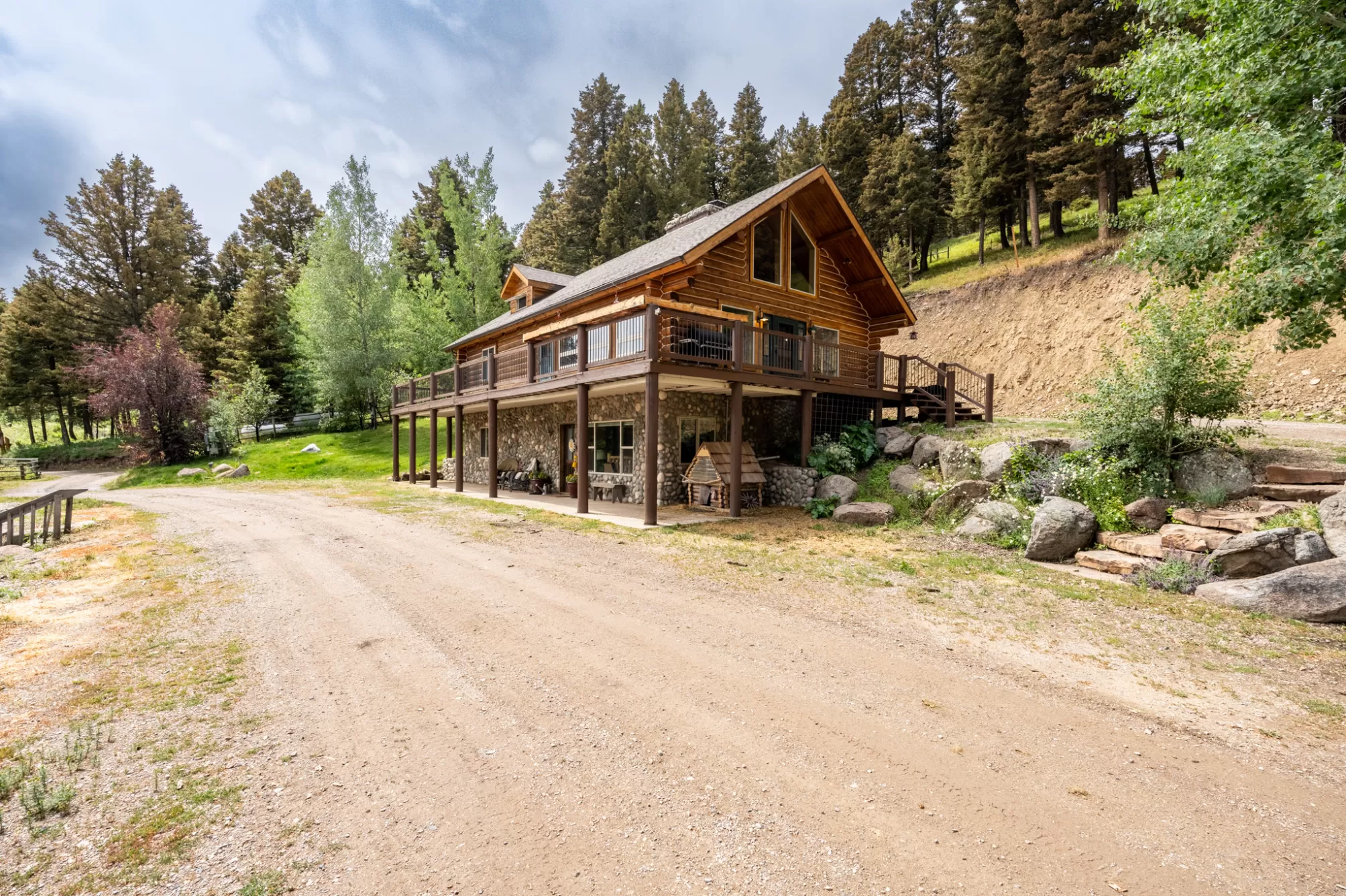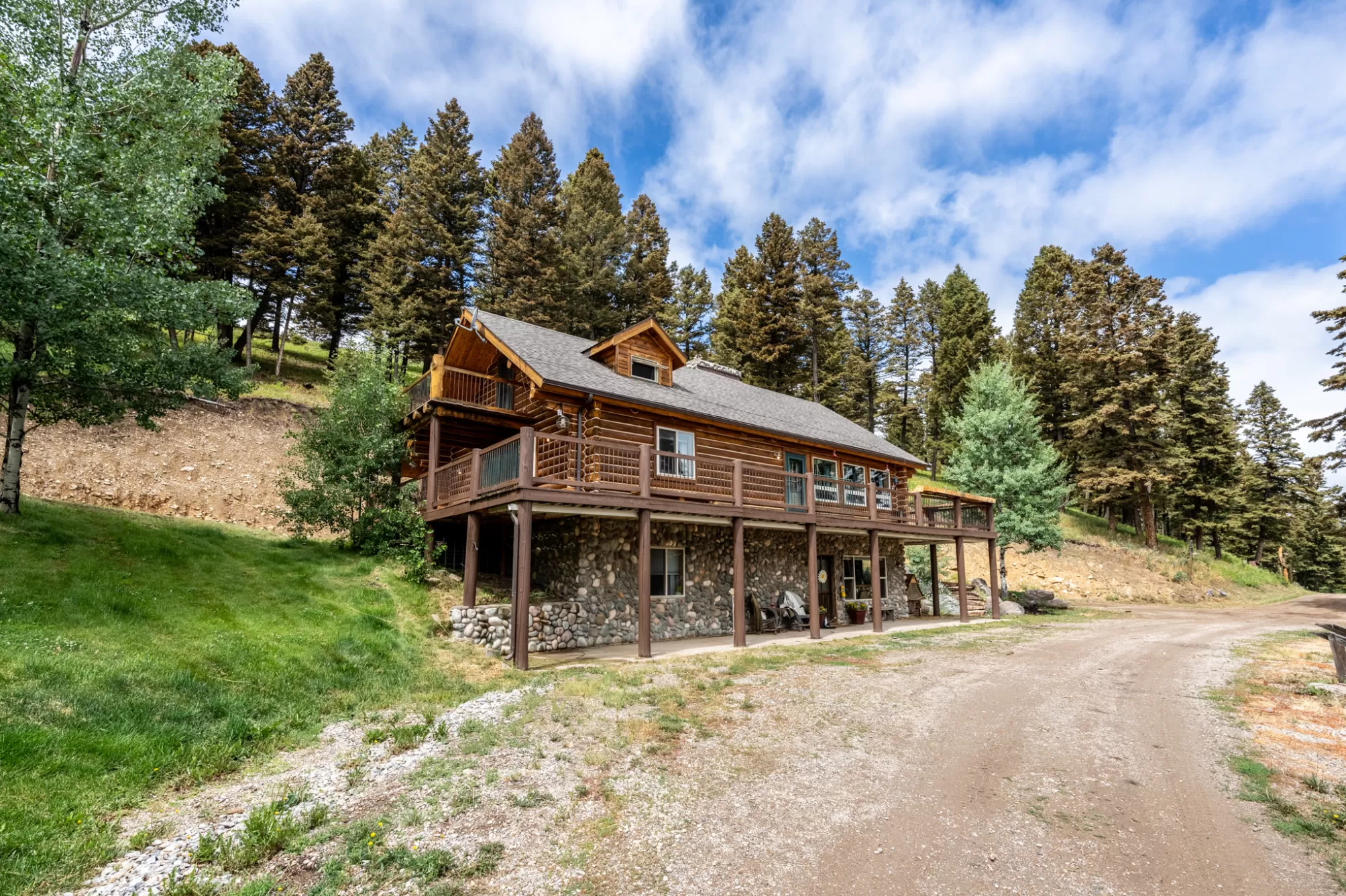Discover a rare and exceptional opportunity with this one-of-a-kind 40+ acre horse property (divided into two lots), perfectly equipped for both serious equestrian use and year-round living and recreation. Featuring a charming 4-bedroom, 4-bath (one full, two 3/4, & one 1/2) 3 level log cabin. The cabin has a lower level entrance that could be used as a mother-in-law suite and approximately 2464 sq/feet of living space with a prominent wood fireplace as the centerpiece of the living/kitchen area. The property features 4 outbuilding for various uses including horse/livestock stalls, shop, greenhouse, chicken coop, and amazing storage for your toys. The property is designed for functionality and comfort. Irrigated landscaping (including 27 sprinkler zones which shows just how much water this property can utilize), water rights, and several scenic ponds add beauty and value—water is one of the West’s most precious resources and this property has it in spades. Conveniently located just over an hour from both Helena and Bozeman, and under 30 minutes to White Sulphur Springs and Townsend, you're never far from modern amenities while enjoying the peace and privacy of rural Montana living. Common sense covenants help preserve the character and value of the area, which is well-known and sought after. This is a true four-season recreational haven. Ride or hike in the area's vast public lands, explore extensive snowmobile and ATV trails, fish nearby rivers and lakes, or ski at Showdown Ski Area—less than an hour away. After a day outdoors, unwind at the historic hot springs and enjoy a local brew in the lively town of White Sulphur Springs. With breathtaking views, incredible water sources, and an unbeatable location, this property offers everything you need for a fulfilling Montana lifestyle. Don’t miss this one-of-a-kind offering! The Details Include: Appx 2464 Sq/Foot Home on two lots that each are just over 20 acres (40.2 +/- total); Outbuildings include (starting closest to home and working further away) (1) 31x25 ft enclosed with stalls, alleyway, and two rooms, and upstairs storage & 25x13 ft overhang; (2) 54x42 ft with 3 stalls, alleyway and storage room with attached 36x15 ft workshop and 24x15 ft and 54x15 overhangs (covered storage); (3) 96x30 ft equipment barn with 30x16 ft overhang (covered storage); and a (4) 36x36 ft commodities barn with 28x15 ft overhang (covered storage). There are also two wells, 6 water rights, 5 ponds (two with fish permits), 5 owned propane tanks, a backup generator, and a small greenhouse for those gardeners out there.