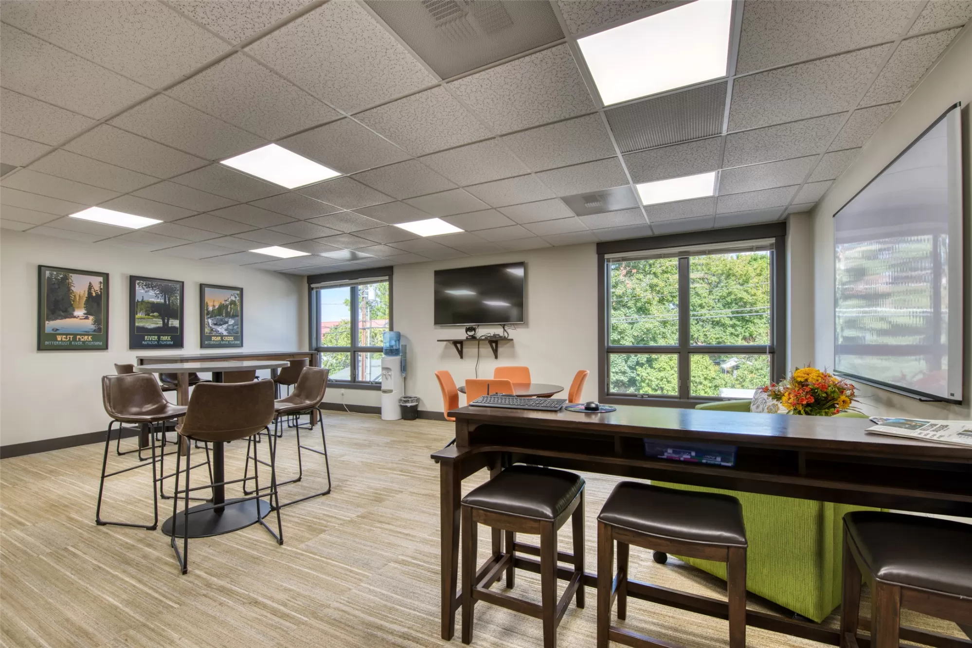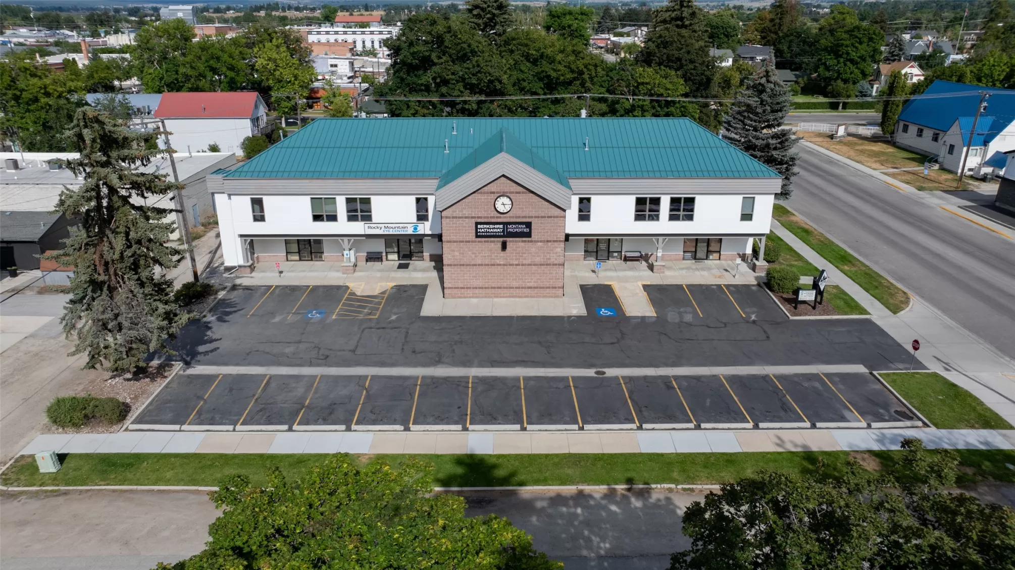 The Westside Commons Professional Plaza totals 11,236 square feet on five city lots with prime frontage and visibility on South Fifth and State Streets in the heart of Hamilton. Near hospital, courthouse, school, and downtown services, this high-quality commercial property is 100% occupied by 5 professional tenants and reflects exceptional care and pride of ownership. Built with premium Andersen windows, standing rib metal roof, and freshly painted Stuc-o-Flex siding, the building features 10 individual office suites which can easily by combined for expansion as needed. Separate utility meters and interior design adds value. The building could be condominiumized into custom spaces for separate ownerships and sale. Zoning in the Central Business District allows for multiple uses. The property features 36 paved parking spaces plus on-street parking, sidewalks. This is a premier Hamilton business address with long-term functionality and enduring appeal. Amenity List available. The Westside Commons Professional Plaza building features two levels with 6,141 SF on the upper level and 5,095 SF on the main level. There are two handicap ramps, updated sidewalks on two sides, and alley access on the east and north sides which ensures excellent accessibility for both tenants and patrons. The landscaped grounds feature underground sprinklers, drip irrigation, mature trees, and shrubs. Signage includes both on-building signs and a marquee at the corner of South 5th Street. Tenants enjoy covered and well-lit entries, and amenities such as private restrooms in lower suites and ADA restrooms on the upper level. Most of the offices have small kitchens. The central stairway and passenger elevator are inviting to visitors as well as the large tiled foyer. Interior suites have been updated with paint, flooring, lighting, and window blinds over time. High-speed internet and natural gas service at the building. This is a prime location and a well designed investment, priced well below replacement cost.