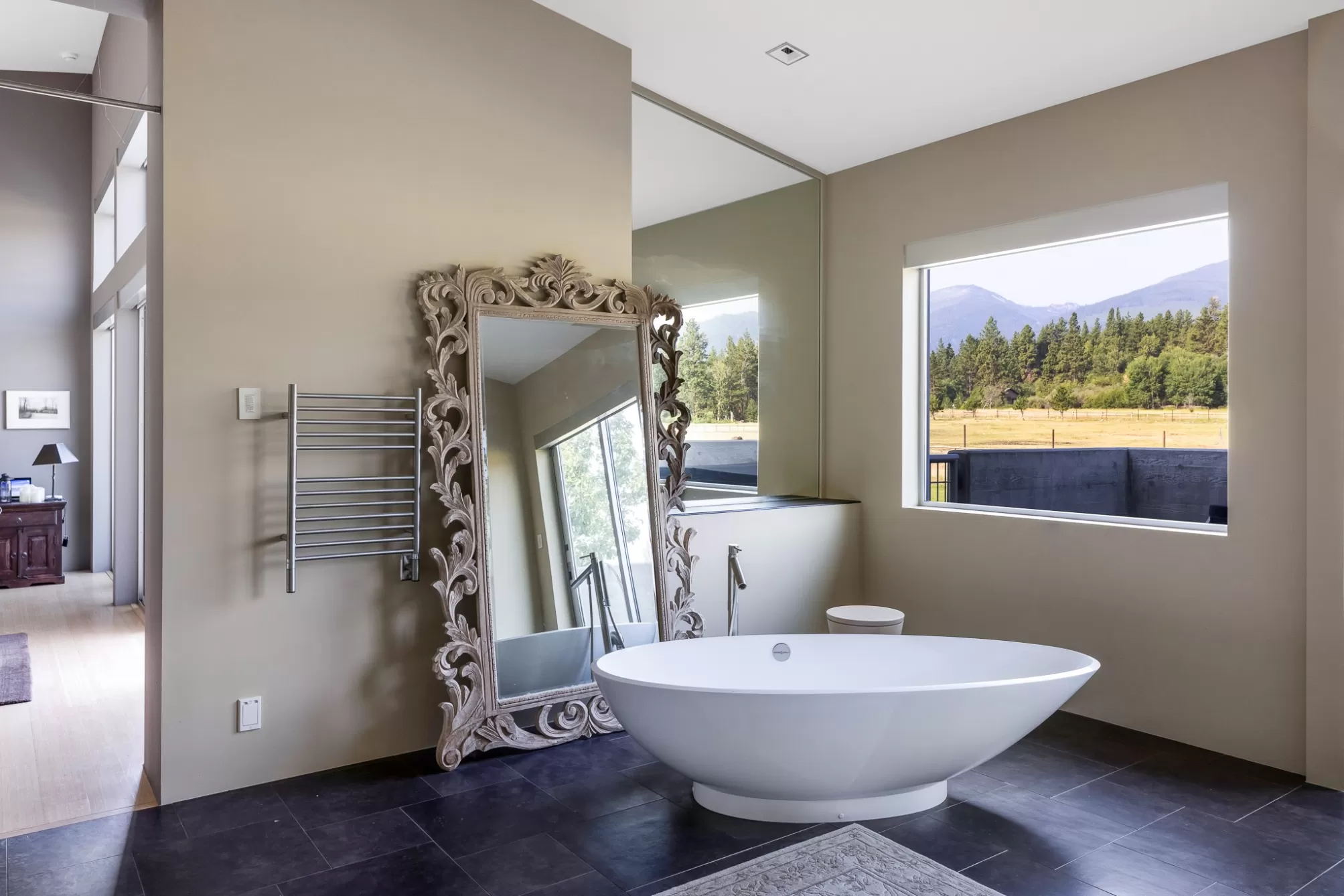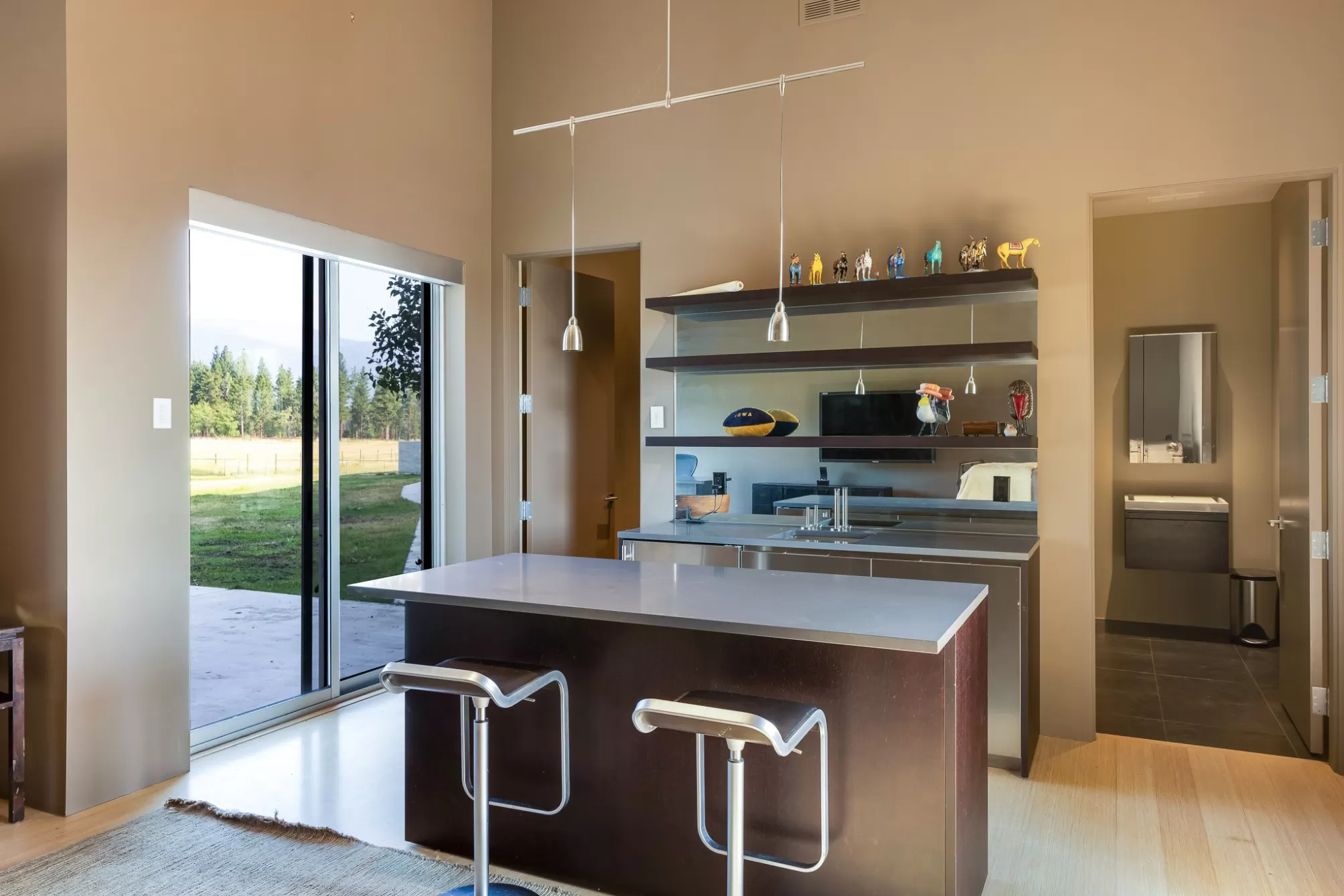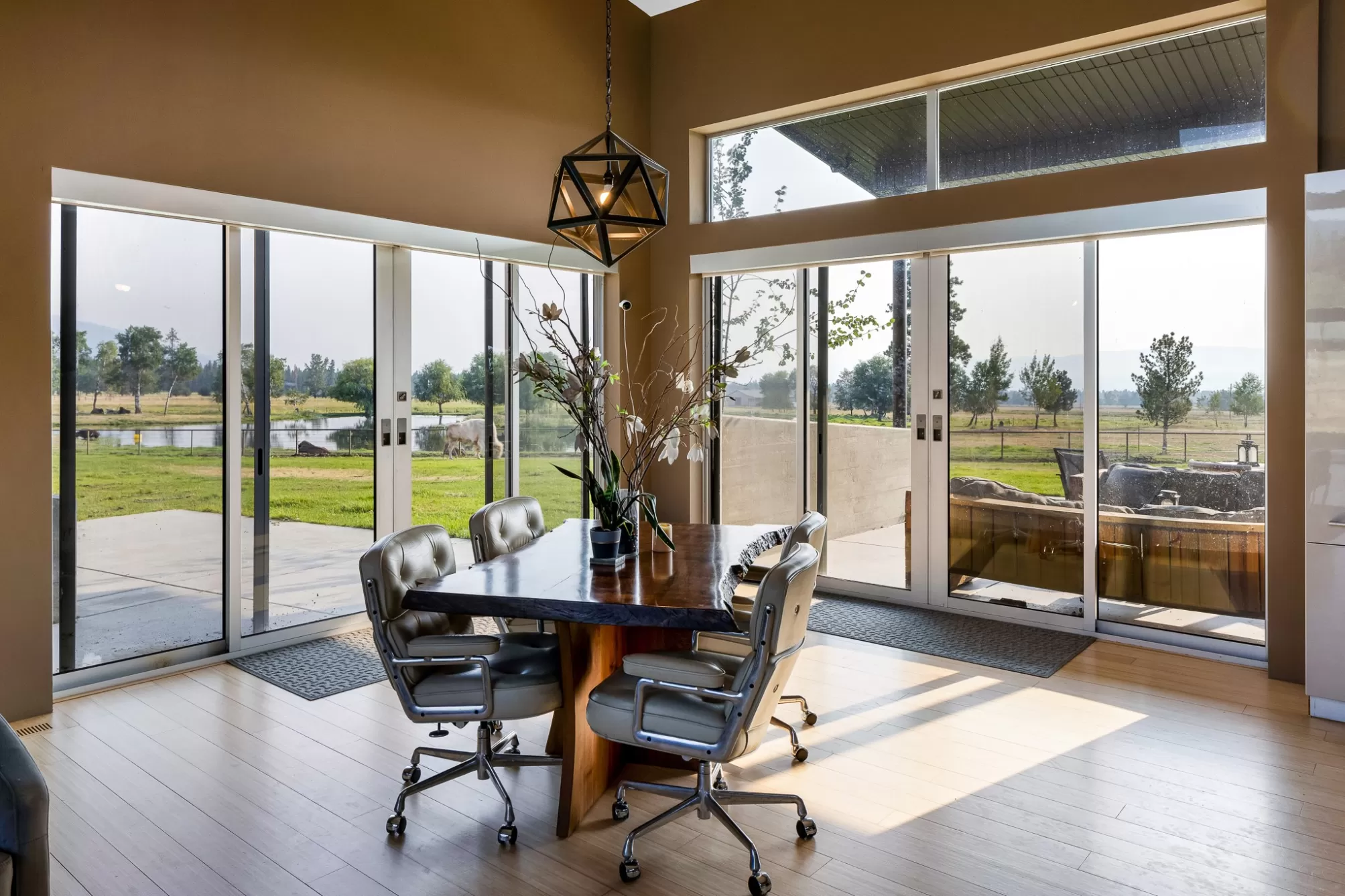 Welcome to Bela Sanctuary An extraordinary convergence of design, privacy, and landscape, Bela Sanctuary redefines luxury living in the heart of Montana’s Bitterroot Valley. Nestled on 50 pristine acres between the Bitterroot and Sapphire Mountains, this singular mountain modern estate offers a fully immersive natural experience—every sunrise, sunset, and panoramic view part of your daily rhythm. Here, nature is not a backdrop, but a living, breathing part of the home. Every inch of the residence has been meticulously designed—from the 25-foot ceilings and walls of glass to the acoustically engineered theatre and Meile kitchen. The property itself is equally remarkable, with spring-fed ponds, a 900-foot gated drive, over 40 irrigation zones, and room for future additions. Located minutes from Hamilton and under an hour to Missoula, Bela Sanctuary is your gateway to refined solitude with effortless access to culture and adventure.