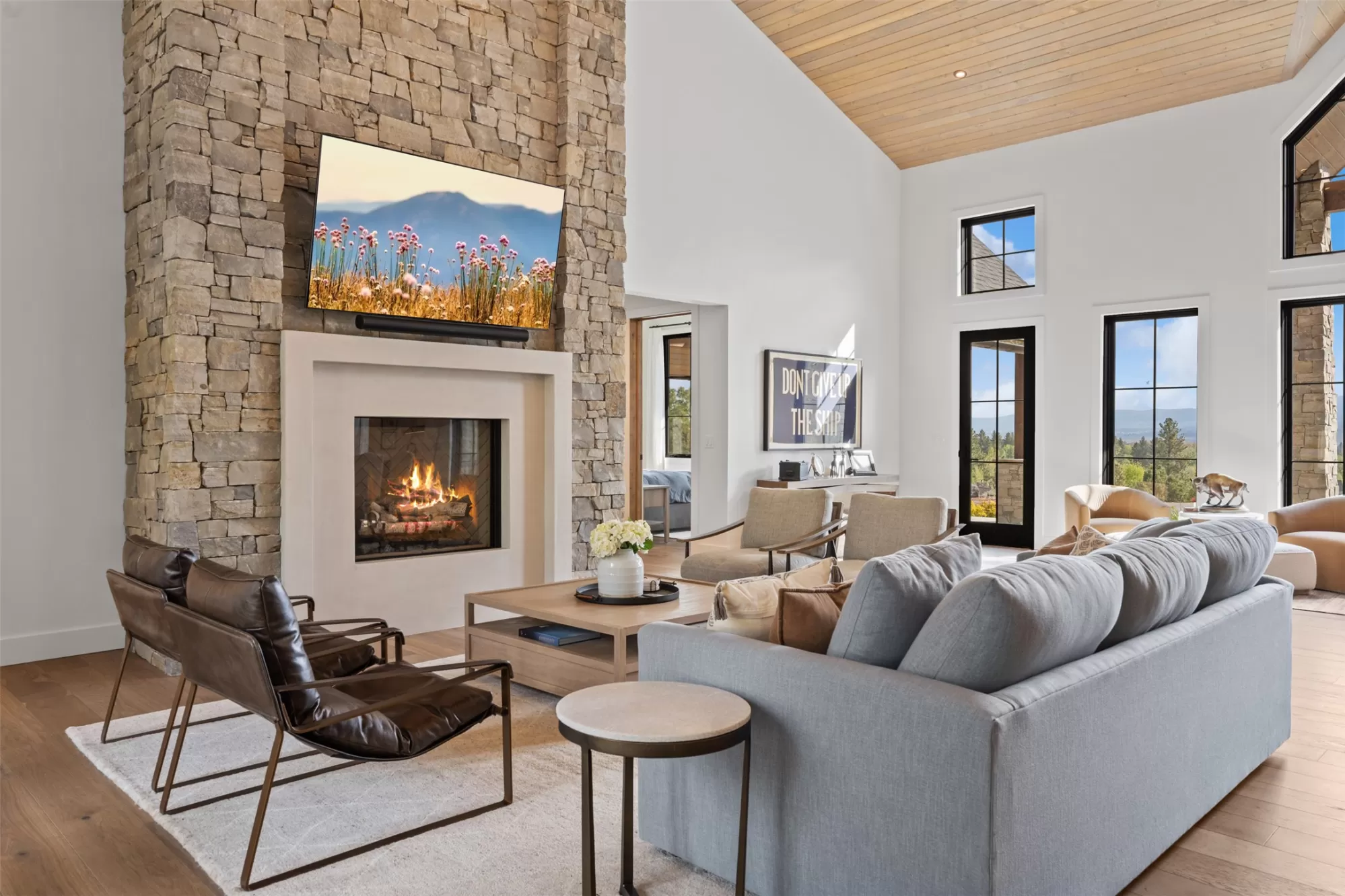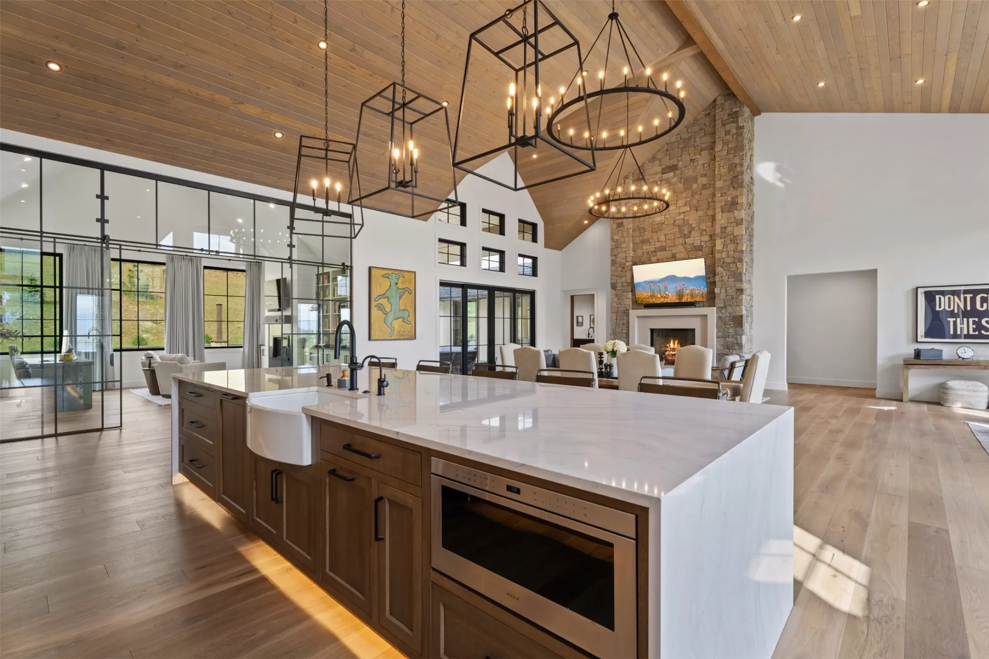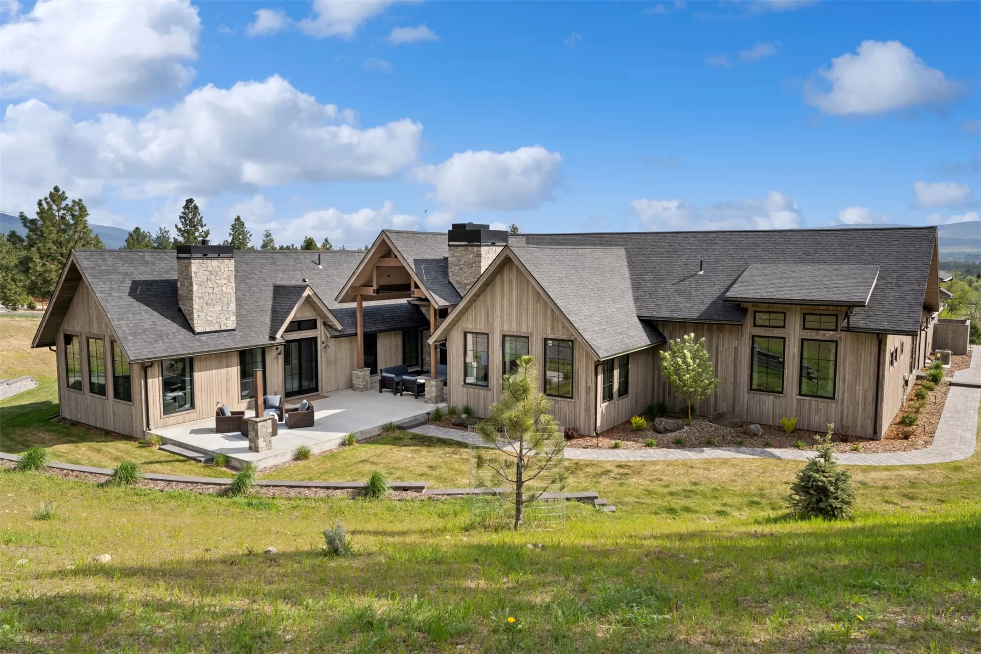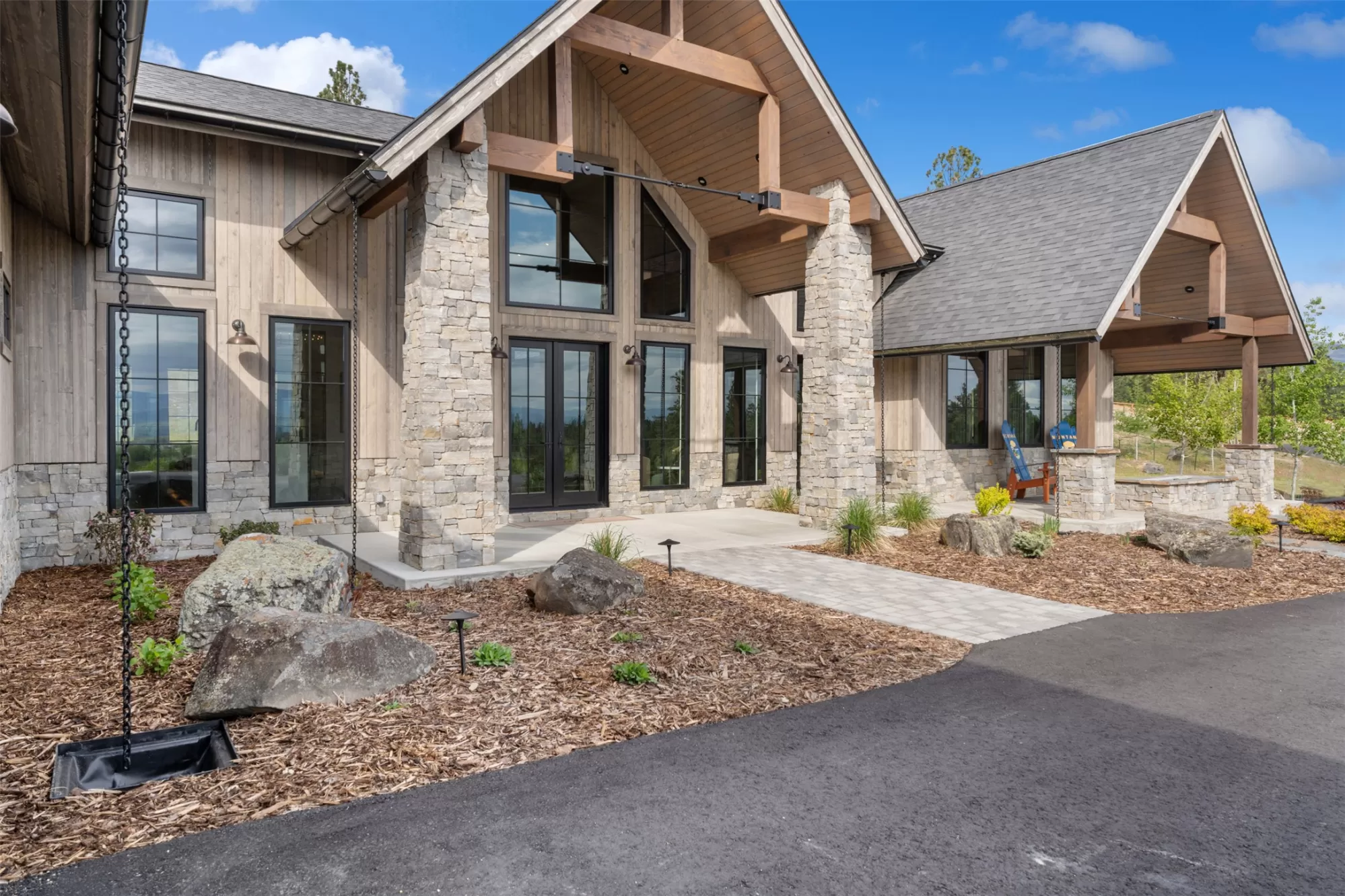 Experience refined mountain living in this stunning 4,980 sq ft home, tucked beneath the Bitterroot Mountains on 6 acres within the exclusive Hillside Ranch. This beautifully appointed 4-bedroom, 5-bathroom residence blends high-end finishes with authentic Montana charm. The chef’s kitchen features elegant oak cabinetry, dramatic waterfall granite countertops, premium appliances, and under-cabinet lighting—perfect for everyday living and entertaining. The open-concept layout is enhanced by 10-foot ceilings, a vaulted tongue-and-groove ceiling in the living room, and a glass-enclosed office for added style and functionality. Zero-entry access & 5-ft wide hallways Butler’s pantry, coffee bar, and wine storage Covered patio with wood-burning fireplace 3-car garage with ample storage Private, gated community with breathtaking views Modern sophistication meets Western elegance in this one-of-a-kind Montana retreat—luxury, comfort, and privacy all in one.