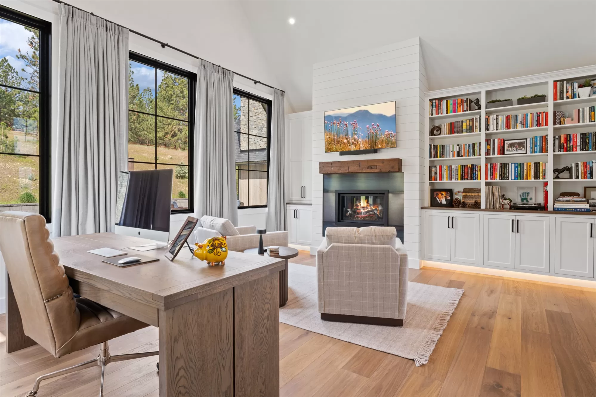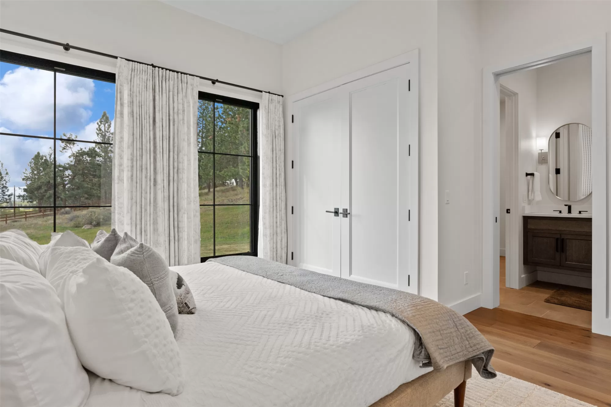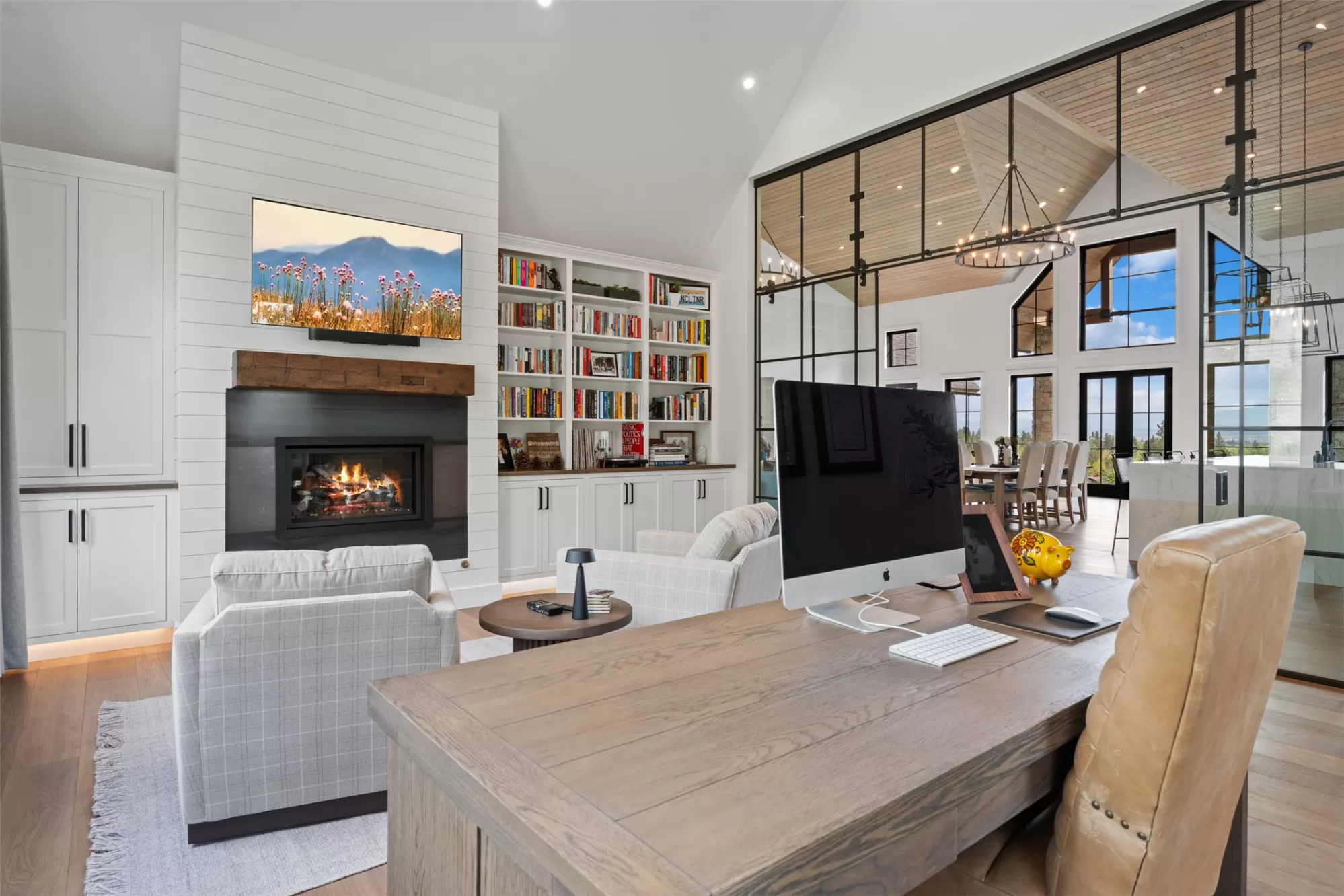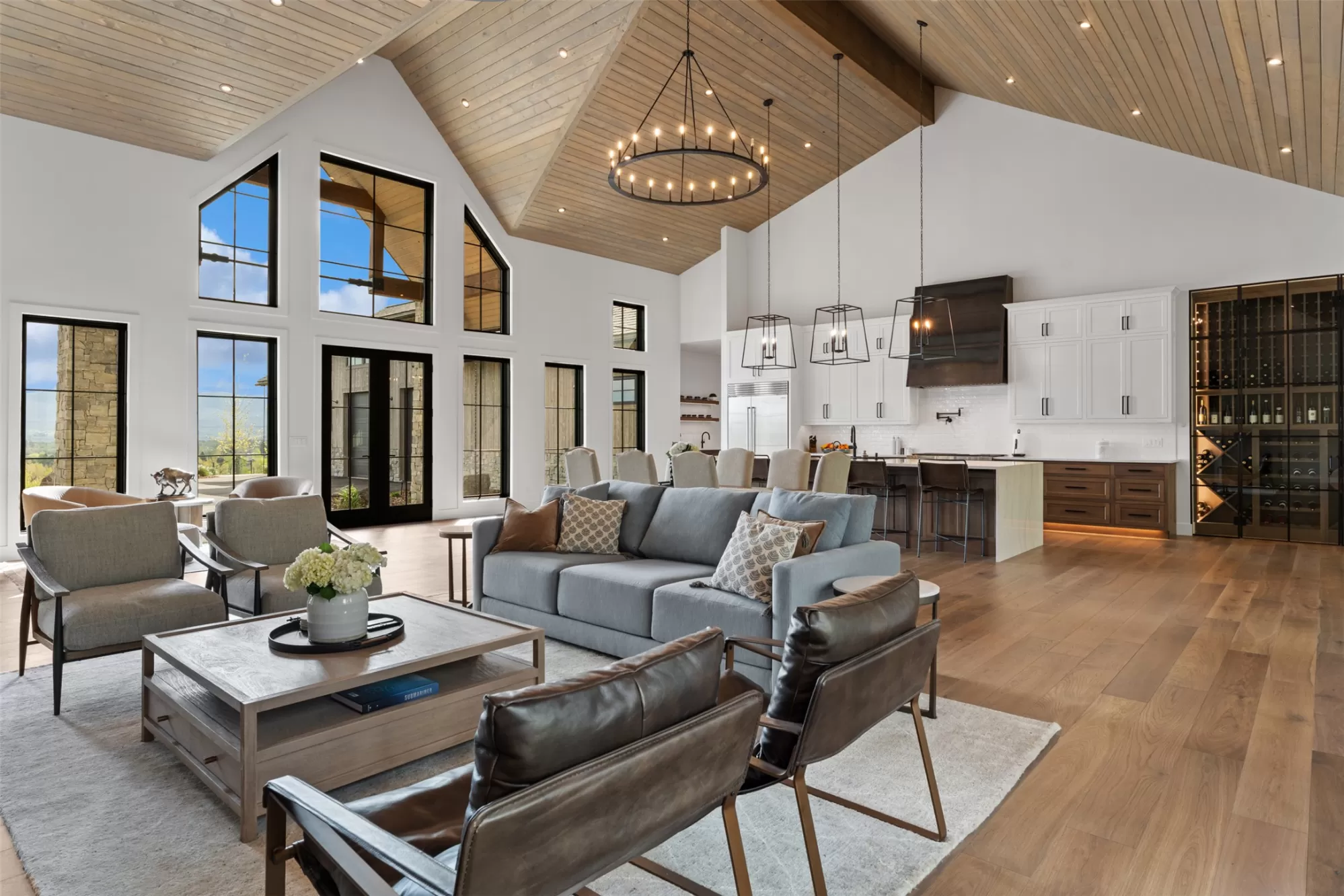 Experience refined mountain living in this stunning 4,980 sq ft home, tucked beneath the Bitterroot Mountains on 6 acres within the exclusive Hillside Ranch. This beautifully appointed 4-bedroom, 5-bathroom residence blends high-end finishes with authentic Montana charm. The chef’s kitchen features elegant oak cabinetry, dramatic waterfall granite countertops, premium appliances, and under-cabinet lighting—perfect for everyday living and entertaining. The open-concept layout is enhanced by 10-foot ceilings, a vaulted tongue-and-groove ceiling in the living room, and a glass-enclosed office for added style and functionality. Zero-entry access & 5-ft wide hallways Butler’s pantry, coffee bar, and wine storage Covered patio with wood-burning fireplace 3-car garage with ample storage Private, gated community with breathtaking views Modern sophistication meets Western elegance in this one-of-a-kind Montana retreat—luxury, comfort, and privacy all in one.