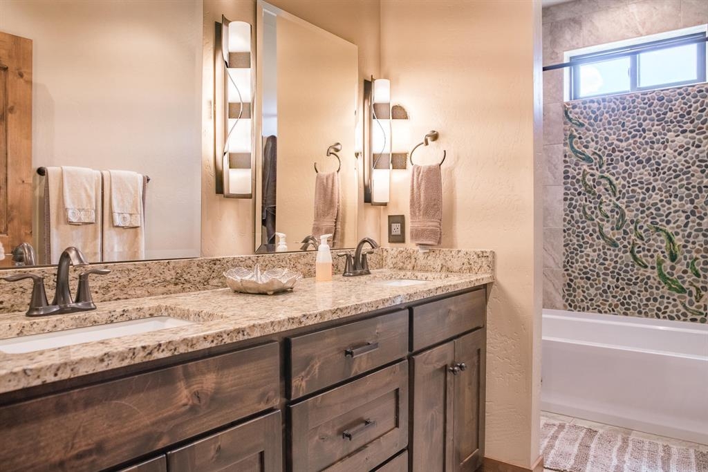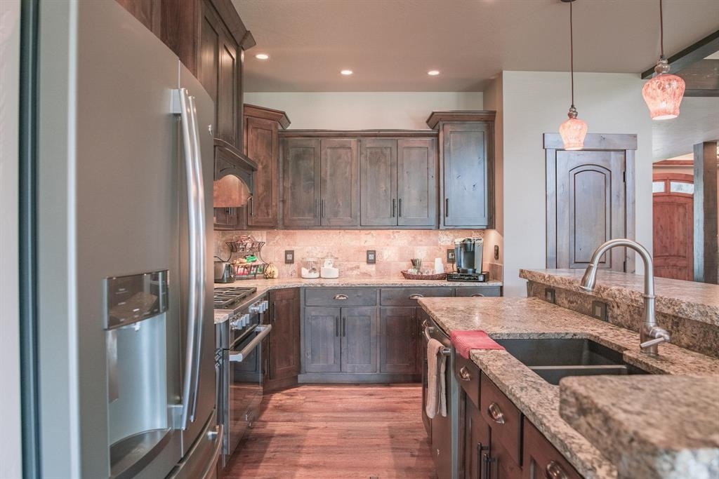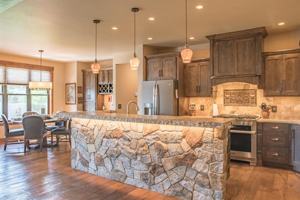 Excellence radiates throughout this extraordinary custom home, designed to impress at every turn. The open floor-plan encompasses a spacious great room with vaulted ceilings and a striking rock fireplace—ideal for both relaxing and entertaining. The chef-inspired kitchen is a standout, featuring honed granite countertops, a marble backsplash, and a premium Miele six-burner gas range. This home's two private suites offer a serene retreat. From the grand front entry to the heated, stamped concrete back patio, no detail has been overlooked. Find a list of additional features in the attached documents.