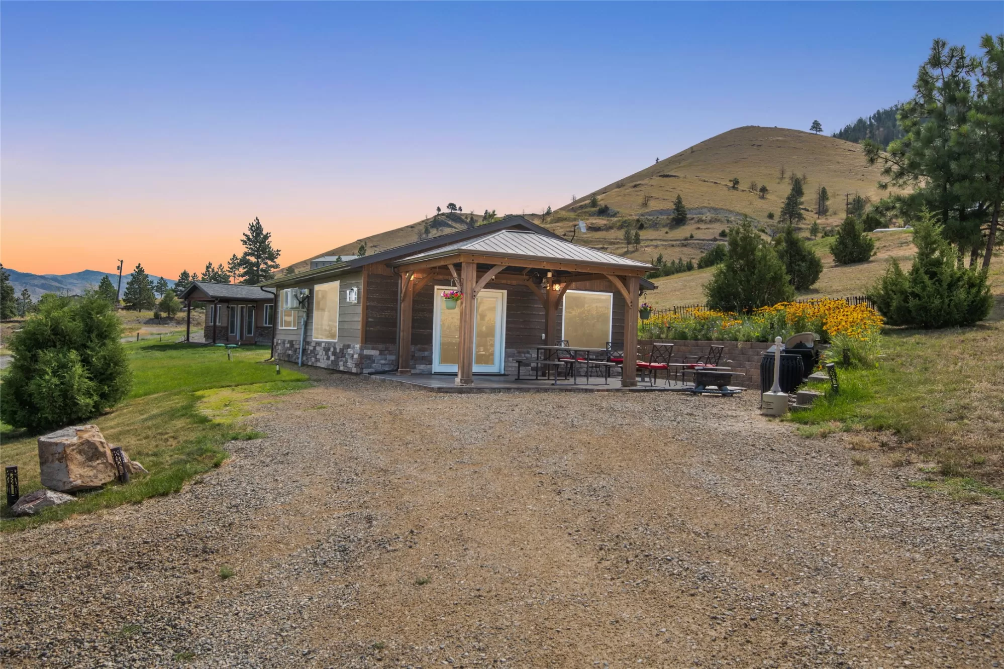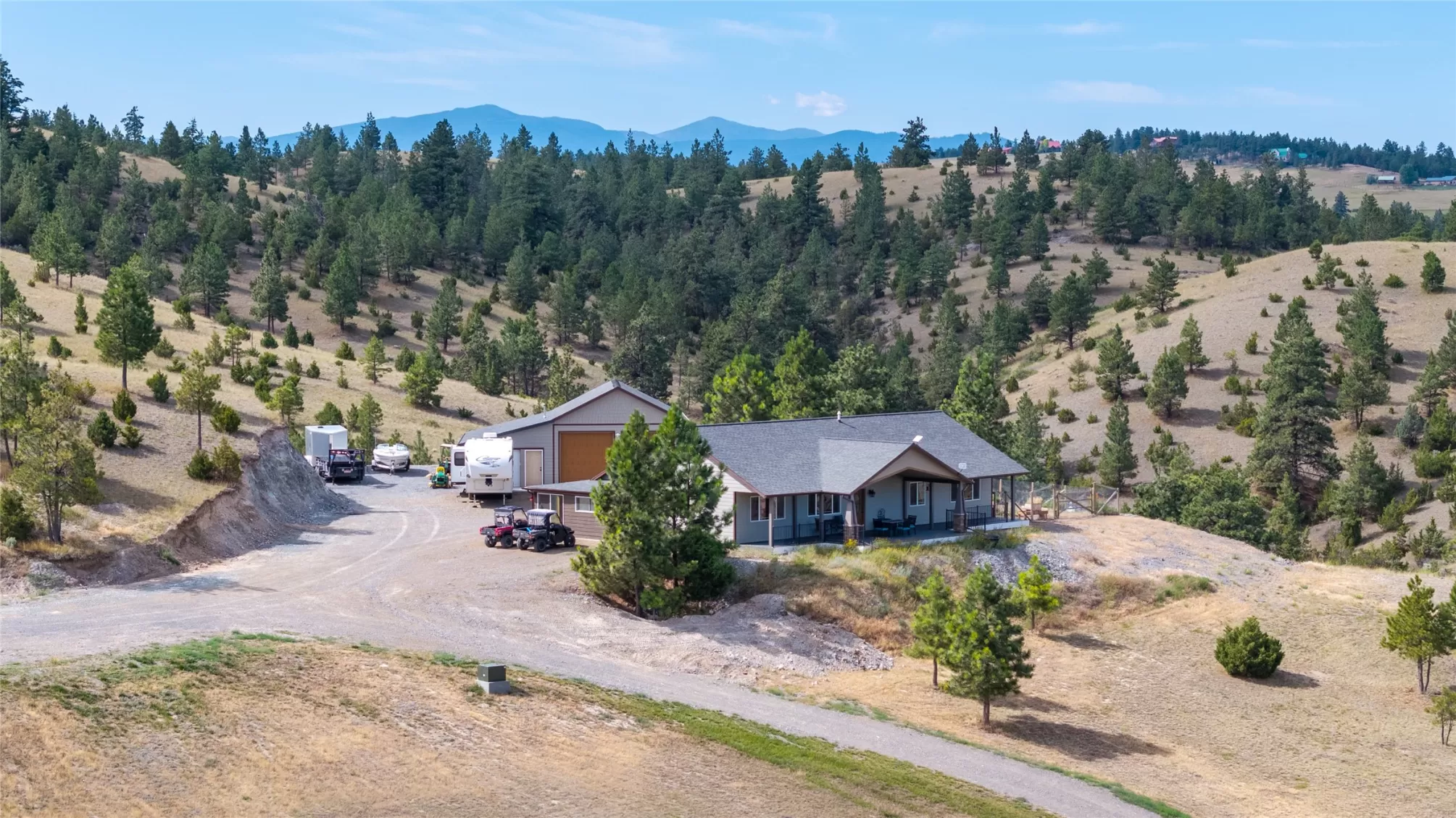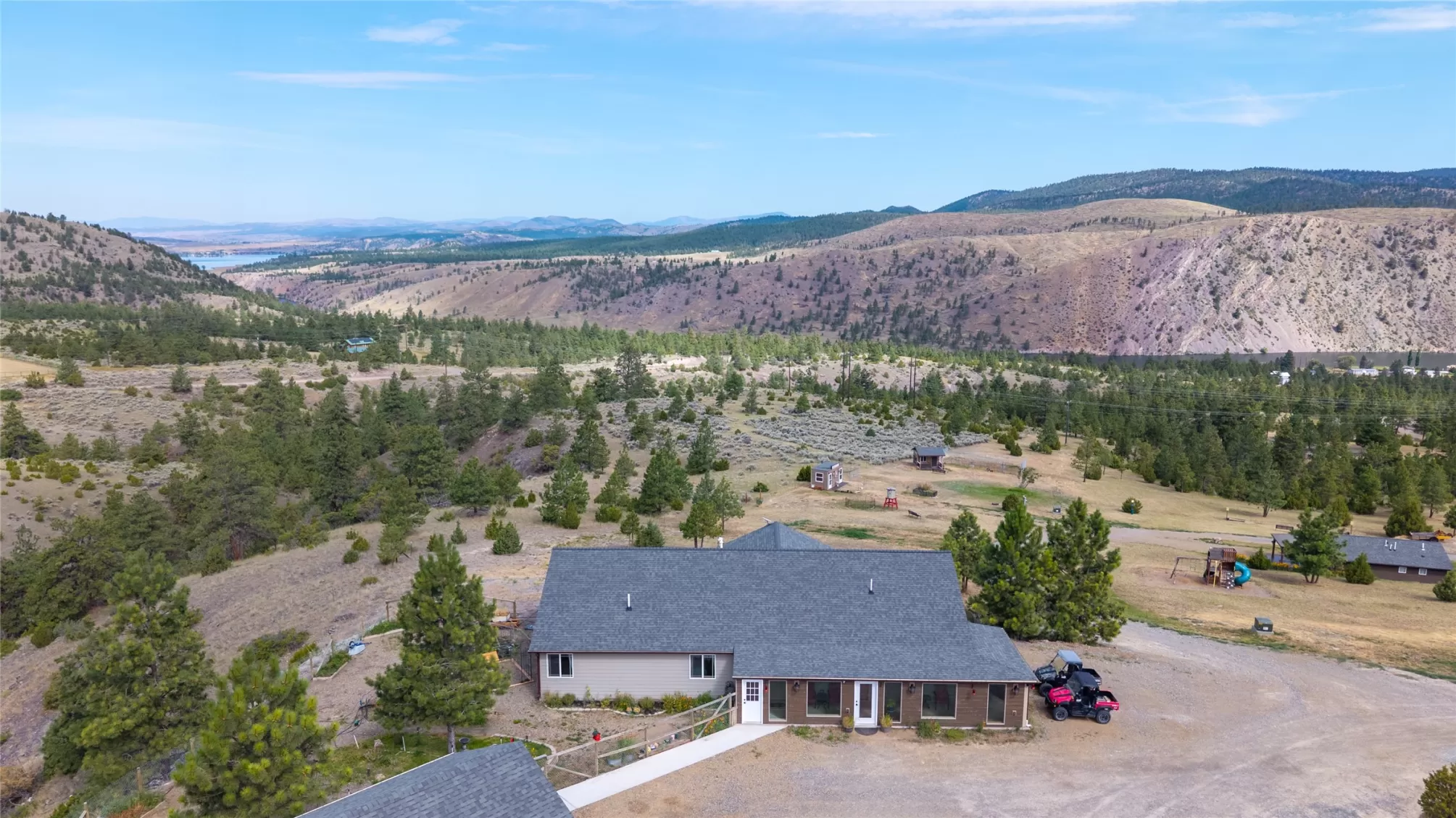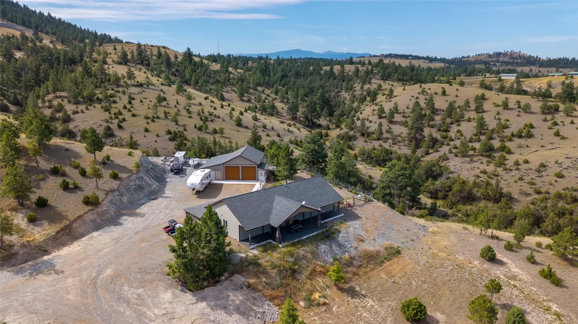 Welcome to unlimited potential with over 11 acres and a total of 3 Homes and room to expand! Each dwelling has a separate address and the property is PRICED $250,000 UNDER APPRAISED VALUE! MAIN HOUSE: The main home offers 1,920 sq. ft. of open-concept living, featuring a spacious kitchen with a 10-foot island and ample counter space. Enjoy 3 generously sized bedrooms and 3 full bathrooms, along with large windows that fill the home with natural light. Additional highlights include central air, an expansive covered deck, a heated 40x36 garage with workspace or office space, RV and boat parking, and a full circular driveway for easy access. Enjoy Breathtaking Mountain views from your expansive covered porch, with peek-a-boo views of the lake and river. The property features a play set, horse shoes, Chicken Coop, fenced garden area, dog run, and plenty of privacy. Downtown Helena is less than 15 minutes away, shopping, healthcare, parks, rodeos, fair, music festivals, and dining. GUEST HOUSE: This 988 sq ft guest home offers a rare double master suite layout, with 2 spacious bedrooms, each featuring a walk-in closet and private full bath. Enjoy stained concrete floors, a bright and open living space, a well-appointed kitchen with peninsula seating, and a dedicated laundry area. Plenty of windows bring in natural light, and ample parking adds convenience. AIRBNB/STUDIO: Stylish 720 Sq. Ft. Studio Home – Fully Furnished & Move-In Ready! This well-designed studio offers a spacious kitchen and living area, one full bathroom, and acid-stained concrete floors throughout. Tasteful furnishings add comfort and style. Step outside to enjoy the covered patio complete with a built-in propane BBQ—perfect for outdoor cooking and relaxation. Proven Airbnb rental history. Airbnb gross earnings for just the Studio Retreat from July 1, 2023 to Oct. 11, 2024 were $32,761.31. Seller has currently stalled on bookings to facilitate sale.