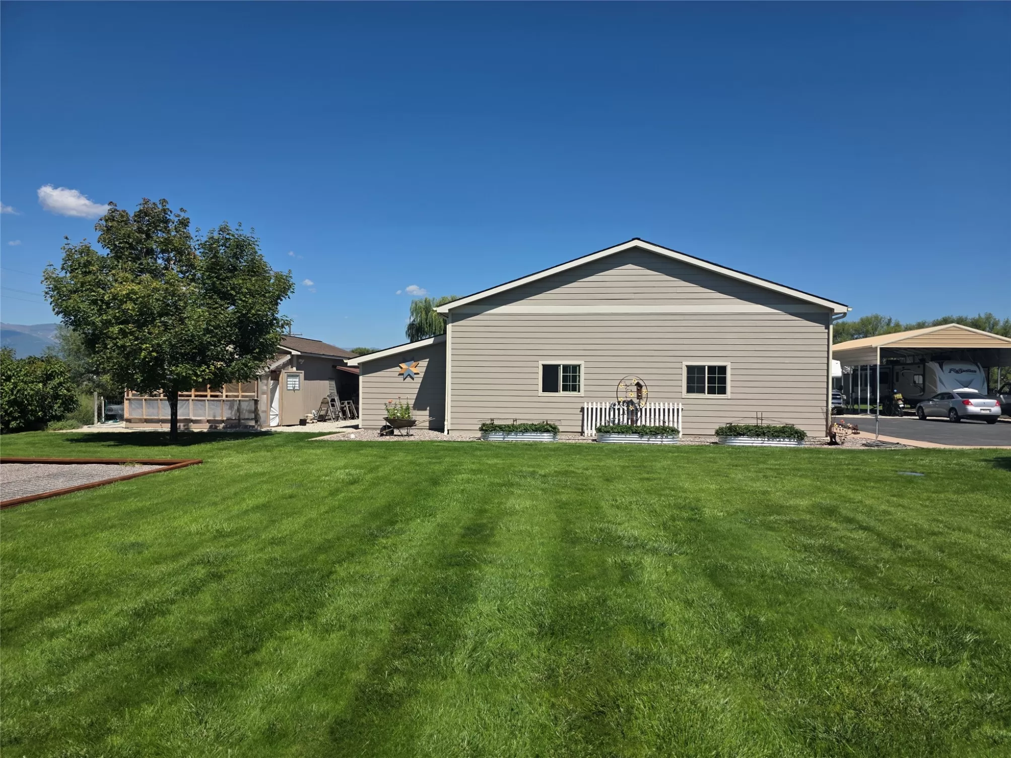 Modern comfort with dream workshop! Stunning 3 bedroom, 2 bath home on 2.05 acres. Open living plan features abundant natural light and spacious kitchen. Natural gas fireplace in living room. Upstairs bonus room for entertaining. The back covered patio is the perfect place to relax. Outside, the beautifully landscaped yard is a true showpiece. Large (28' x 45') RV building, plus a large heated shop with storage rooms of approximately 3600 sf AND a heated workout room with 3/4 bath. Three overhead garage doors. Also, a south-facing greenhouse and another 16' x 28' building. The HOA fee includes water delivery from the Republican Ditch through a 4" buried mainline and connects to a 2" hookup on the lot. Also, presently includes snow removal. Fees subject change. - This is a must-see property!