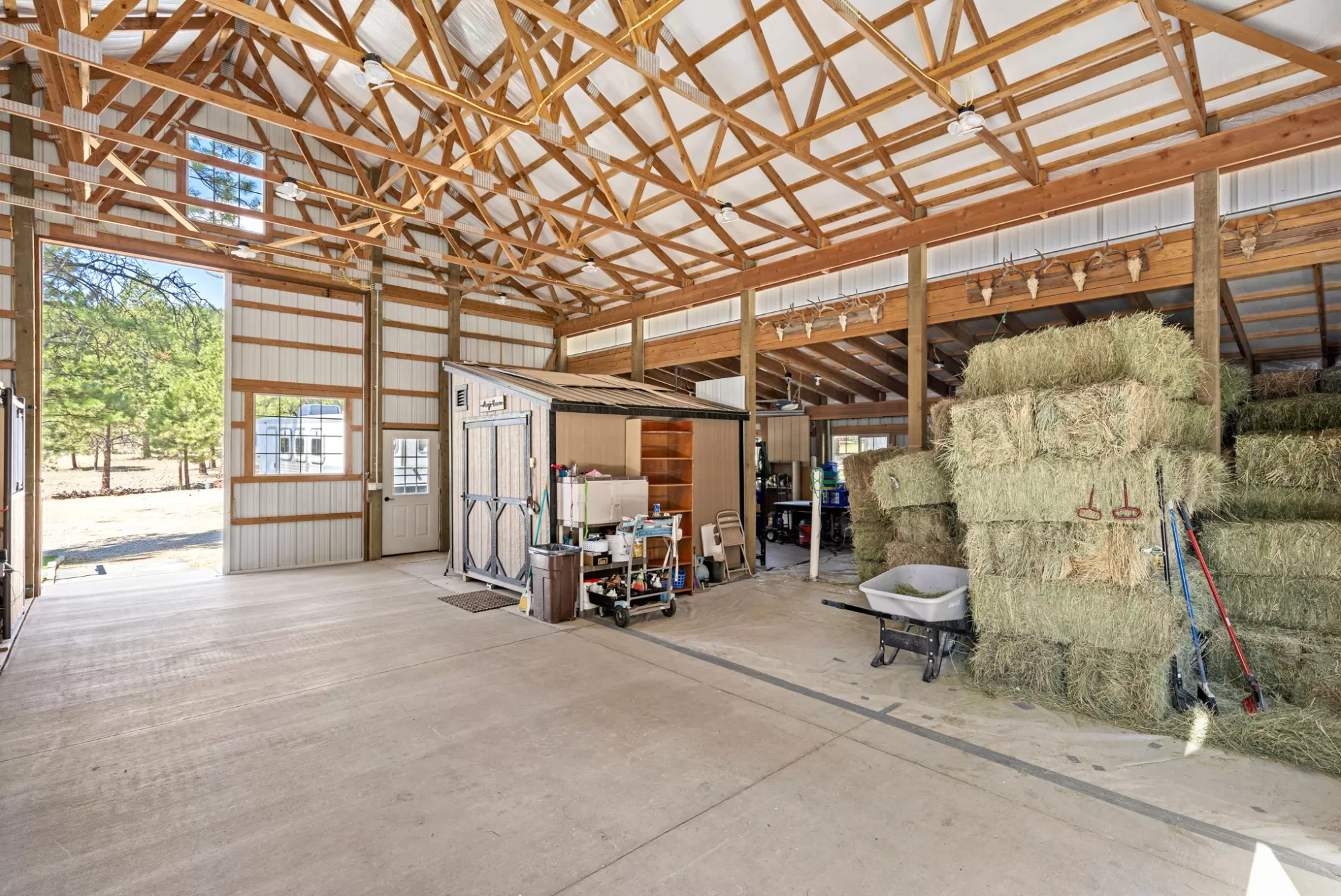 Exquisite executive level home on 10+acres offering a seamless blend of natural tranquility and convenient living, 10 min from downtown! The expansive grounds provide an exceptional platform for outdoor pursuits, fully cross-fenced with a heated waterer and sand arena and access to 5000+ acres of public land. An impressive shop features 14’ sliding doors & garage door entry with ample room for equipment storage or a workshop. The home is surrounded by one of the most beautifully landscaped properties in the area, with multiple irrigated flower beds. Inside, the comfortable and functional design shines. A sunken living room provides abundant wall space for art and features a cozy wood-burning fireplace. French doors offer a private retreat to the primary suite with two large closets. An attached garage and a separate 2 car garage provides abundant room for vehicles/storage. This property truly offers the best of both worlds: a perfect country home with unparalleled outdoor amenities.