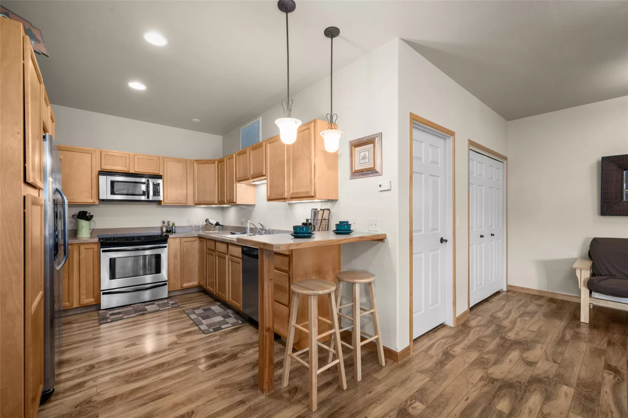 Well-maintained top-floor condominium, situated in a prime Whitefish location close to everything you need. This residence offers a bright and open living area with a thoughtfully designed kitchen and storage throughout. Featuring two bedrooms and two full bathrooms, the layout is ideal for comfortable living. The primary suite has its own private bath and walk-in closet. Additional conveniences include a carport with designated parking spaces.