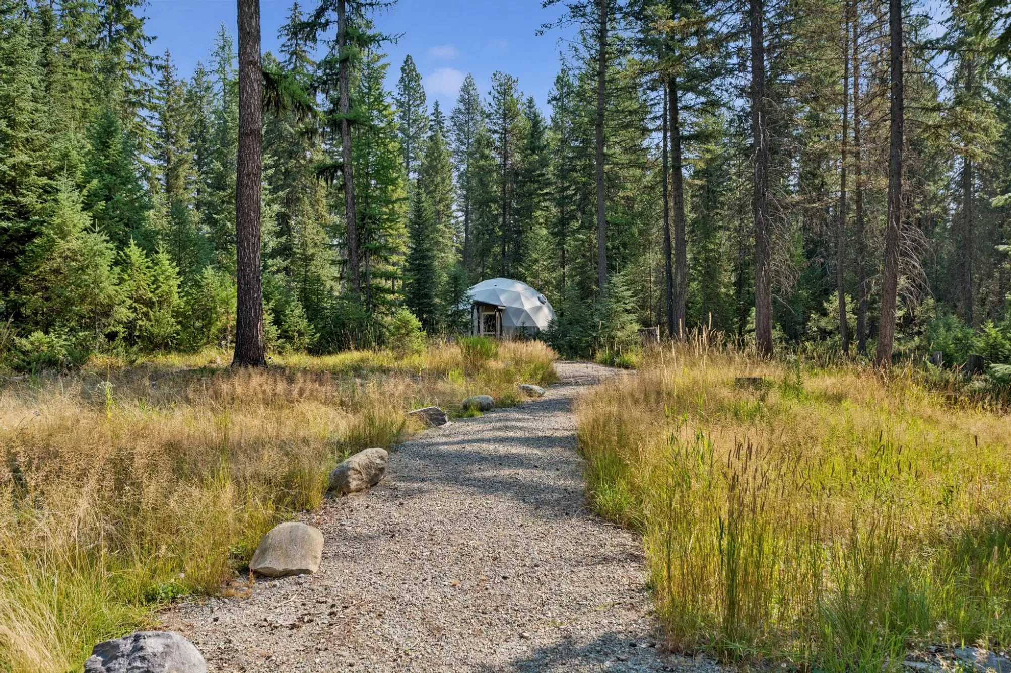 THE PERFECT RETREAT – No HOA, CCRS or ZONING. This remarkable 19.43-acre estate offers a rare opportunity to own a one-of-a-kind Montana property that blends privacy, comfort, and natural beauty—just minutes from Glacier National Park and Whitefish Mountain Resort. The 1,693 sq ft main residence features a loft bedroom, two additional rooms, a full kitchen with both commercial and standard refrigerators, a cozy wood stove, and energy-efficient foam insulation. Adding to its uniqueness, the estate includes 12 fully appointed geodesic domes (300-400sf), each with an ensuite bath, kitchenette, insulation, sky window, solar fan, and private patio or deck complete with seating and a Solo Stove firepit. A spacious 830 sq ft “party dome” serves as a central gathering space, enhanced with heated floors, a wood stove, w/ minisplit system for year-round comfort. Extensive infrastructure upgrades ensure long-term ease of use, including improved roads, gravel paths with string lighting, HUGE... septic system, well house, updated plumbing, electrical, carport, and storage. The outdoors are equally inviting, with a central lawn featuring a gazebo, grills, picnic tables, and lawn games—all set among mature trees, open meadows, and private walking trails. This property is an exceptional opportunity to create a private family estate with ample room to build a primary residence, or to develop as a corporate or wellness retreat with unmatched amenities. Property tax bills for 2024 and prior years may not reflect the future tax burdens on non-owner-occupied residential properties such as second homes, vacation homes, and short-term rentals. Recent legislation passed by the Montana Legislature (House Bill 231 and Senate Bill 542) raised the tax burdens on such properties and will take full effect in tax year 2026 and reflected in tax bills sent out in the fall of 2026. Further, the Montana Department of Revenue’s statewide property appraisal for the 2025-2026 biennium is anticipated to raise the value of all residential properties beginning in tax year 2025. Buyers are encouraged to consult with a tax advisor or real estate attorney for further information concerning the impact these changes may have on the tax bills for any Montana residential property they are considering. This notice is provided for informational purposes only and does not constitute legal or tax advice.