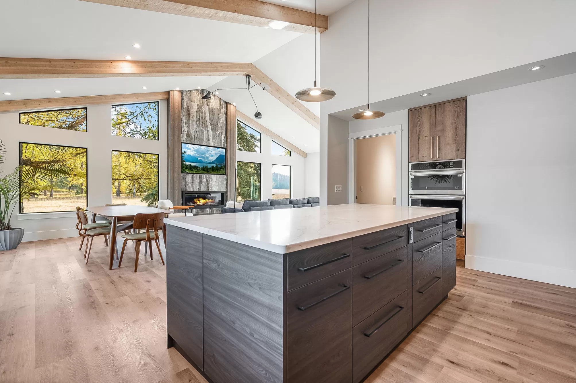 Brand new luxury home on 9+ park-like acres in the exclusive gated Whitefish Ridge community. Designed for refined Montana living, this 2025 reconstructed masterpiece is just 8 minutes from downtown Whitefish. The main residence features a soaring great room flooded with natural light, gourmet kitchen with walk-in pantry, and a signature two-level post and beam covered patio. The primary suite is a true sanctuary, with a spa bath featuring floor-to-ceiling Italian porcelain tile walls, radiant floor heat, steam shower, and a 9' dual vanity. Four bedrooms including dual master suites, a versatile bunk room and cozy family room with bar alcove, creates a perfect floor plan. The property includes a private 1350 sq. ft. guest house with its own expansive outdoor living space. Rounding out this turnkey multi-generational estate is a barn, RV garage, playhouse, and full RV connections. Whitefish Ridge offers trails and a HOA park and private pond. Turnkey Montana luxury at its finest! The Whitefish Ridge neighborhood has exclusive biking and hiking trail system that can connect you to the scenic Beaver Lake State Forest and the renowned Whitefish Trail system. There is a private HOA park with pond for your meditative enjoyment! The primary house on this property was completely reconstructed and added to with completion in August of 2025. The guest house was completed in 2023. James Kottke was the Architect on this property. James is a published and featured Architect with completed projects throughout the western United States. James had two homes featured on HGTV's "Homes Across America" in the early 2000's. CONSTRUCTION 2x6+ Frame Construction R-27+ Wall Insulation / R–70+ Ceiling Insulation W/ Spray Foam & Batt FIREPLACE Featured 60” Propane Gas Linear Fireplace Television w/Art Frame & Featured Fine Art Screen Saver - installed KITCHEN 6 burner LG Studio Gallery Series Propane Gas Cooktop w/ Hood GE Studio 4-Door Refrigerator/Freezer w/ freezer/ref conversion 30” LG Studio Gallery Convection Oven w/ Convection Microwave Combo BEKO Hidden Cabinet Panel Dishwasher w/ 3rd rack & hidden controls European Frameless Contemporary Style Cabinetry - Natural Beech Full Batt Sound Insulation between floors HVAC • Daikin 3-ton FIT air-handler paired w/ 15-KW strip heat w/ Daikin 3-ton variable capacity FIT heat pump. • Multi-Zoned system for Upper and Lower Floors - each with separate Programmable Thermostats • 100% Insulated Ducting • 35,000 BTU Garage Unit Heater ELECTRICAL • New 300-amp Electric Service – Separate electric meter from Guest House • Generator Prepared w/ transfer switch and propane supply line • 4” LED Low Voltage Recessed Gimbal Lighting throughout • All Lighting w/ Dimmers throughout • Outlets located behind all toilets • 220-volt Outlet in Garage for Electric Car Charging • 220-volt Outlet in Bonus Room for future Sauna or appliance • 220 Volt Hot Tub Connection – Rear Patio PLUMBING - 500 Gallon Buried Propane tank – supplies gas cooktop, fireplaces & generator - 2 – 80-gallon electric Water Heaters - Whole House Recirculation System for Instant Hot Water - All Hot Water pipes wrapped with foam insulation throughout - Whole House Water Filtration System - installed - Water Softener – installed - 2nd Washer/Dryer location in Upper Hall Bath FOYER - Clear View of Blacktail Ski Mountain - Heated Floor GREAT ROOM - Large 16’ x 34’ Great Room with Dining Area - Clear View of Blacktail Ski Mountain - Integrated LED Can Lighting - 10’ Double Sliding Glass Door to Covered Dining Deck PRIMARY SUITE - 9’ Ceilings - Built-in Bedside LED reading lights – separate each side of bed - High/Low wiring for TV - 8’ x 8’ Walk-in Closet w/ 54 Lineal Feet of Triple Pull-down Hanging PRIMARY BATH - Primary Bath Walls - 24x48 Italian Porcelain Full Wall Floor to Ceiling Tile - 8’ Vanity w/Undermount Sinks, Cabinet Drawers - Framed Lighted Mirrors & Featured Sconce - Free Standing Slipper Tub - Electric Radiant Heated 12x24 Italian Porcelain Tile Floor - Walk-in Shower w/Multiple Heads & Pressure Balanced Valve Controls - Custom Glass enclosure/Steam Shower w/Lounge Bench & Dripless Sloped Ceiling - Private Separate Toilet Room w/ European Bidet MUDROOM / LAUNDRY - LG Washer/Dryer Tower w/ Remote Water Shut Offs - Undermount Stainless Steel Laundry Sink FAMILY ROOM - Propane gas stove - Recessed Television Location/power for Projection TV - Bar Alcove– Beverage Refrigerator, Microwave & Sink w/ Dishwasher SECONDARY BEDROOMS & BATHS • Shower / Bath Surrounds – Full Height Italian Porcelain Tile w/ Shampoo Shelves and Reachable Shower Valves OUTDOOR COVERED PATIOS - Front Vaulted Roof Covered Porch w/ Metal Shed Roof & Natural Rough Sawn Wood Tongue & Groove Ceiling w/ Rough Sawn Heavy Timbers w/ Integrated Can Lighting - Rear Post & Beam Raised Vaulted Roof Covered Dining Deck w/ BBQ outdoor kitchen area. - 220 Wired for Hot Tub - Propane plumbed for firepit GARAGE • OVERSIZED Car Garage - 16’ wide x 27’ long x 10’ ceiling • 10’ wide x 9’ high Insulated Garage Doors • 220v Electric Car Charging Stations • Hot & Cold Hose Bib in Garage • 35,000 BTU Garage Unit Heater • Multiple Windows for Natural Day Lighting Guest House - - Steel Frame Post & Truss Structure with 2x6 Frame Walls between Posts. - R-22 Batt Wall Insulation / R-50 Batt Roof Insulation - Full Batt Sound Insulation all interior walls - Lifetime Metal Roof ELECTRICAL • New 100-amp Electric Service w/ separate meter • New Electrical panels – Located Interior • 4” LED Low Voltage Recessed Gimbal Lighting w/ Dimmers throughout • 220-volt Outlet in Studio for Electric Car Charging • 220 Volt Hot Tub Connection • Kitchen & Bedroom Outlets w/integrated USB Plugs PLUMBING - 40 gallon electric Water Heater - Whole House Recirculation System for Instant Hot Water - All Hot Water pipes wrapped with foam insulation throughout - Whole House Water Filtrat