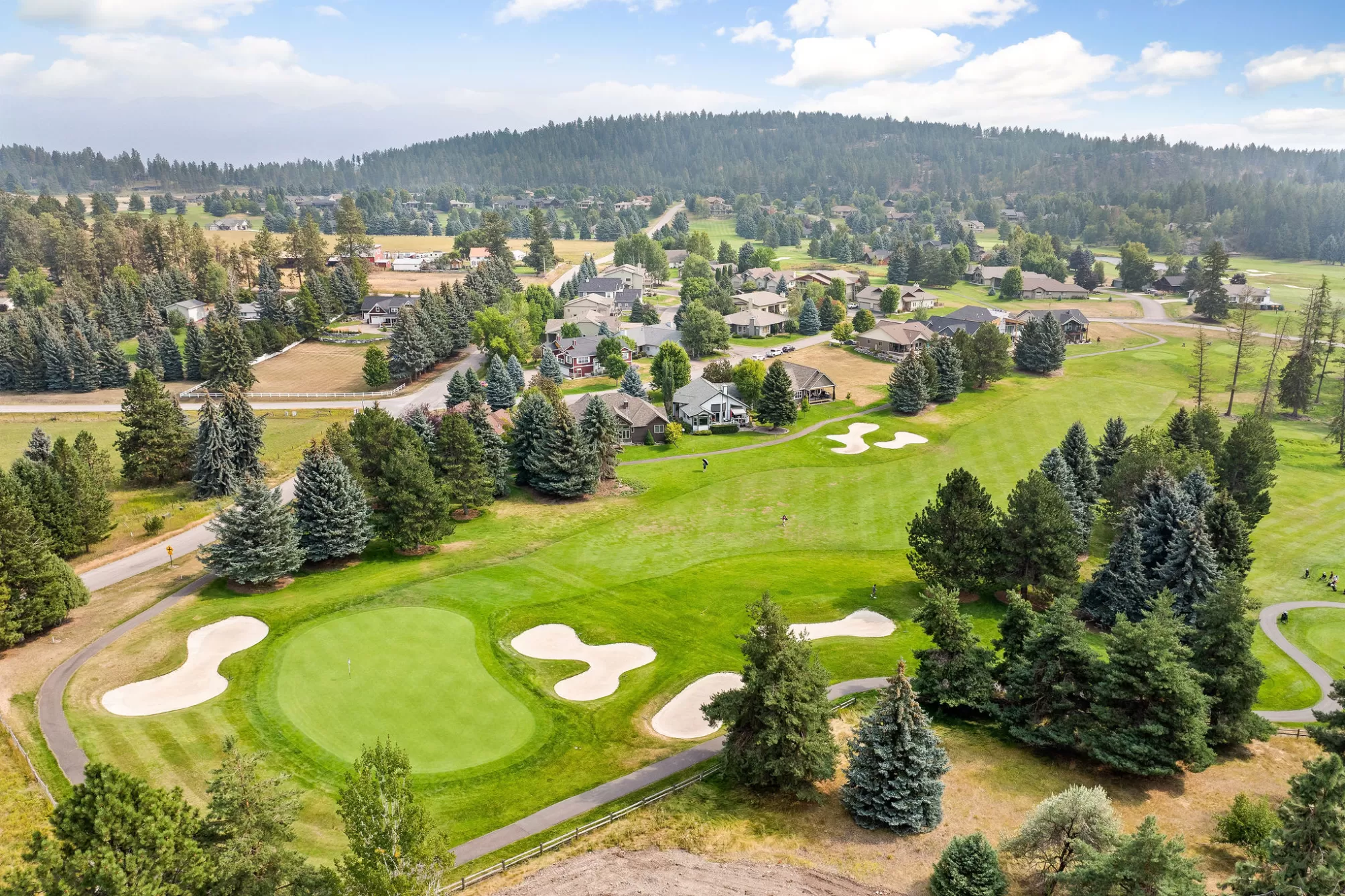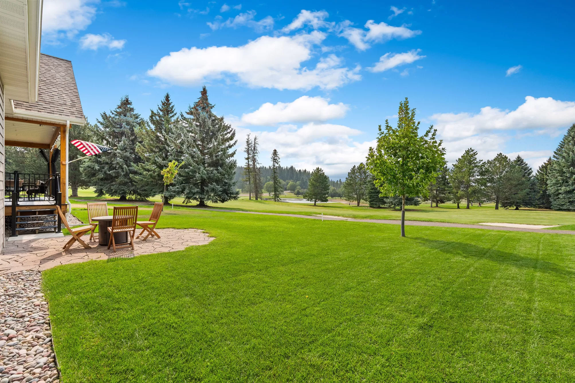 PRICED BELOW RECENT APPRAISAL — with furnishings negotiable. This is your chance to step into turnkey Montana living in one of Eagle Bend’s most desirable golf-course settings. Set along the fairways of Eagle Bend Golf Course, this thoughtfully designed single-level home (built in 2021) delivers modern comfort wrapped in timeless Montana style. Mornings begin on the expansive covered deck overlooking manicured greens, while evenings invite gathering around the flagstone firepit—perfect for soaking in every season Bigfork has to offer. Inside, natural light fills the open great room, accentuating vaulted ceilings, warm hickory wood floors, and a cozy gas fireplace. Custom top-down/bottom-up shades provide the ideal balance of privacy and sunlight throughout the home. The chef’s kitchen is both stylish and functional, featuring heated floors, granite countertops, and sleek stainless-steel appliances—designed for everyday ease and effortless entertaining. shower. Bathrooms throughout the home showcase elegant granite and tile finishes. Recent 2025 upgrades include new flooring, fresh interior paint, and Bosch appliances—adding even more value and polish. Year-round comfort is ensured with a whole-house generator, high-efficiency furnace, and air conditioning, making this home as practical as it is inviting. Beyond the front door, the lifestyle truly shines. The charming village of Bigfork—known for its art galleries, fine dining, boutique shopping, and the iconic Bigfork Summer Playhouse—is just minutes away. Endless outdoor recreation surrounds you, from Flathead Lake and nearby rivers to world-class skiing, hiking, and Glacier National Park. Add Bigfork’s sought-after “banana belt” reputation for milder winters, plus easy access to Kalispell, Whitefish, Lakeside, Columbia Falls, and Glacier Park International Airport, and you have a location that truly checks every box. A rare opportunity to own a modern, move-in-ready home in Eagle Bend—priced below appraisal and offering negotiable furnishings for a seamless transition.