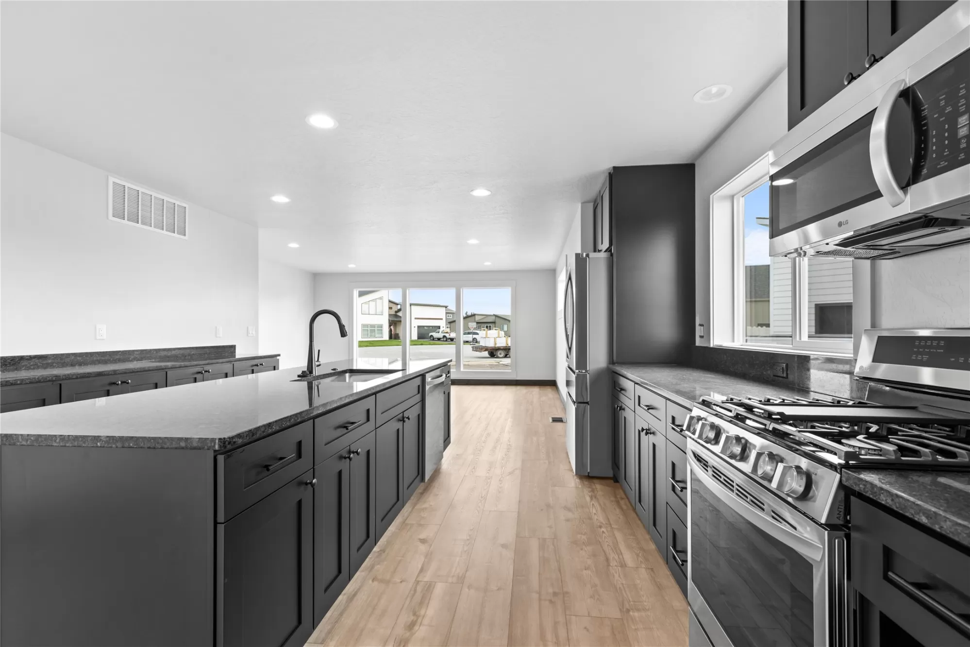 Newly Built 5 bed, 3.5 bath home in the Meadows Edge Subdivision. Approx. 3,597 SF on around a quarter acre. Modern finishes with a 1,306 SF finished walk-out basement, AC, office, underground sprinklers, and mountain views. Excellent location close to Kalispell's major shopping area, FVCC, Logan Health, and easy access to the bypass. Subdivision includes walking trails, a dog park, and playground all within close distance. House is freshly finished and ready for its first owners!