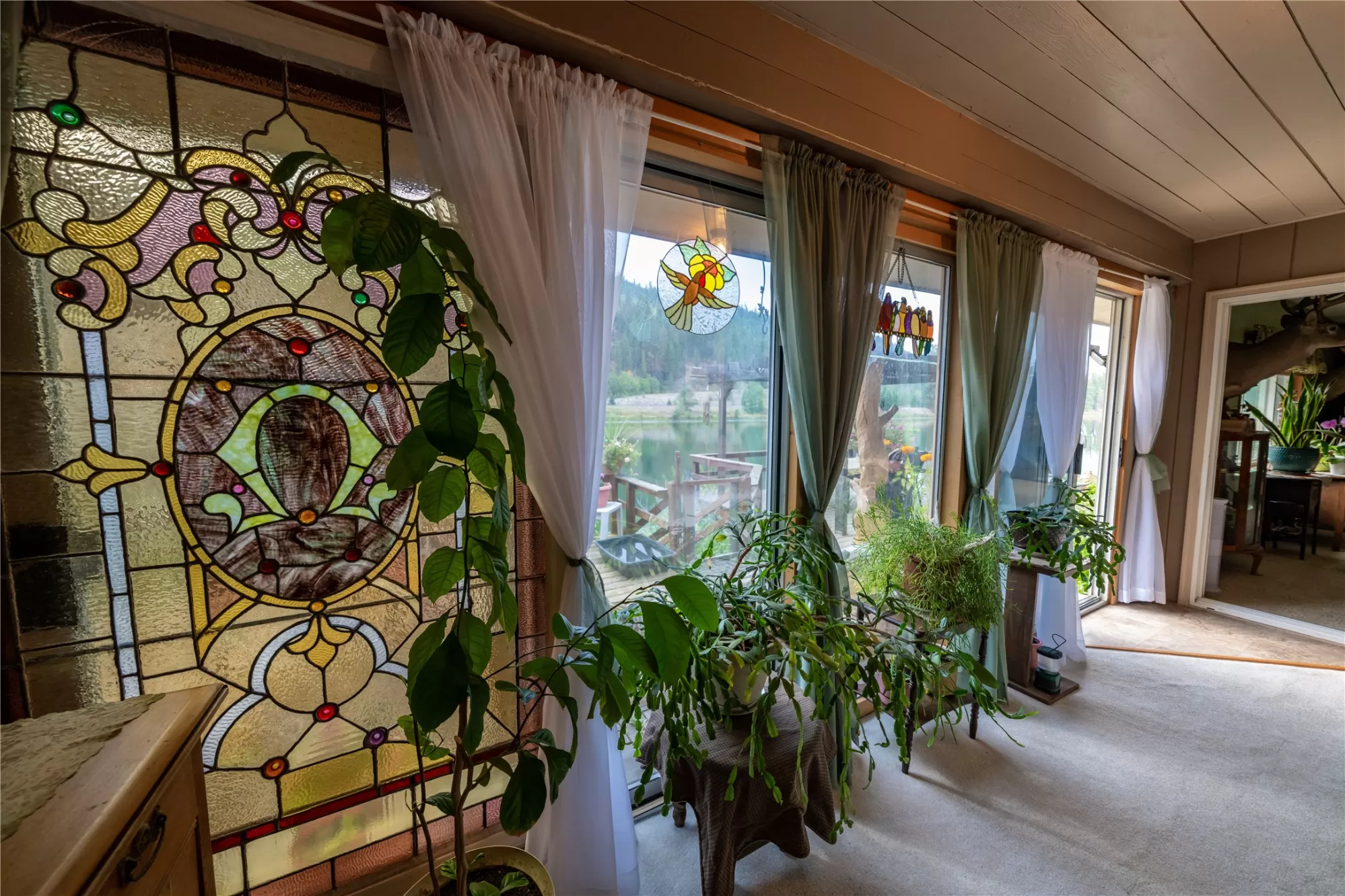 This home has Wonderful Outside and Inside Living, with 105 ft of Kootenai River Frontage. Landscaped back has several sitting areas, with great views of the Kootenai River. Wander on the rock paths to set in the shade near the hot tub and rocked area with covered BBQ grill and fire pit and take in all the flowers and flow of the river. Or set on the covered patio and watch the boats and kayas float by. Or if the weather isn't perfect set in the glassed in Sunroom/bedroom and watch the fish jump while the Eagles and Osprey fly by. Interior has many updates with lots of new features. Large open living area with pellet stove insert, and lots of windows to view the river. 3 bedrooms and 1.5 baths with the main bedroom having a glass slider for viewing the river and access to the many setting areas. Two car garage with a bonus/office/guest room. Chicken coop. Two set of steps to access the River, plus a floating dock to tie your boat up to or swimming. Truly one-of-a-kind property.