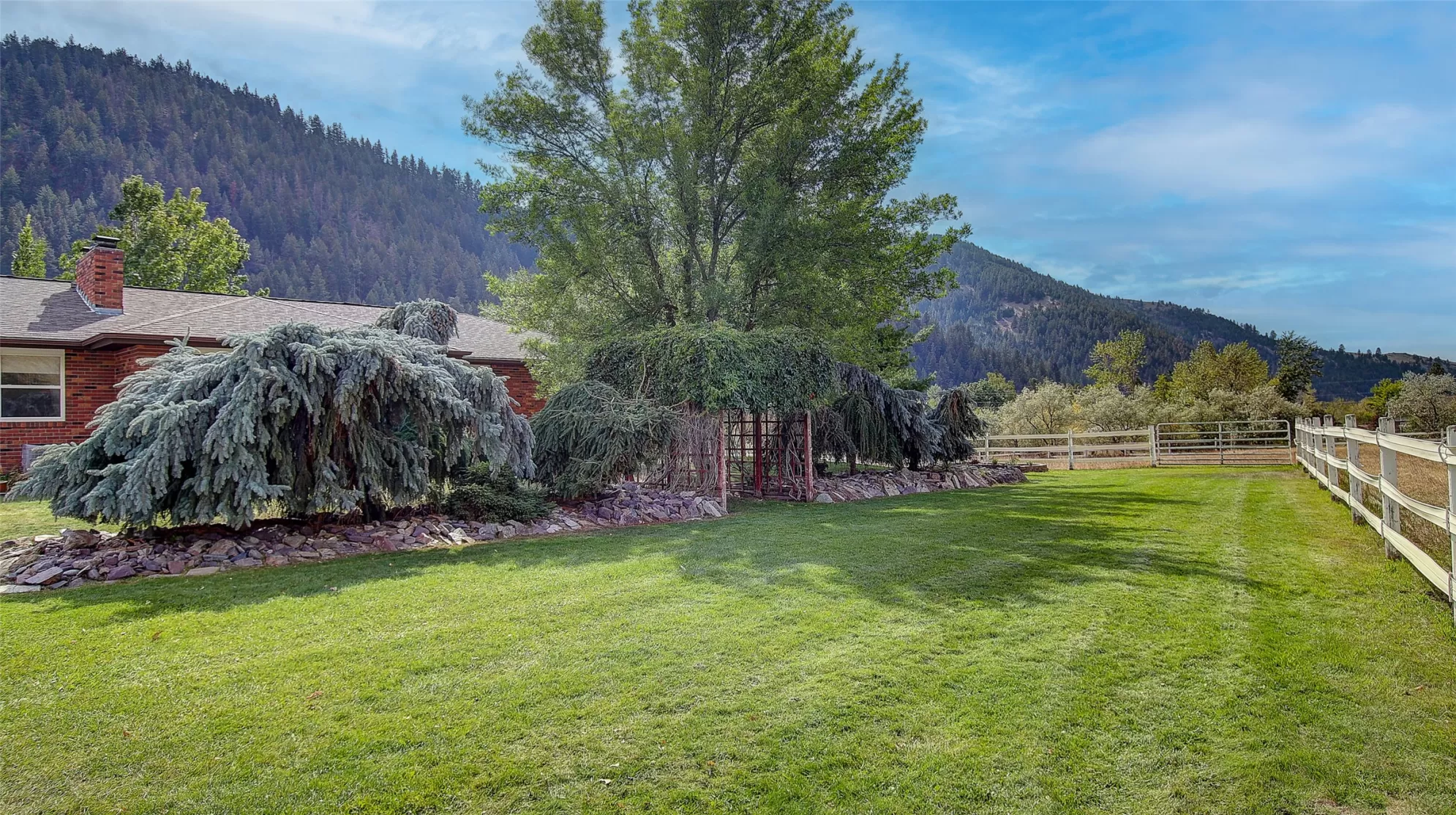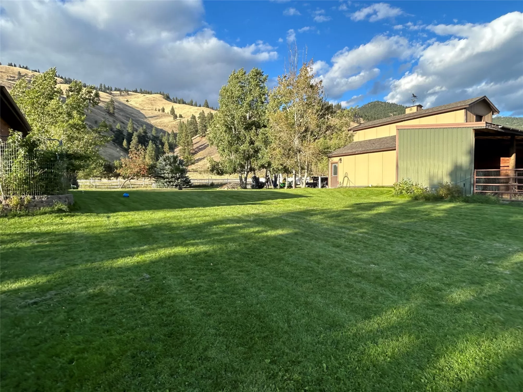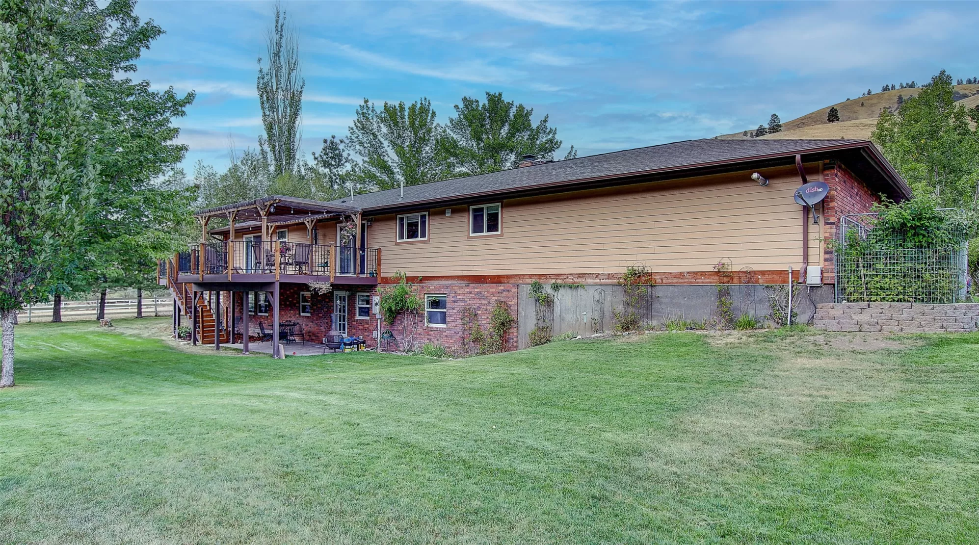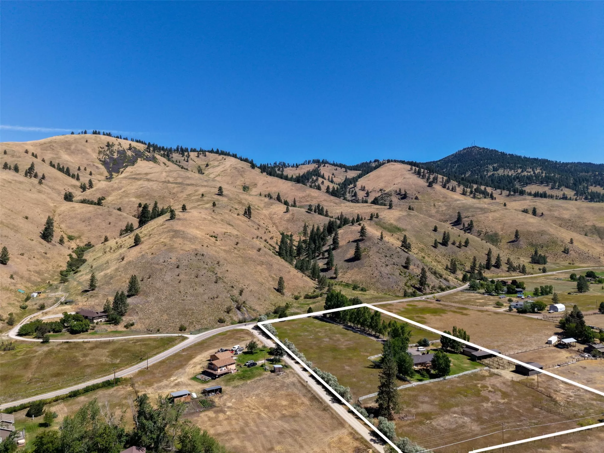 Welcome to 9859 Miller Creek Rd, nestled just outside the city limits of Missoula, this stunning 4 bed, 3 bath ranch-style home offers the perfect blend of peaceful country living and modern comfort all on 5.9 fully fenced acres. A must see inside, home is much larger than it appears from a drive by. As you turn off the main road, a long, tree-lined driveway welcomes you to this beautifully maintained 3,540 sq ft home, complete with an attached 2-car garage, barn, hay barn, and three separate fenced pastures - perfect for horses or hobby farming. Inside, the main floor boasts a spacious kitchen with a large island, perfect for entertaining, and a dining area with sliding glass door that opens to a gorgeous oversized deck overlooking the back pasture and offering breathtaking mountain views. The living room features hardwood floors, oversized window, a stunning native rock fireplace, and custom wood floating shelving. See supplemental remarks for more information. The primary suite includes a generous walk-in closet and a luxurious en-suite bathroom with a jetted tub and a walk-in tiled shower. Downstairs, the finished basement offers even more living space with a large family room, cozy fireplace, a full bar complete with wine fridge and kegerator, two bedrooms, a bathroom, laundry room, ample storage, and a private entrance leading to a peaceful back patio. Step outside to enjoy a beautifully landscaped yard with garden beds, a decorative archway surrounded by mature trees, and a fire pit area for cozy evenings under the stars. This property is ideal for anyone seeking the space, tranquility, and the beauty Montana is known for, all while staying close to the amenities of Missoula. Whether you are in search for a well established horse property or simply a home that provides sweeping views, privacy and room to breathe - look no further.