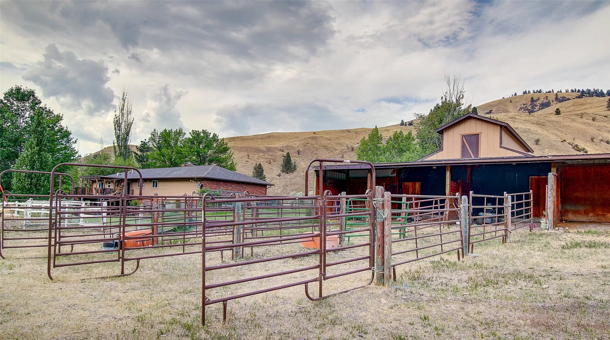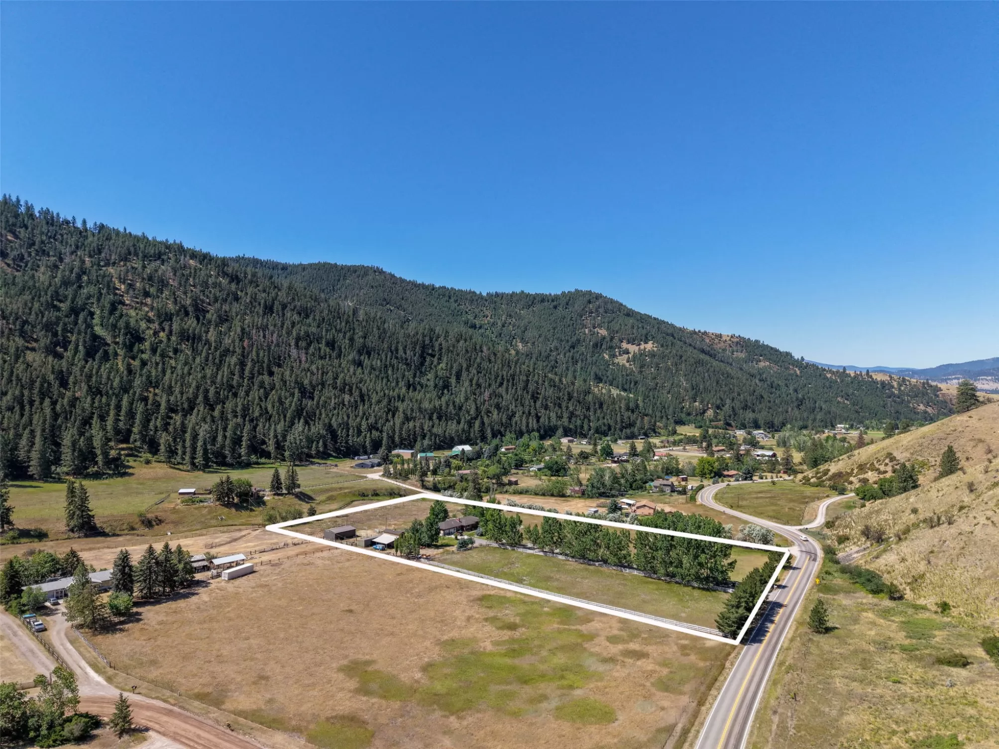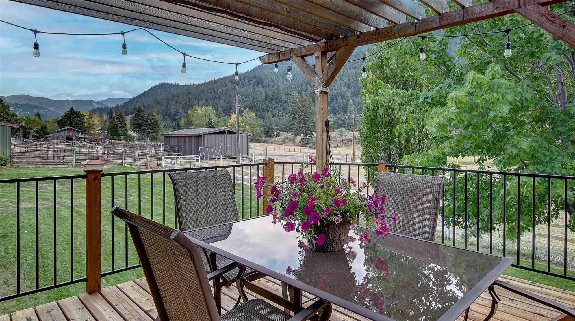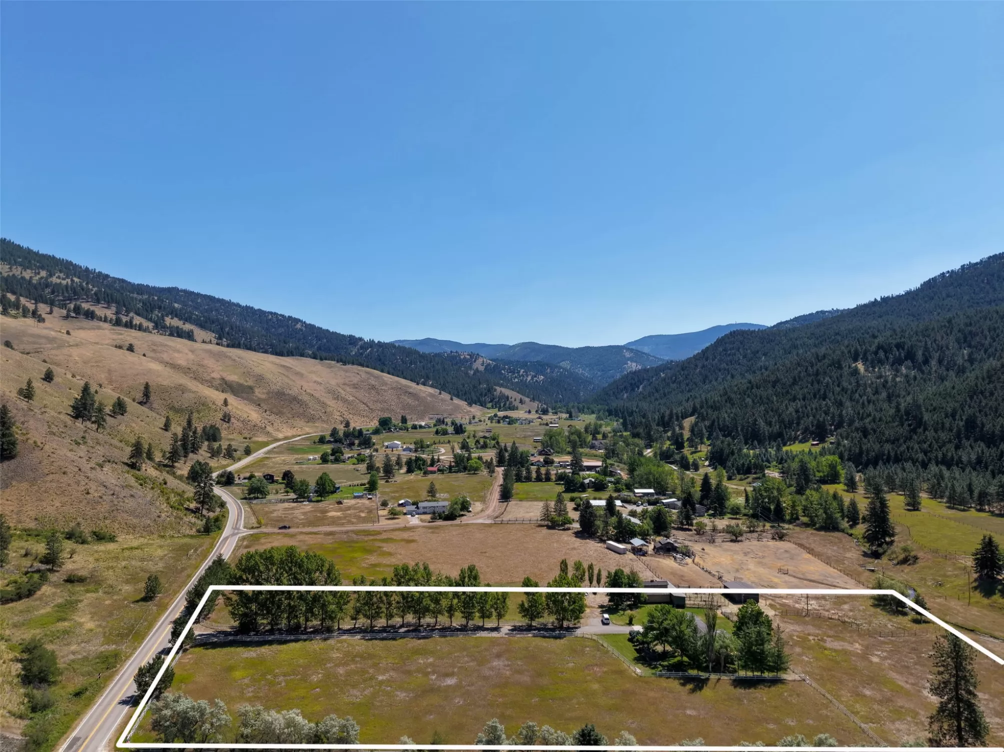 Welcome to 9859 Miller Creek Rd, nestled just outside the city limits of Missoula, this stunning 4 bed, 3 bath ranch-style home offers the perfect blend of peaceful country living and modern comfort all on 5.9 fully fenced acres. A must see inside, home is much larger than it appears from a drive by. As you turn off the main road, a long, tree-lined driveway welcomes you to this beautifully maintained 3,540 sq ft home, complete with an attached 2-car garage, barn, hay barn, and three separate fenced pastures - perfect for horses or hobby farming. Inside, the main floor boasts a spacious kitchen with a large island, perfect for entertaining, and a dining area with sliding glass door that opens to a gorgeous oversized deck overlooking the back pasture and offering breathtaking mountain views. The living room features hardwood floors, oversized window, a stunning native rock fireplace, and custom wood floating shelving. See supplemental remarks for more information. The primary suite includes a generous walk-in closet and a luxurious en-suite bathroom with a jetted tub and a walk-in tiled shower. Downstairs, the finished basement offers even more living space with a large family room, cozy fireplace, a full bar complete with wine fridge and kegerator, two bedrooms, a bathroom, laundry room, ample storage, and a private entrance leading to a peaceful back patio. Step outside to enjoy a beautifully landscaped yard with garden beds, a decorative archway surrounded by mature trees, and a fire pit area for cozy evenings under the stars. This property is ideal for anyone seeking the space, tranquility, and the beauty Montana is known for, all while staying close to the amenities of Missoula. Whether you are in search for a well established horse property or simply a home that provides sweeping views, privacy and room to breathe - look no further.