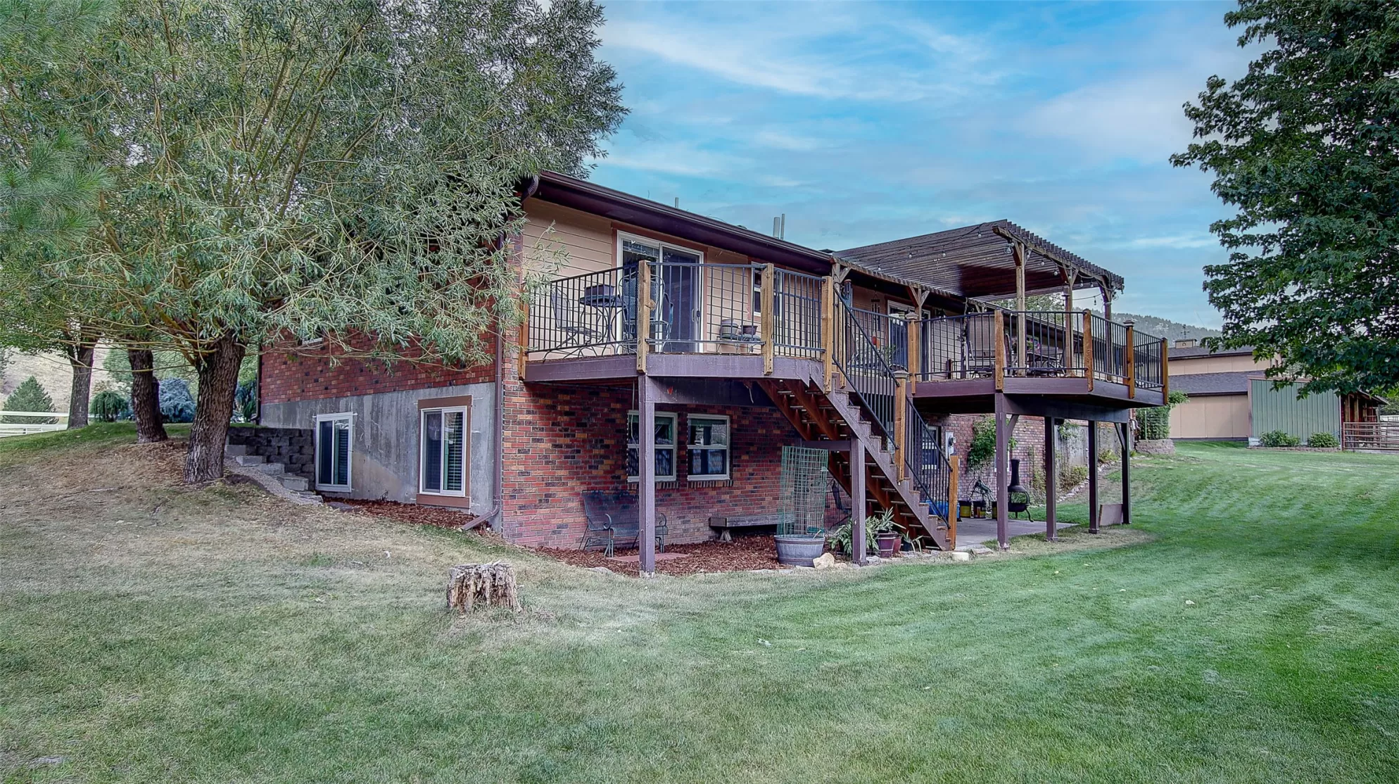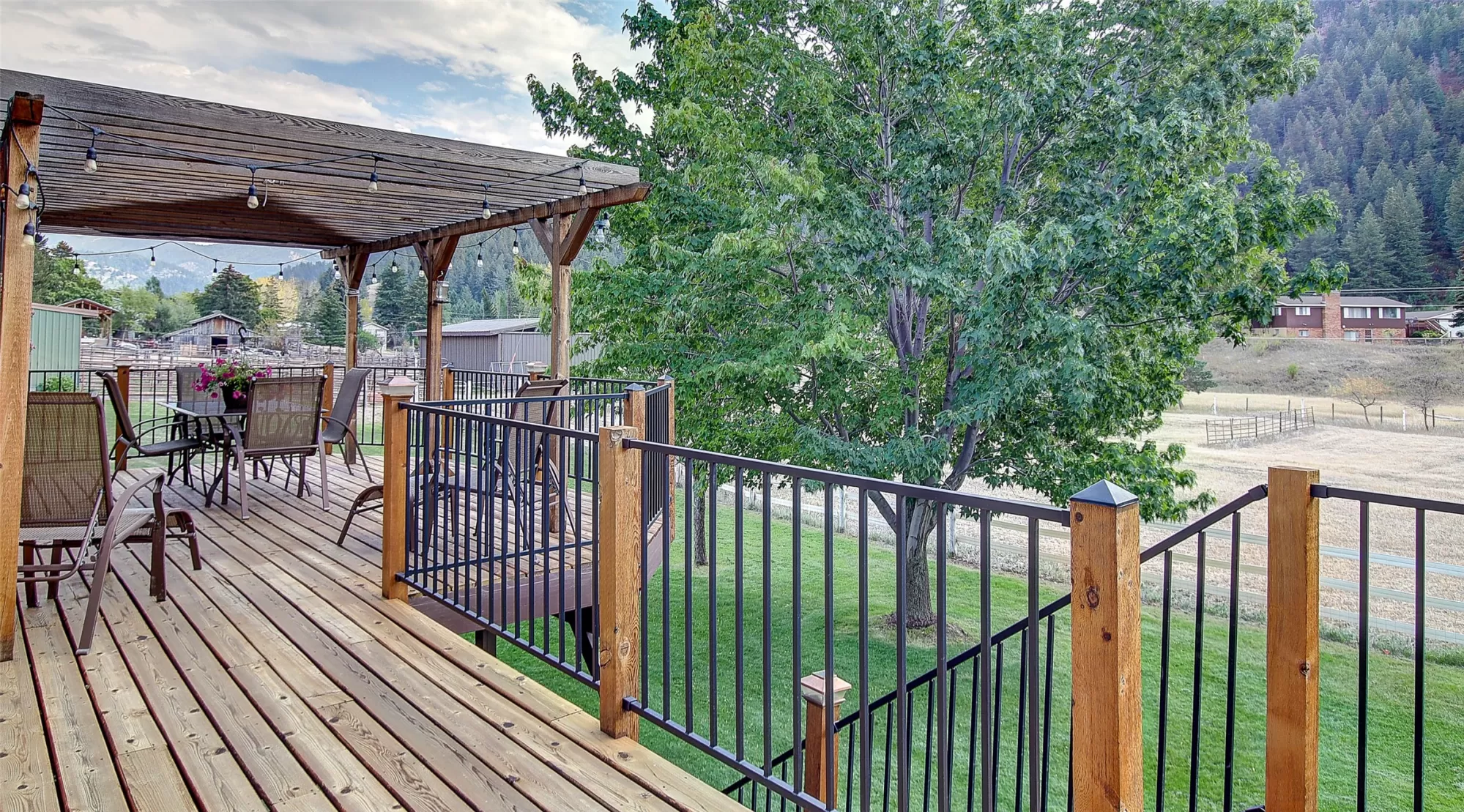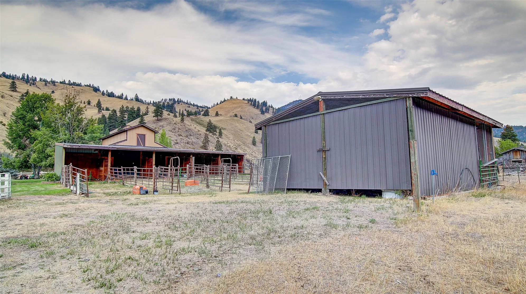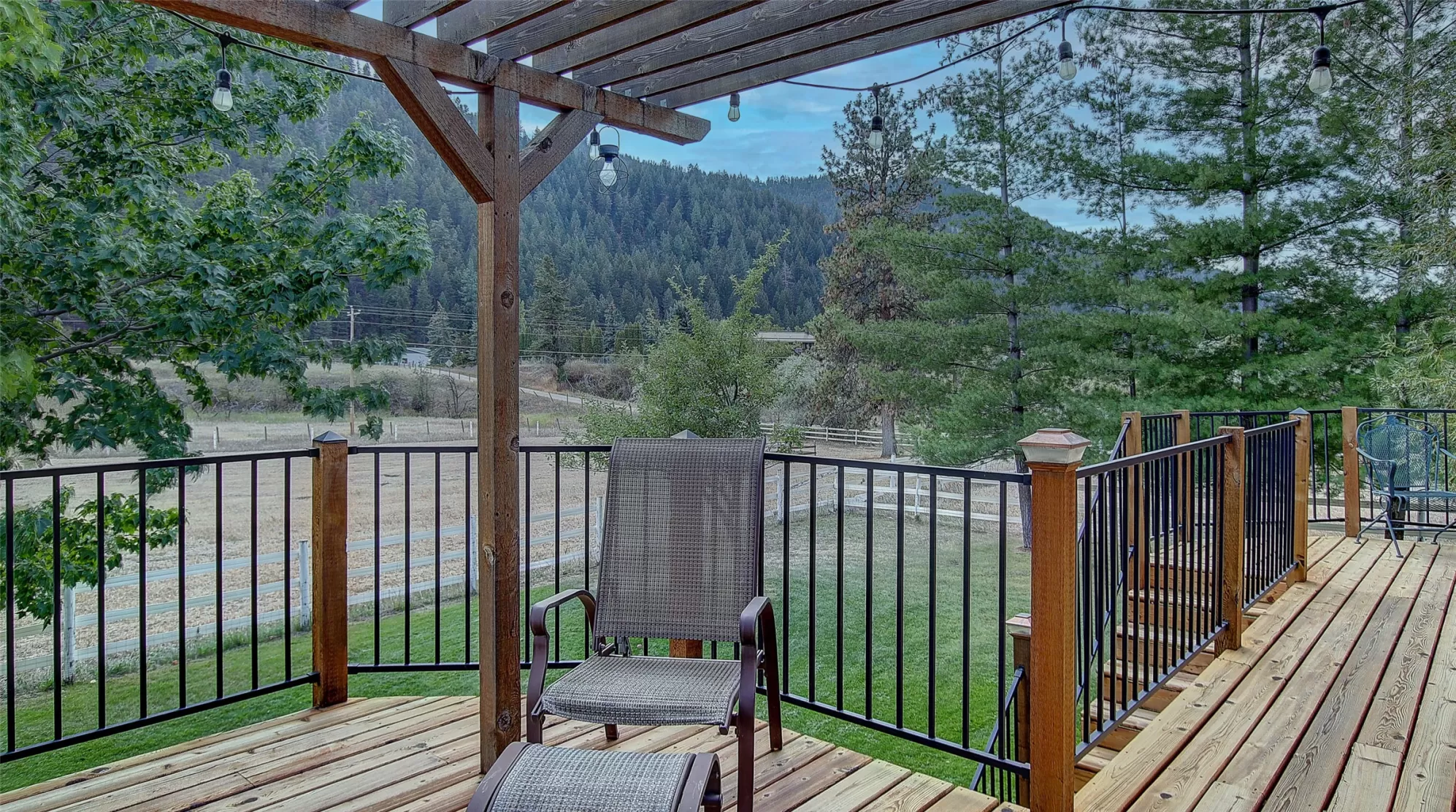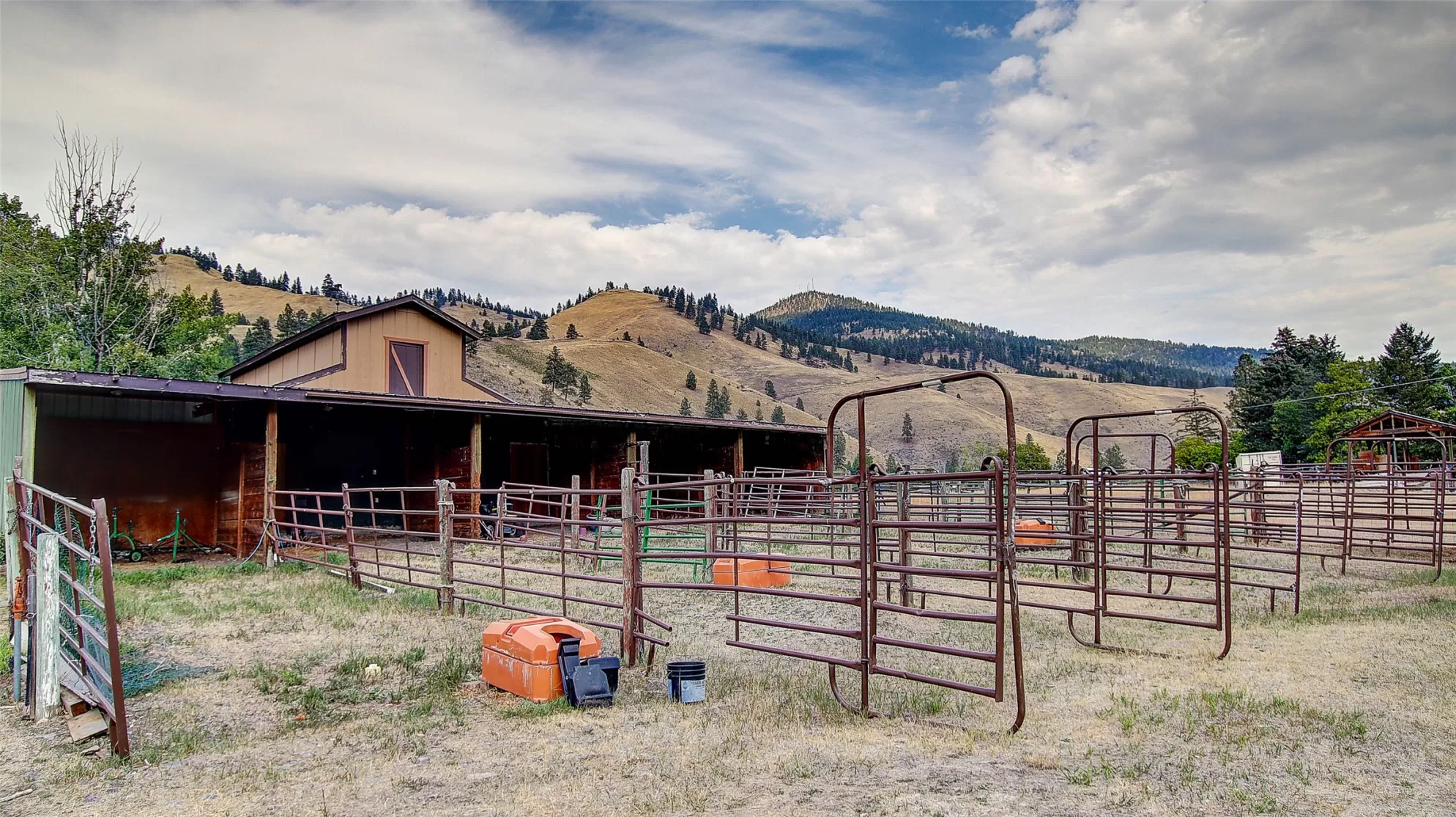 Welcome to 9859 Miller Creek Rd, nestled just outside the city limits of Missoula, this stunning 4 bed, 3 bath ranch-style home offers the perfect blend of peaceful country living and modern comfort all on 5.9 fully fenced acres. A must see inside, home is much larger than it appears from a drive by. As you turn off the main road, a long, tree-lined driveway welcomes you to this beautifully maintained 3,540 sq ft home, complete with an attached 2-car garage, barn, hay barn, and three separate fenced pastures - perfect for horses or hobby farming. Inside, the main floor boasts a spacious kitchen with a large island, perfect for entertaining, and a dining area with sliding glass door that opens to a gorgeous oversized deck overlooking the back pasture and offering breathtaking mountain views. The living room features hardwood floors, oversized window, a stunning native rock fireplace, and custom wood floating shelving. See supplemental remarks for more information. The primary suite includes a generous walk-in closet and a luxurious en-suite bathroom with a jetted tub and a walk-in tiled shower. Downstairs, the finished basement offers even more living space with a large family room, cozy fireplace, a full bar complete with wine fridge and kegerator, two bedrooms, a bathroom, laundry room, ample storage, and a private entrance leading to a peaceful back patio. Step outside to enjoy a beautifully landscaped yard with garden beds, a decorative archway surrounded by mature trees, and a fire pit area for cozy evenings under the stars. This property is ideal for anyone seeking the space, tranquility, and the beauty Montana is known for, all while staying close to the amenities of Missoula. Whether you are in search for a well established horse property or simply a home that provides sweeping views, privacy and room to breathe - look no further.