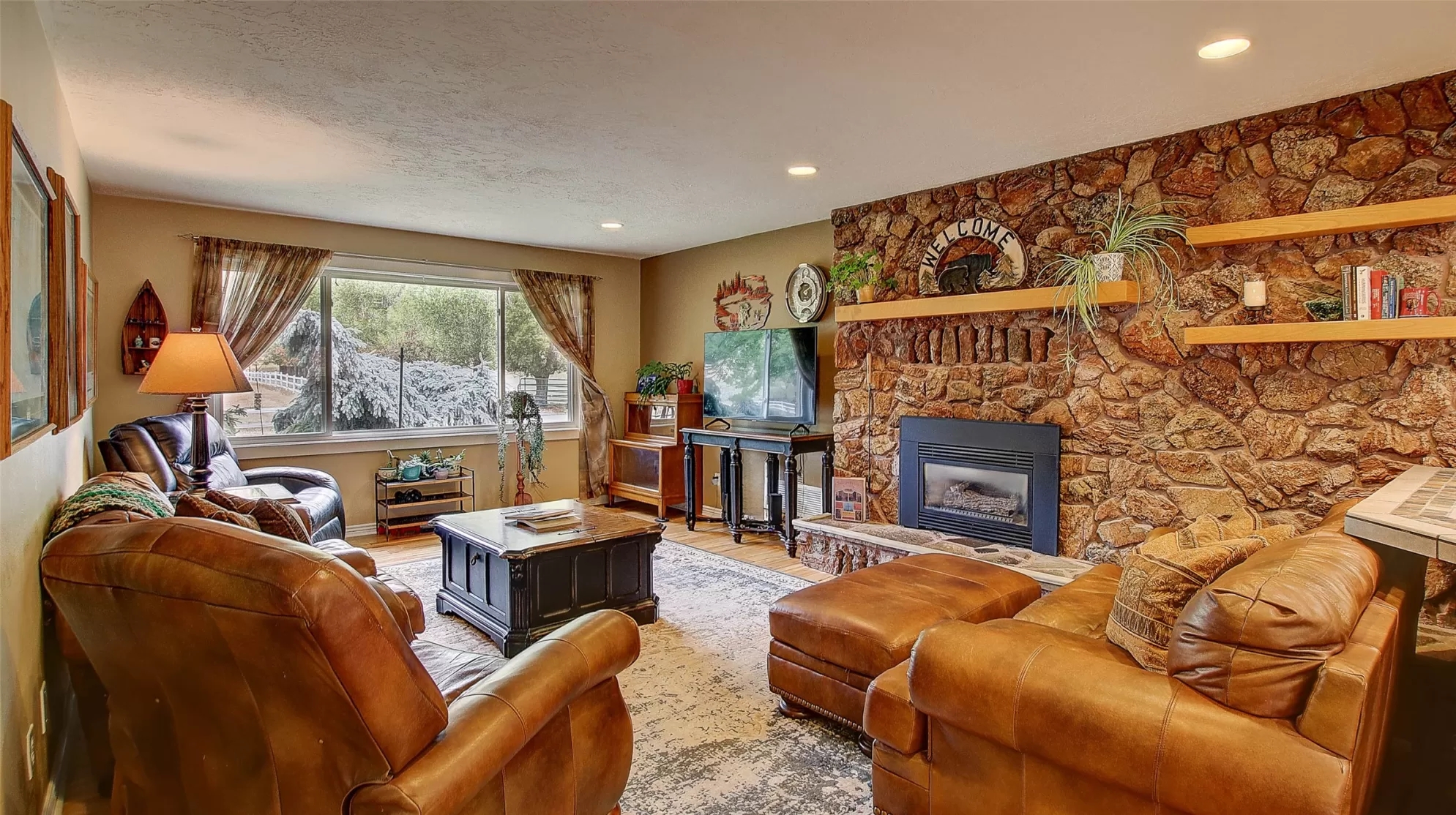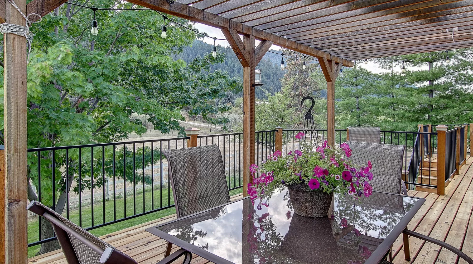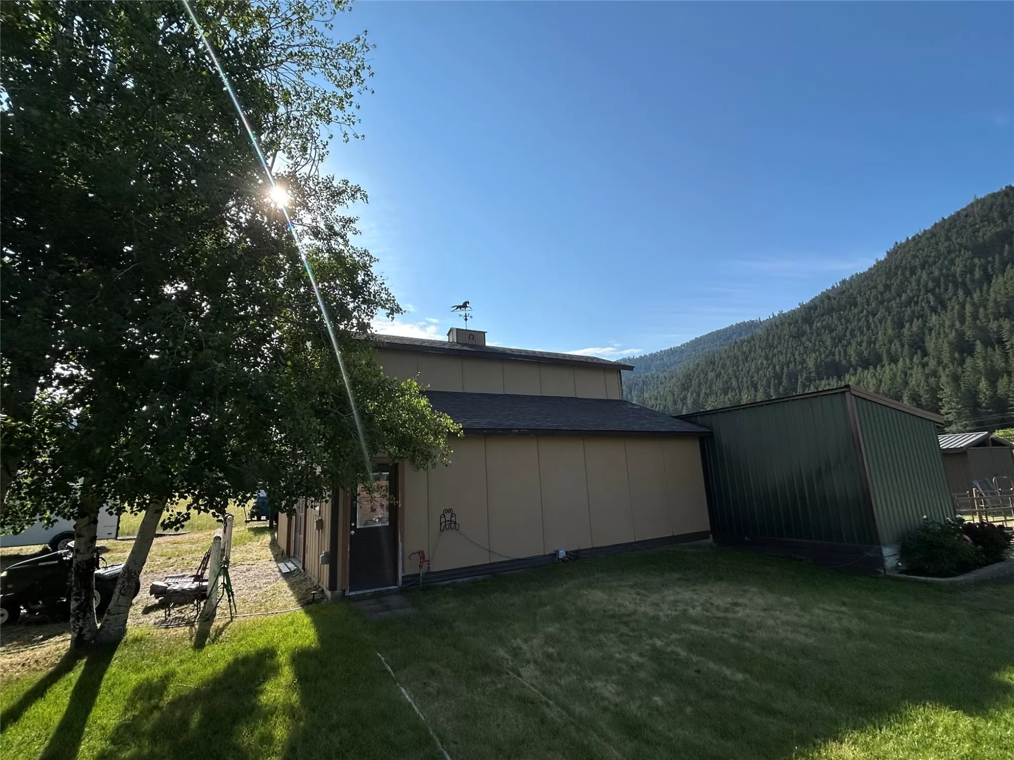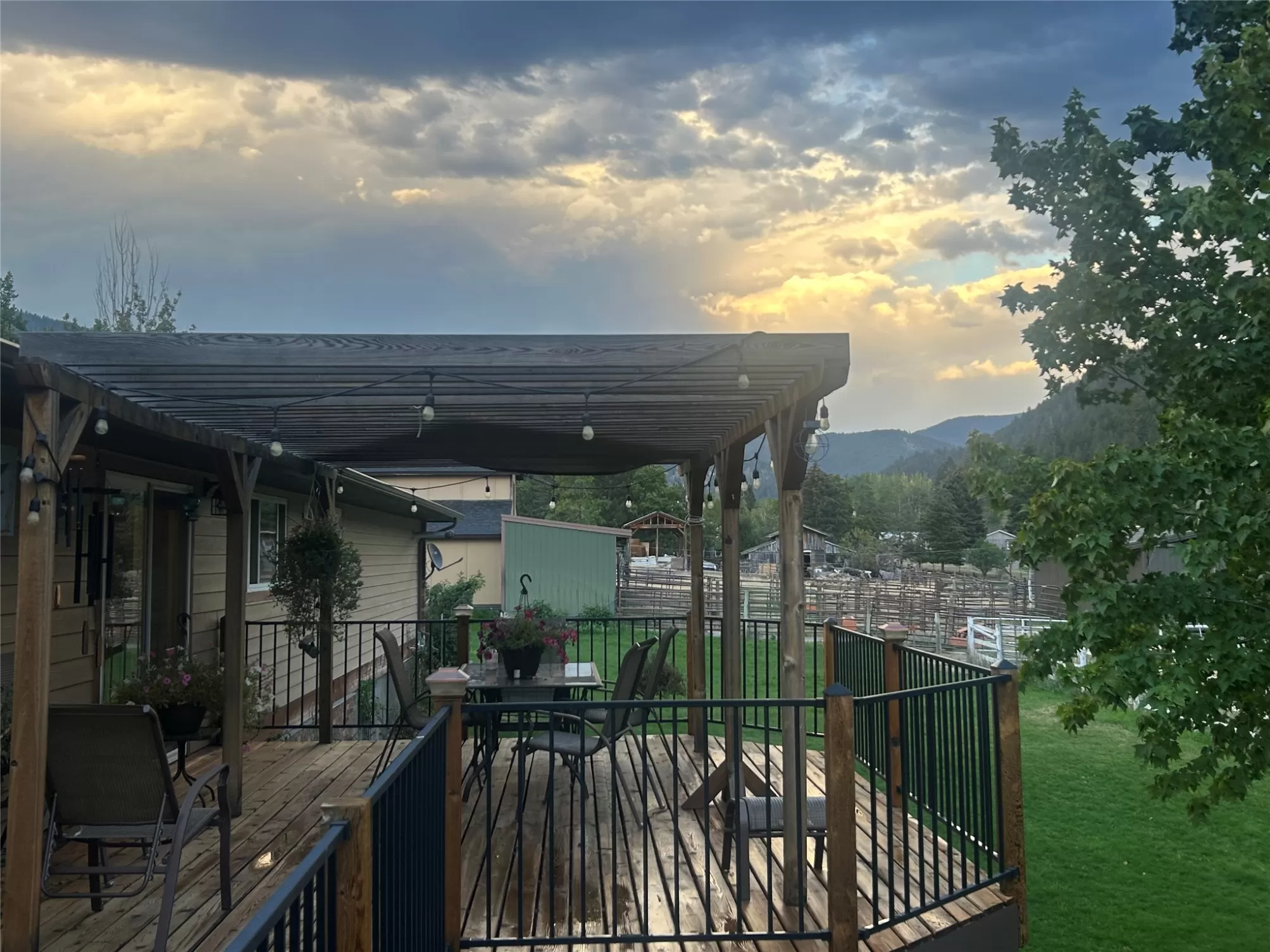 Welcome to 9859 Miller Creek Rd, nestled just outside the city limits of Missoula, this stunning 4 bed, 3 bath ranch-style home offers the perfect blend of peaceful country living and modern comfort all on 5.9 fully fenced acres. A must see inside, home is much larger than it appears from a drive by. As you turn off the main road, a long, tree-lined driveway welcomes you to this beautifully maintained 3,540 sq ft home, complete with an attached 2-car garage, barn, hay barn, and three separate fenced pastures - perfect for horses or hobby farming. Inside, the main floor boasts a spacious kitchen with a large island, perfect for entertaining, and a dining area with sliding glass door that opens to a gorgeous oversized deck overlooking the back pasture and offering breathtaking mountain views. The living room features hardwood floors, oversized window, a stunning native rock fireplace, and custom wood floating shelving. See supplemental remarks for more information. The primary suite includes a generous walk-in closet and a luxurious en-suite bathroom with a jetted tub and a walk-in tiled shower. Downstairs, the finished basement offers even more living space with a large family room, cozy fireplace, a full bar complete with wine fridge and kegerator, two bedrooms, a bathroom, laundry room, ample storage, and a private entrance leading to a peaceful back patio. Step outside to enjoy a beautifully landscaped yard with garden beds, a decorative archway surrounded by mature trees, and a fire pit area for cozy evenings under the stars. This property is ideal for anyone seeking the space, tranquility, and the beauty Montana is known for, all while staying close to the amenities of Missoula. Whether you are in search for a well established horse property or simply a home that provides sweeping views, privacy and room to breathe - look no further.