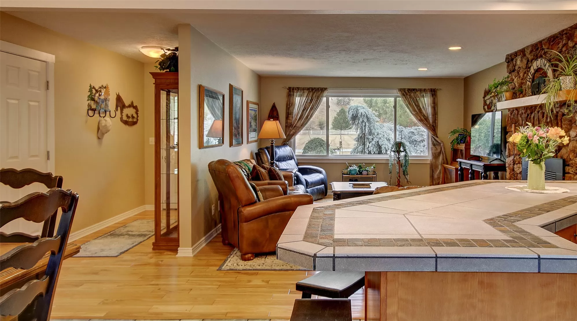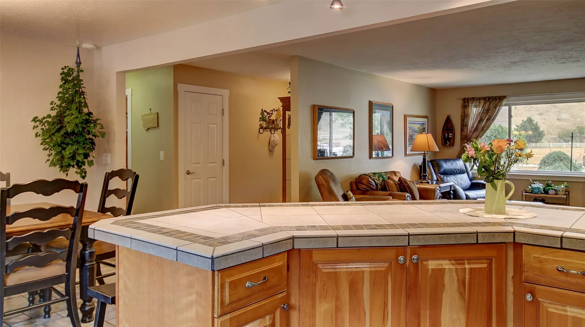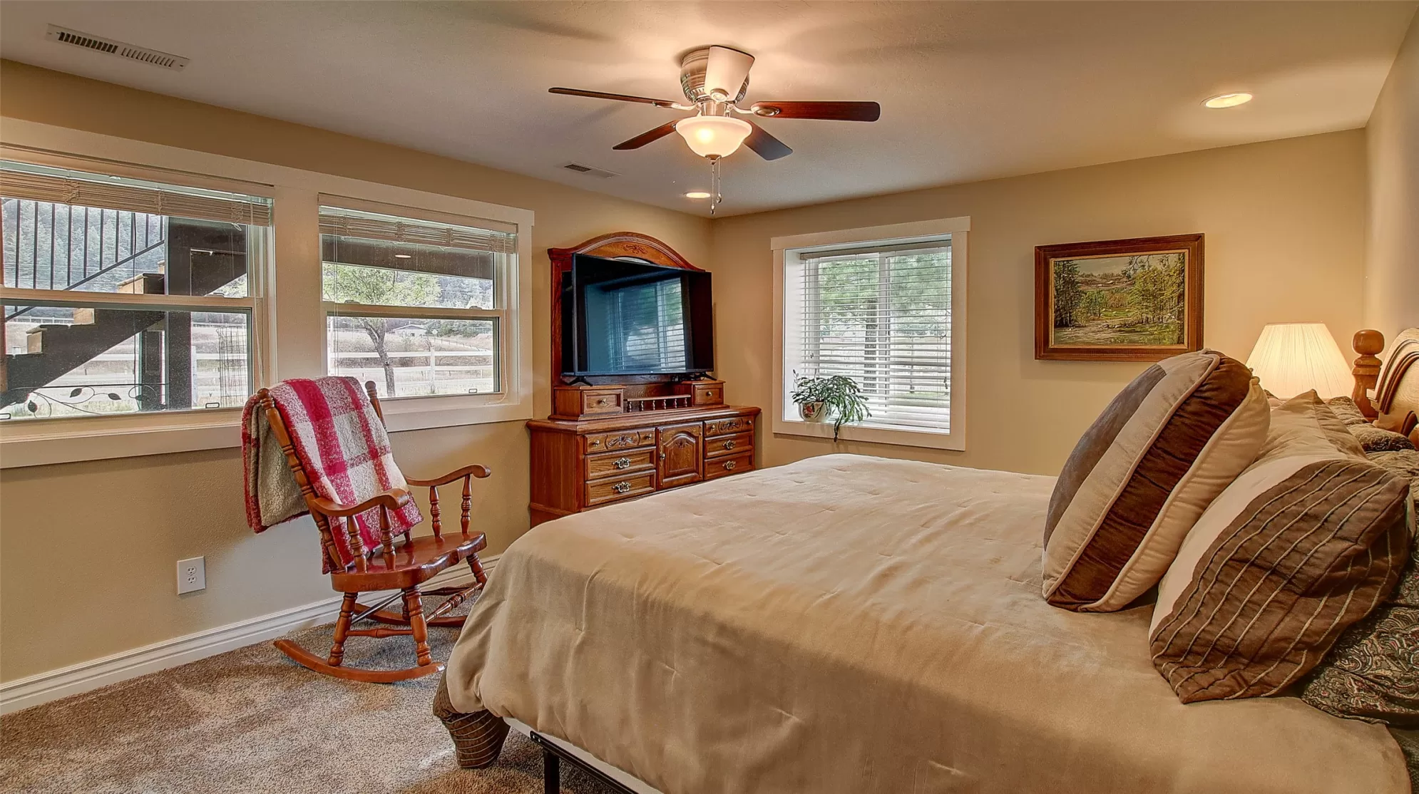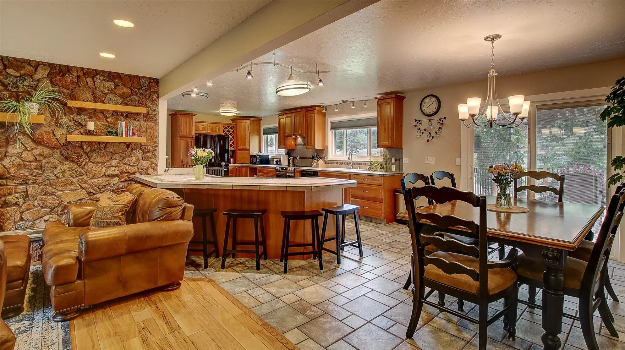 Welcome to 9859 Miller Creek Rd, nestled just outside the city limits of Missoula, this stunning 4 bed, 3 bath ranch-style home offers the perfect blend of peaceful country living and modern comfort all on 5.9 fully fenced acres. A must see inside, home is much larger than it appears from a drive by. As you turn off the main road, a long, tree-lined driveway welcomes you to this beautifully maintained 3,540 sq ft home, complete with an attached 2-car garage, barn, hay barn, and three separate fenced pastures - perfect for horses or hobby farming. Inside, the main floor boasts a spacious kitchen with a large island, perfect for entertaining, and a dining area with sliding glass door that opens to a gorgeous oversized deck overlooking the back pasture and offering breathtaking mountain views. The living room features hardwood floors, oversized window, a stunning native rock fireplace, and custom wood floating shelving. See supplemental remarks for more information. The primary suite includes a generous walk-in closet and a luxurious en-suite bathroom with a jetted tub and a walk-in tiled shower. Downstairs, the finished basement offers even more living space with a large family room, cozy fireplace, a full bar complete with wine fridge and kegerator, two bedrooms, a bathroom, laundry room, ample storage, and a private entrance leading to a peaceful back patio. Step outside to enjoy a beautifully landscaped yard with garden beds, a decorative archway surrounded by mature trees, and a fire pit area for cozy evenings under the stars. This property is ideal for anyone seeking the space, tranquility, and the beauty Montana is known for, all while staying close to the amenities of Missoula. Whether you are in search for a well established horse property or simply a home that provides sweeping views, privacy and room to breathe - look no further.