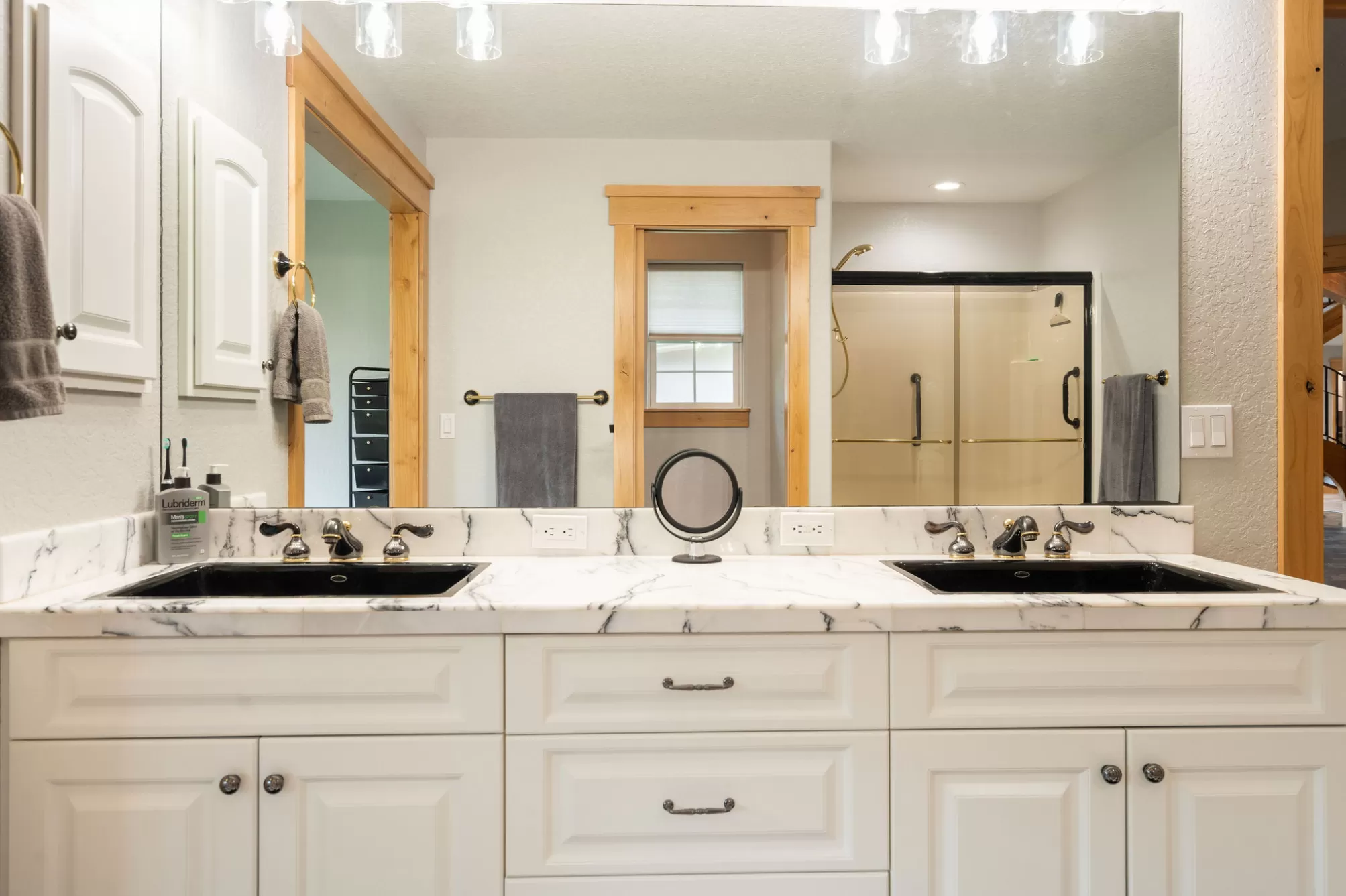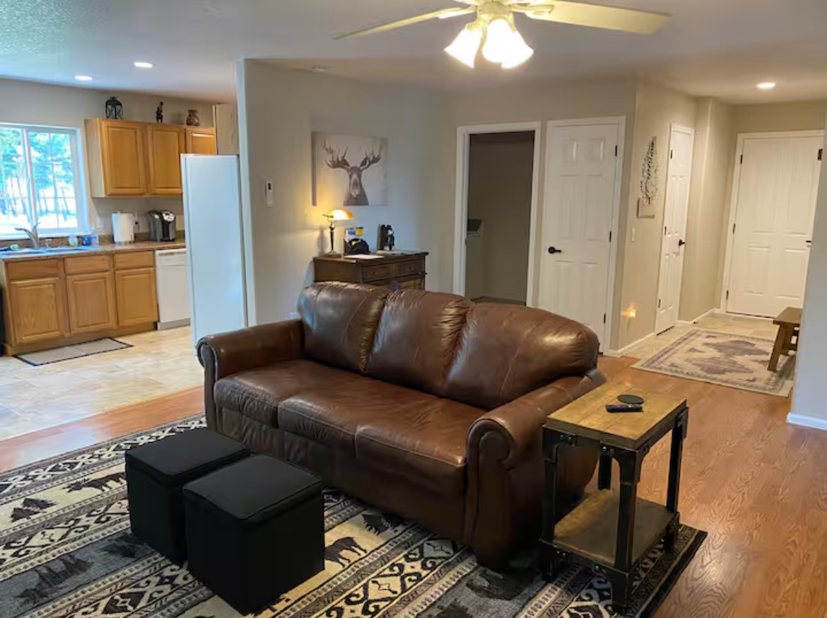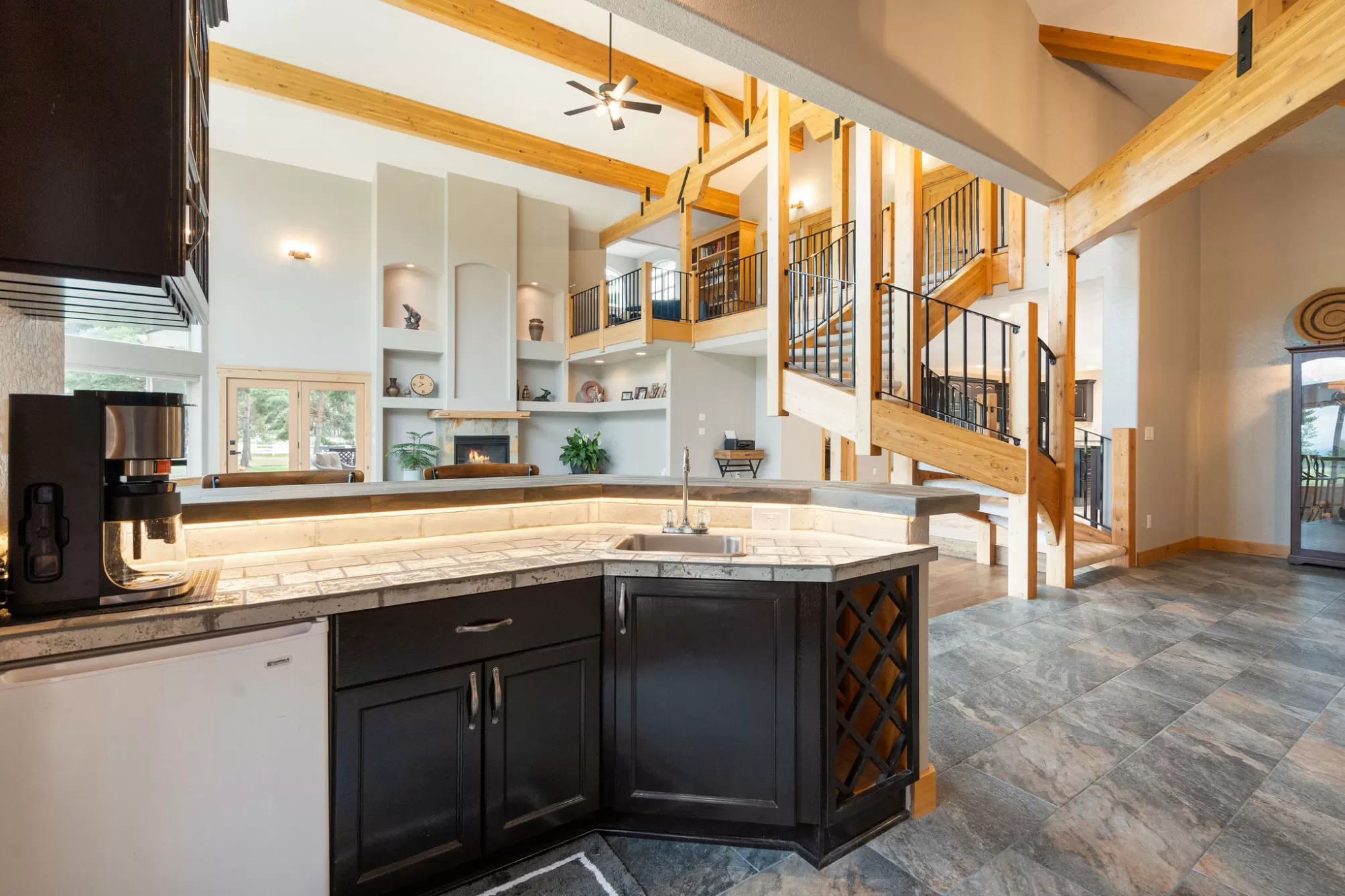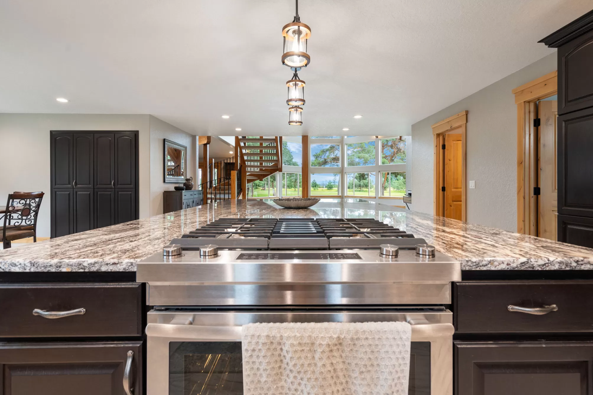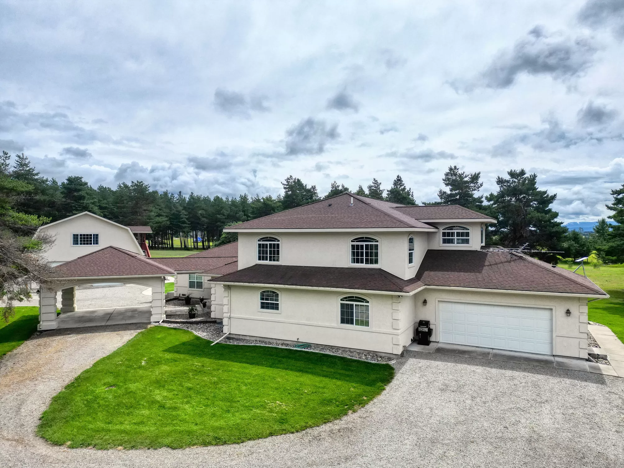 This beautifully updated Kalispell home on 5.49 acres, delivers 2 guest spaces, move-in-ready luxury living, 10 garage spaces and more! Fresh flooring, paint, solid wood doors, and a chef's kitchen featuring a huge 6'x10' granite island, granite counters, tile backsplash, under/over lighting, and double oven. The inviting living room has a beamed vaulted ceiling, built-ins, cozy fireplace, and floor-to-ceiling windows flooding the space with light and stunning views. Flexible spaces offer great storage, geothermal heat/cool for efficiency, plus exceptional outbuildings: 32'x40' heated shop and 44'x24' garage/shop with shelving. A tree-lined drive adds privacy, outdoor basketball court for fun, and brick fire circle! Full 1 bed/1bath apartment above the garage with kitchen and laundry room. Basement space with 1 bed, 1 bath, and kitchenette and a spot to add a separate entrance. Generator-ready in a prime private spot with modern upgradesāthis is a rare gem!