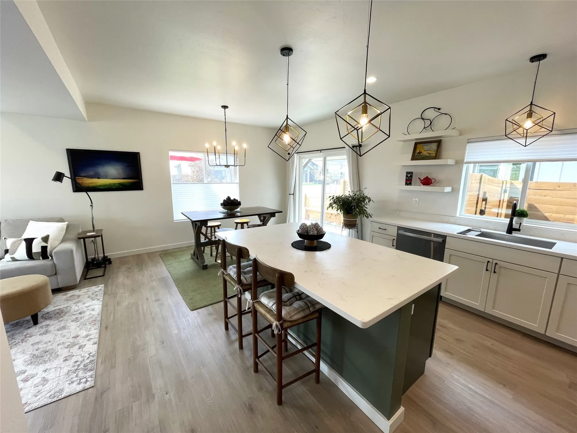 Enjoy your Flathead Valley lifestyle in this beautiful modern home, located in the highly desirable Starling Community. Just minutes from healthcare, shopping, and a plethora of recreational opportunities. This property offers unparalleled convenience. No feature has been overlooked in this high efficiency modern design. An open floor plan with abundant natural light, ample closets, cozy fireplace, and contemporary fixtures provides a wonderful ambience. The kitchen has a gas range, large island with plenty of cabinet space, quartz countertops, and a spacious walk-in pantry. Pella storm door, two-way Bali window shades, LG Wash Tower, and large, spacious bathrooms enhance the easy living experience. The garage is fully finished with a sealed floor and Gladiator overhead shelving. There are multiple outdoor seating areas where you can take in the views as you relax in the shade or sun. The large corner lot has a variety of trees, fully finished landscaping, cedar and steel fencing and a garden tool shed. This like-new home has been immaculately maintained and is completely move-in ready.