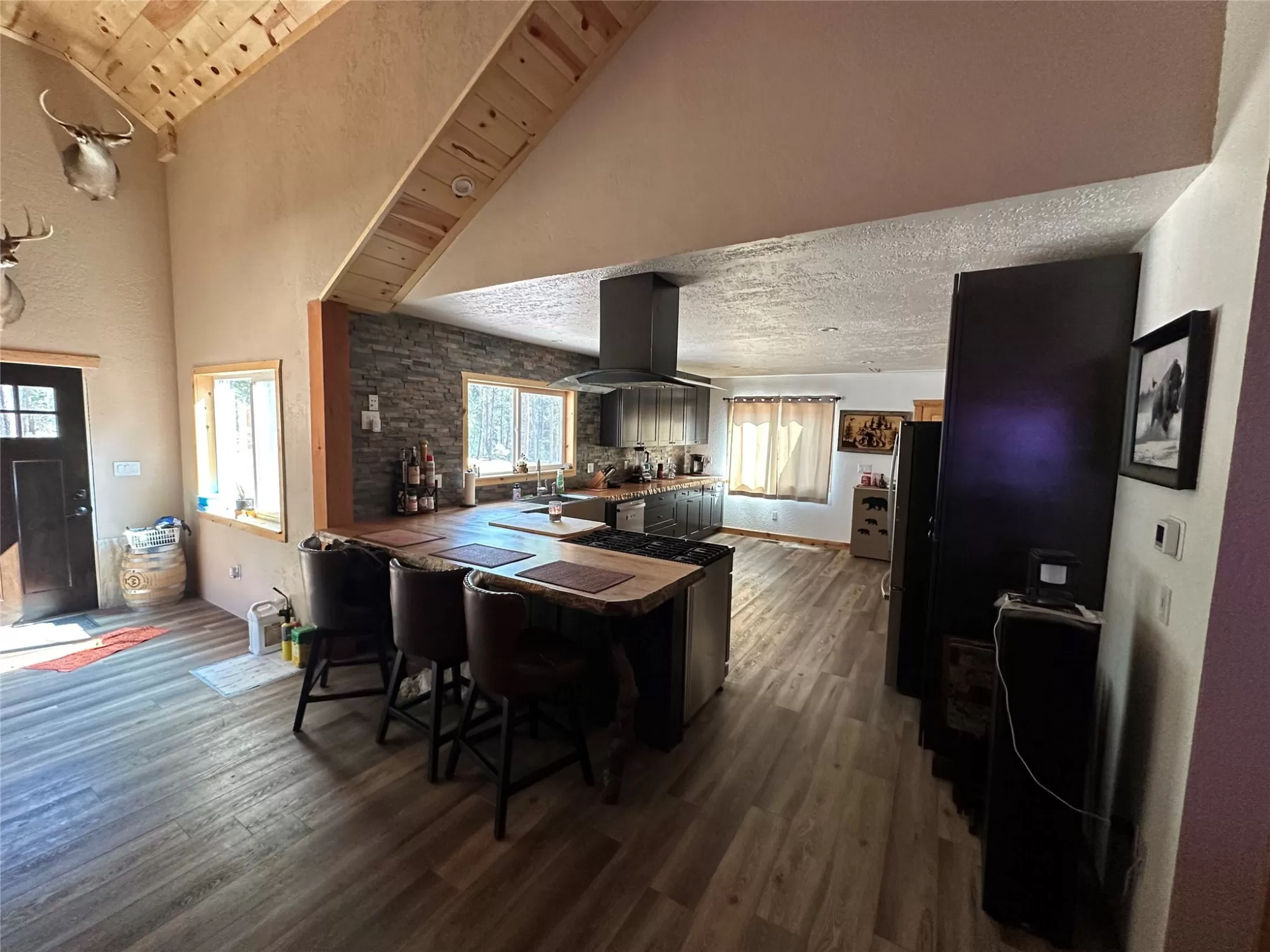 Your dream house in the woods of Montana awaits on a county maintained, paved road. This house is almost move in ready. The current owners have stripped the walls of the home down to the studs for a complete interior and exterior renovation. New 19' high entryway with lots of beam and stonework. Virtually maintenance free. New siding with a 30 year transferable warranty, new Tin roof, new HVAC system, Top of the line extra large Blaze king Wood stove on a custom raised platform with marble floor and stack stone walls, Fiber internet connection with Gig speed and a commercial setup, 2 switches, 12 hour battery back-up, full wired mesh system for seamless wi-fi throughout the home and multiple ethernet connections in every room. The renovations are nearing completion and include new electrical, new insulation, 19' ceilings in the entry and family room, new floors, new windows, live edge Tiger striped 3" Maple wood counters, steam shower, expansive rear deck... See supplimental remarks!!. for entertaining. The property consist of just under 9 acres and is surrounded by state forestry land on two sides the property. Tall mature trees, areas for pasture, or a barn, an outbuilding for livestock, 100 yard shooting range, detached two car garage with multiple rooms for storage and a wood stove. Current photos are limited and will be updated as progress permits. Do yourself a favor, check out this gorgeous home. Also, Please keep in mind that renovations are ongoing so workers may be present.