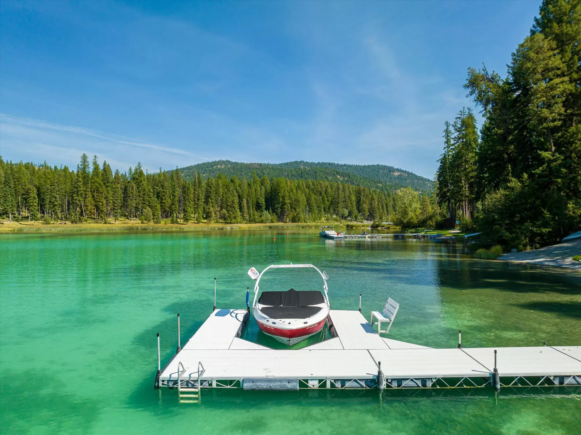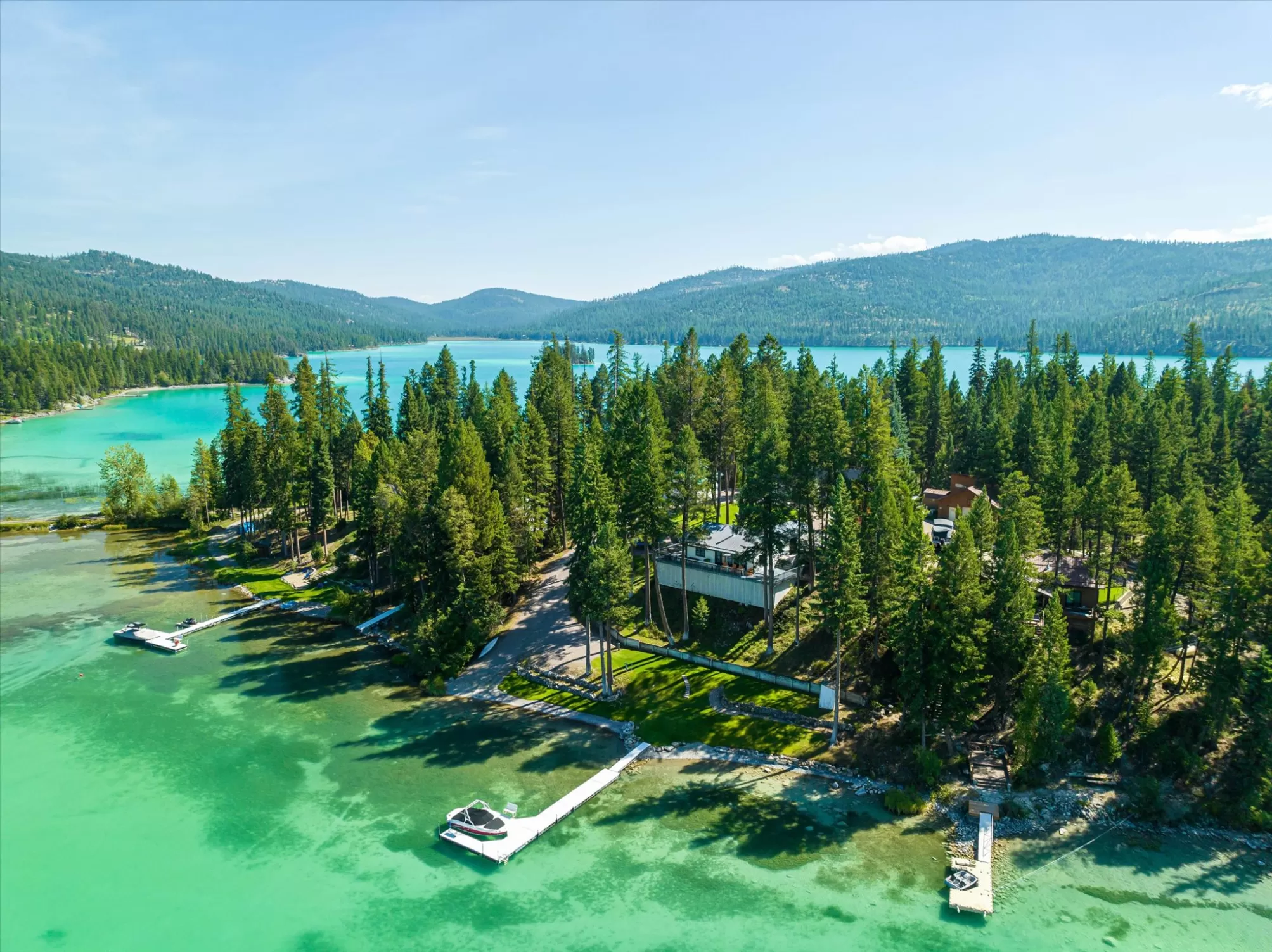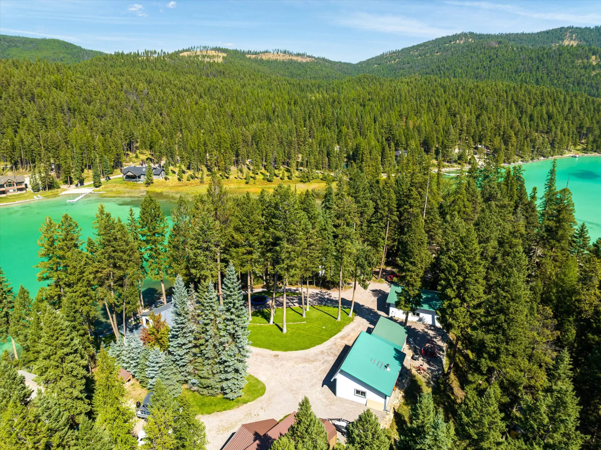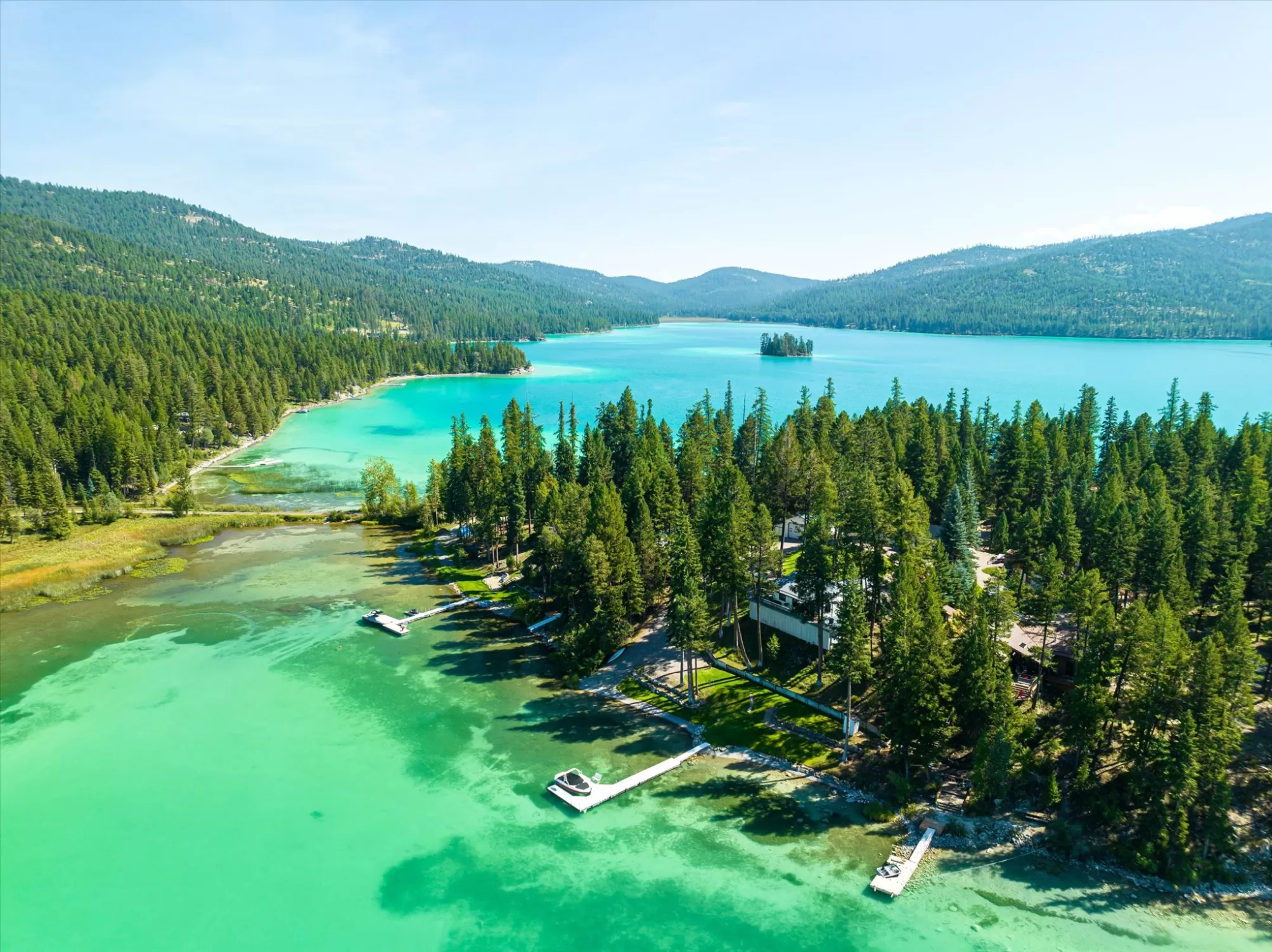 Embrace the rare opportunity to own a Montana Cabin Retreat, on the pristine shores of Ashley Lake AND on the Island with morning and afternoon sun exposure! Set on 1.10 acres with 138 feet of prime lake frontage, the property is comprised of 2 separately deeded lots, offering investment and long term value. The 3-bedroom, 2-bath cabin is all about lake life. The grounds are nicely landscaped and offer a sense of privacy with a deck area perfect for outdoor living. Two outbuildings provide extra room and flexibility, including a shop with a garage and a two car garage with a bunk room along with plenty of parking for overflow guests. A private boat launch and dock offer effortless access to the turquoise waters of this gorgeous mountain lake. Fill your summer days with boating, fishing and evening sunsets that bring peace and tranquility to your own Ashley Lake sanctuary, a place where you wish summer would never end. Listing agent is related to sellers.