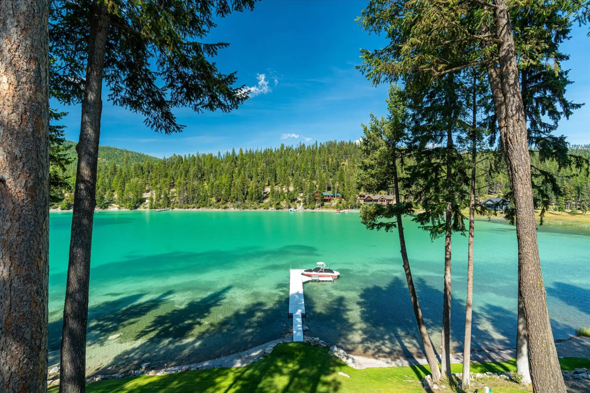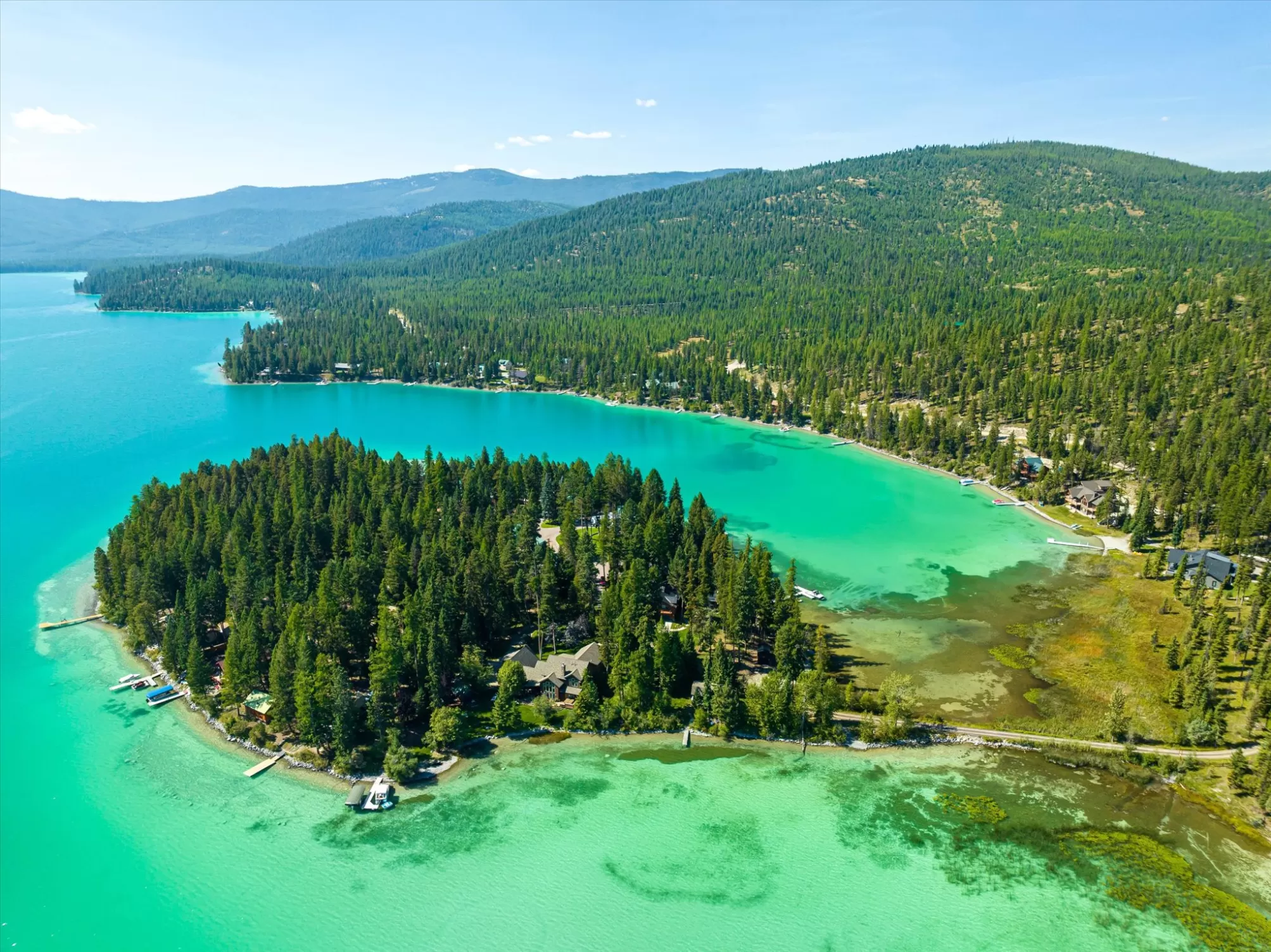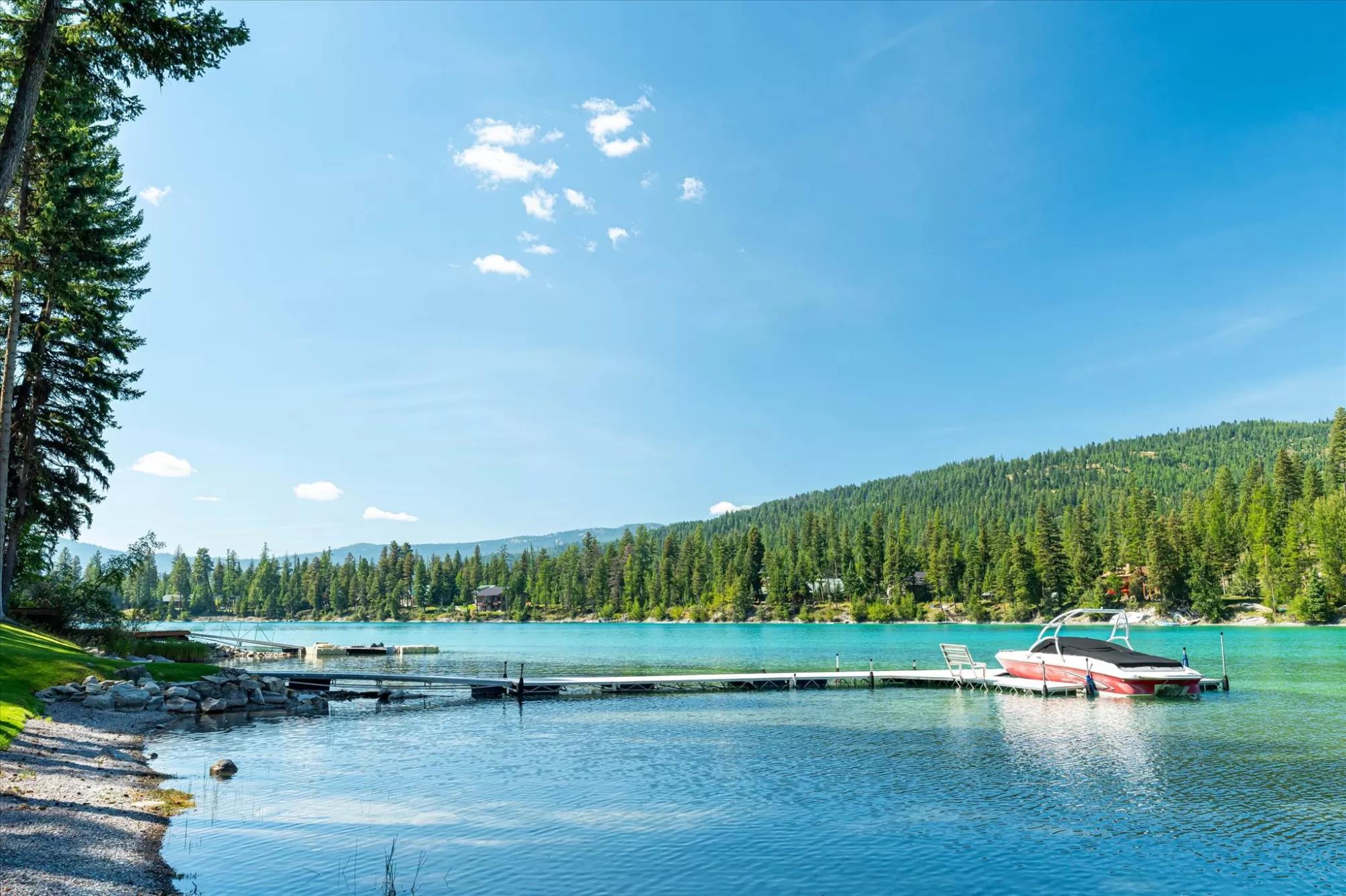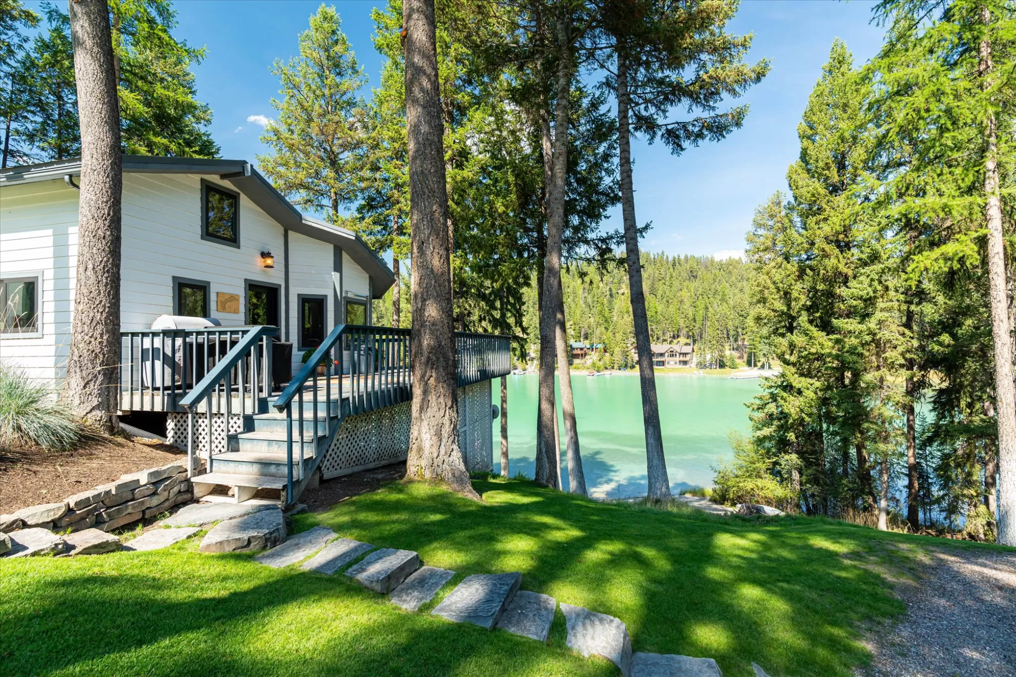 Embrace the rare opportunity to own a Montana Cabin Retreat, on the pristine shores of Ashley Lake AND on the Island with morning and afternoon sun exposure! Set on 1.10 acres with 138 feet of prime lake frontage, the property is comprised of 2 separately deeded lots, offering investment and long term value. The 3-bedroom, 2-bath cabin is all about lake life. The grounds are nicely landscaped and offer a sense of privacy with a deck area perfect for outdoor living. Two outbuildings provide extra room and flexibility, including a shop with a garage and a two car garage with a bunk room along with plenty of parking for overflow guests. A private boat launch and dock offer effortless access to the turquoise waters of this gorgeous mountain lake. Fill your summer days with boating, fishing and evening sunsets that bring peace and tranquility to your own Ashley Lake sanctuary, a place where you wish summer would never end. Listing agent is related to sellers.