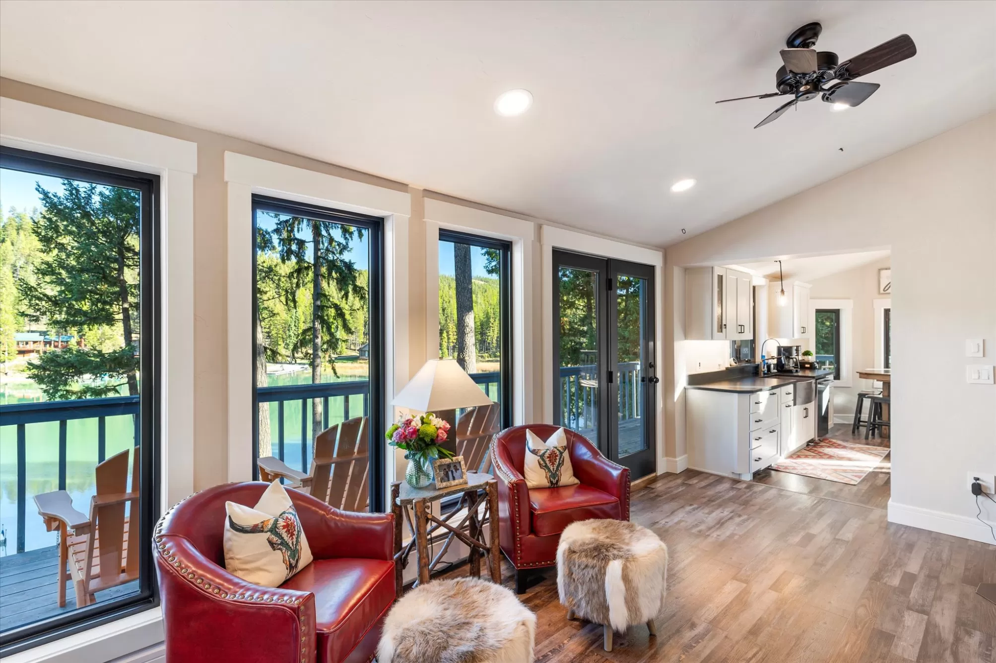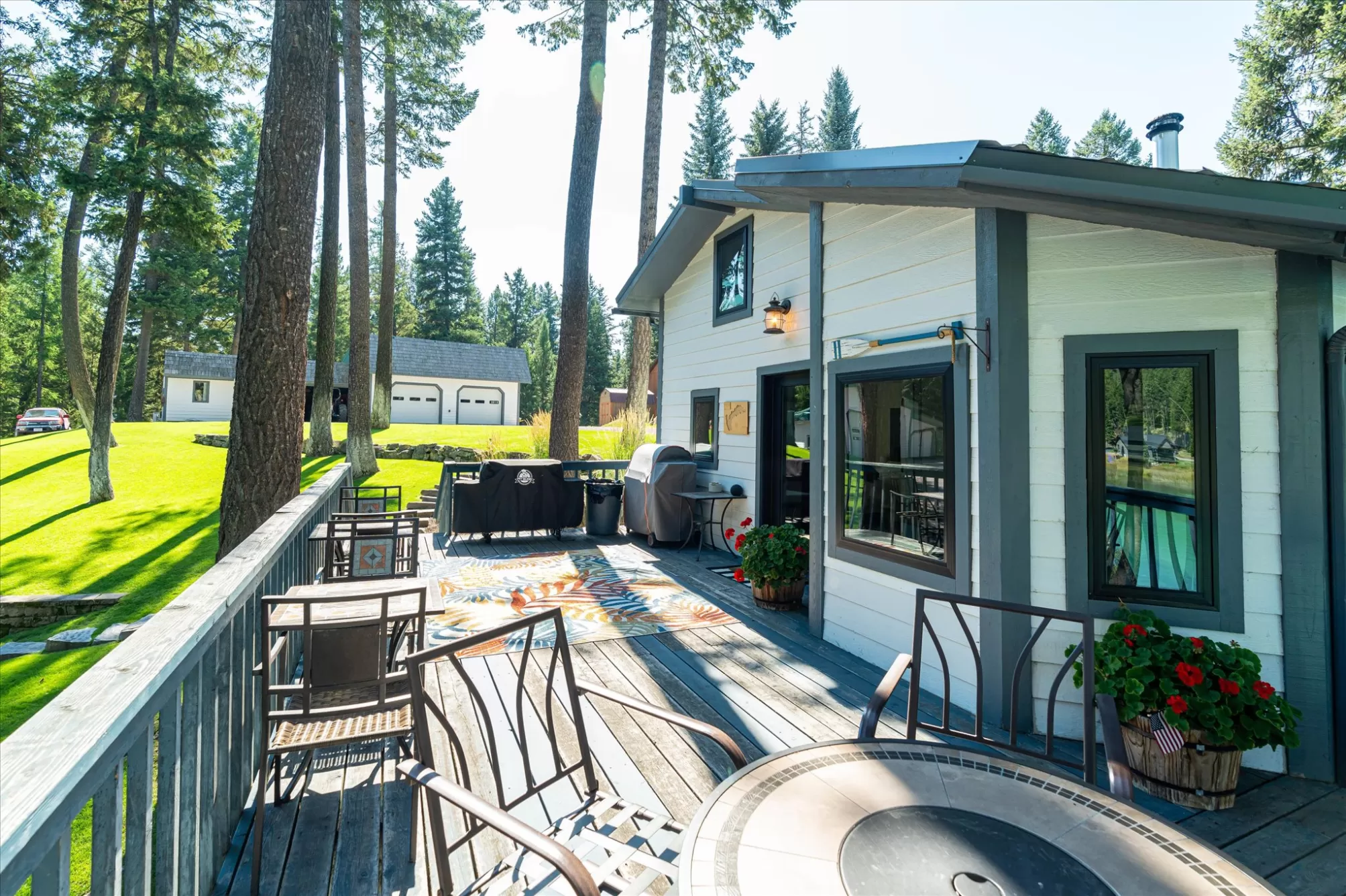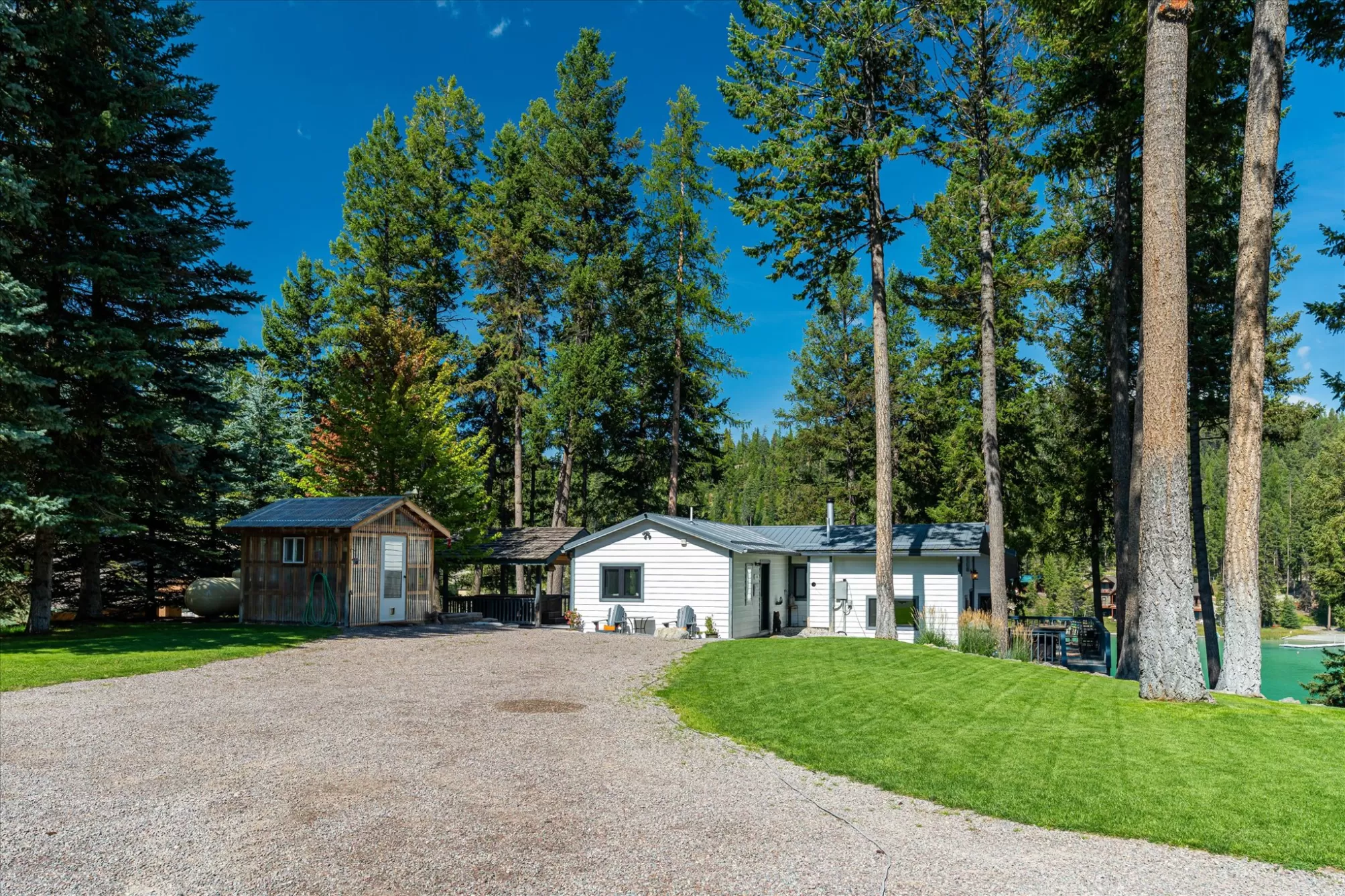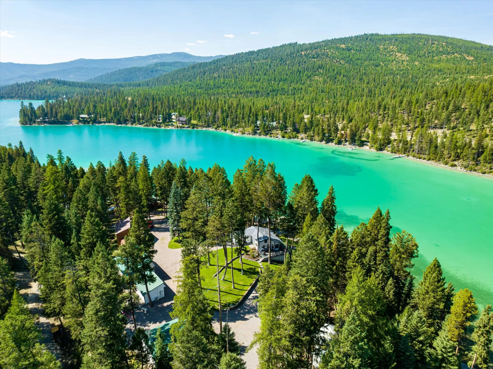 Embrace the rare opportunity to own a Montana Cabin Retreat, on the pristine shores of Ashley Lake AND on the Island with morning and afternoon sun exposure! Set on 1.10 acres with 138 feet of prime lake frontage, the property is comprised of 2 separately deeded lots, offering investment and long term value. The 3-bedroom, 2-bath cabin is all about lake life. The grounds are nicely landscaped and offer a sense of privacy with a deck area perfect for outdoor living. Two outbuildings provide extra room and flexibility, including a shop with a garage and a two car garage with a bunk room along with plenty of parking for overflow guests. A private boat launch and dock offer effortless access to the turquoise waters of this gorgeous mountain lake. Fill your summer days with boating, fishing and evening sunsets that bring peace and tranquility to your own Ashley Lake sanctuary, a place where you wish summer would never end. Listing agent is related to sellers.