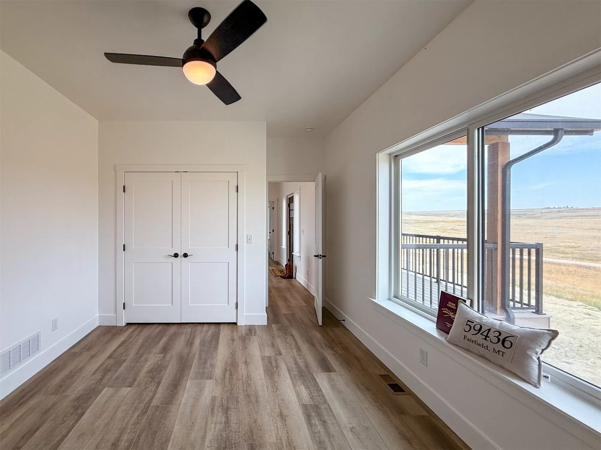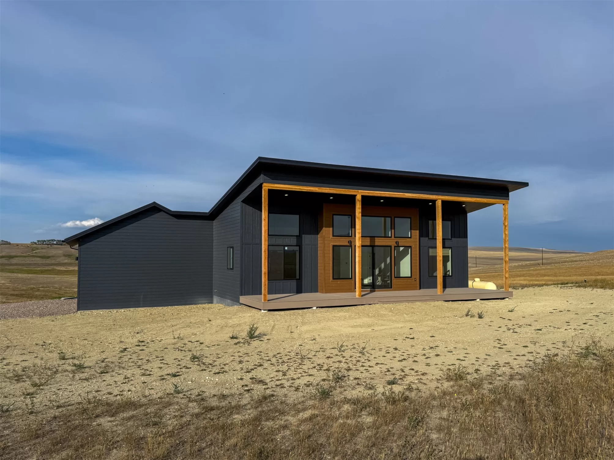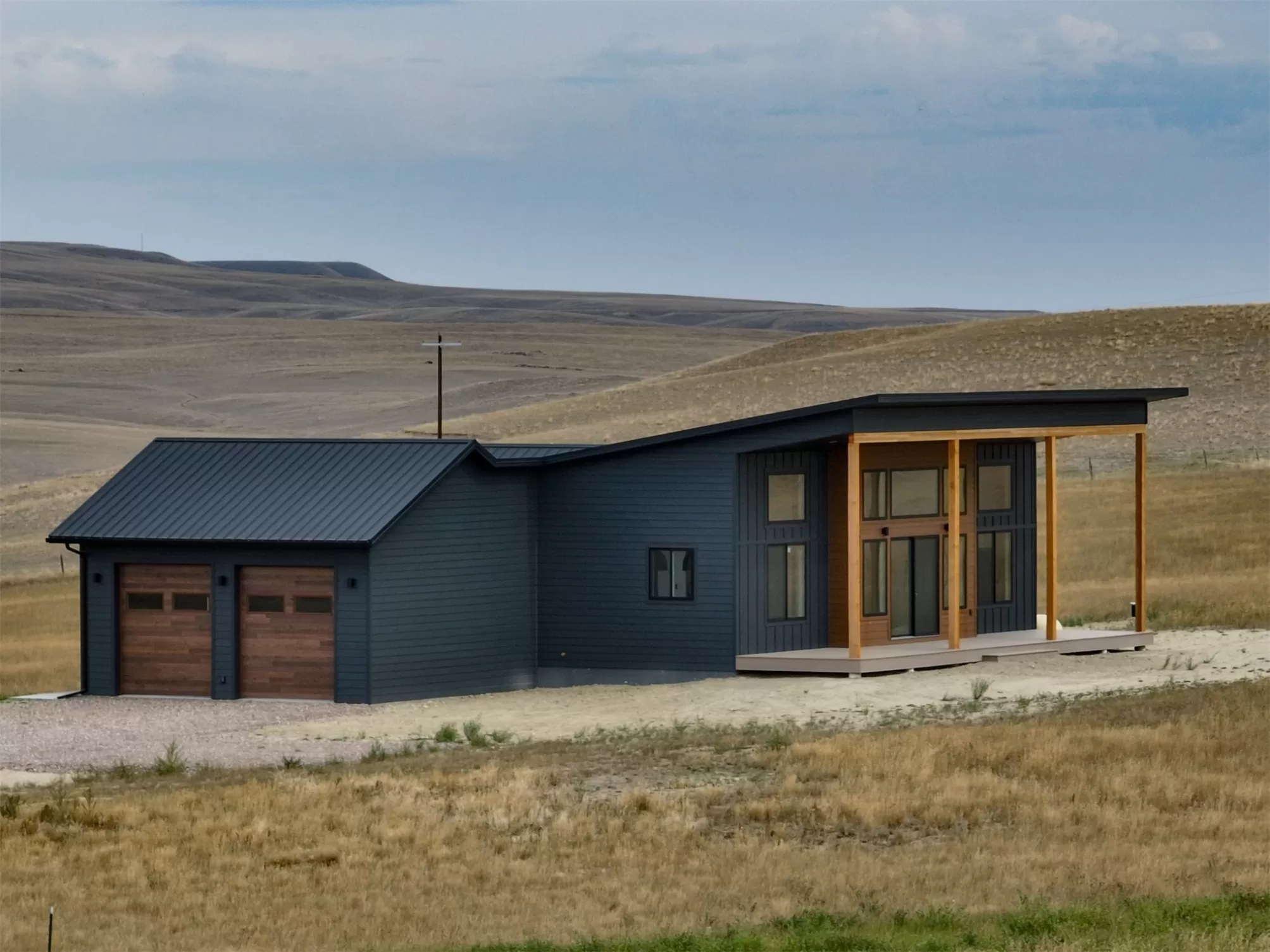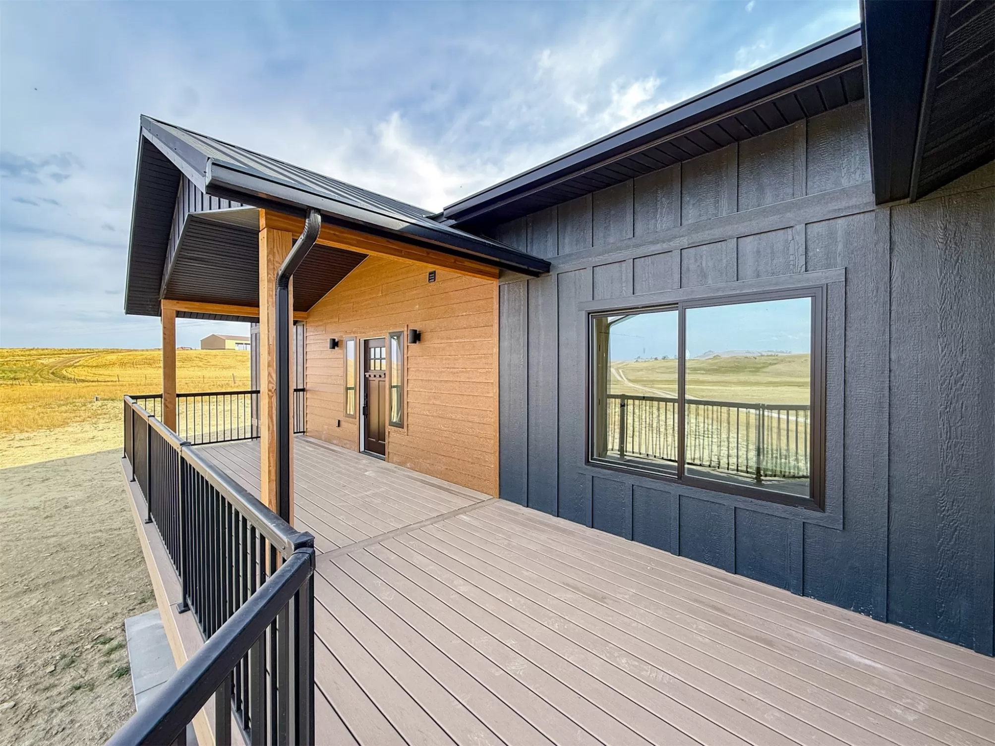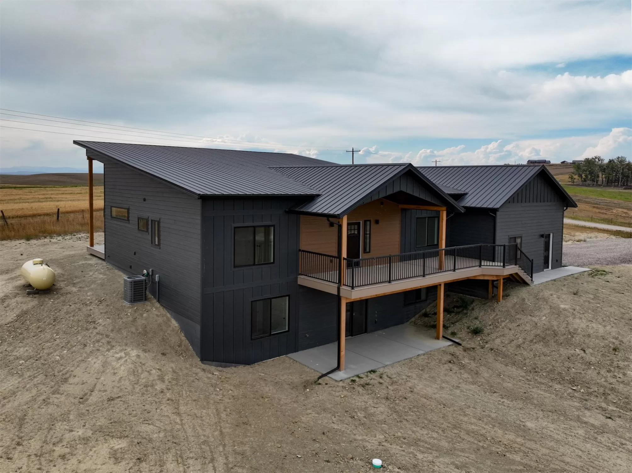 Come home to a high style NEW CONSTRUCTION home that showcases modern elements, along with classic lodge features. The house sits on over 10 acres with Rocky Mountain Front and territorial views which can be seen from the enormous windows or from one of the 3 covered decks; two of which are Trex. Inside, find a high-ceilinged, open concept great room to include a kitchen with a huge eating island, stainless appliances, handsome cabinetry and black granite countertops. The primary bedroom has a large tile shower, plus a double sink vanity. There are three bedrooms on the main floor and two more are in the lower level. The walk-out lower level has 9' ceilings and it boasts a versatile recreation room and another full bathroom. All the finishes, from lighting, hardware, flooring, doors, appliances are high-end and tasteful. You'll enjoy the attached 2 car garage that leads to a mud room. NO COVENANTS, so bring horses, chickens, cows, goats or pigs and utilize it how YOU like! It is located with close proximity to hunting, fishing, hiking and to the small rural towns of Fairfield, Augusta and Choteau. It is a little over 30 minutes to Great Falls, so is easily commutable. Garage is sheet-rocked and has gas pumped to it, so can be heated. 12 GPM well and septic. Central air and forced air propane. Home is 3400' feet with 5 bedrooms and 3 full bathrooms. With the walk-out basement and the way plumbing is set up, it is a prime candidate for creating two full and separate living areas on each floor. Separate listing includes house and a to-be-built 28 X 32' shop.