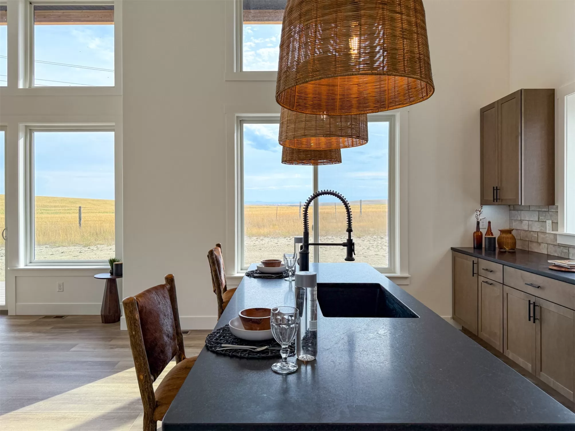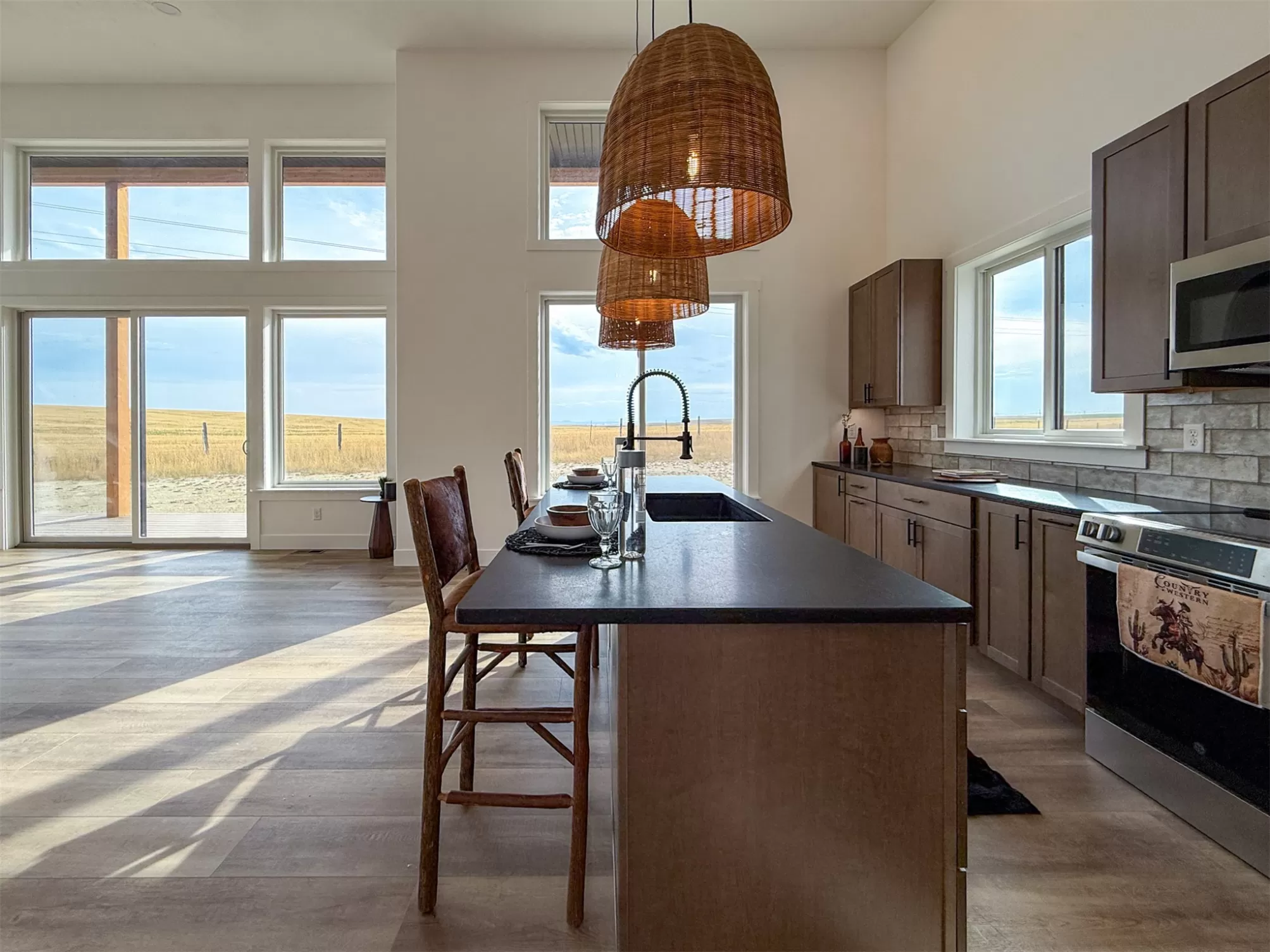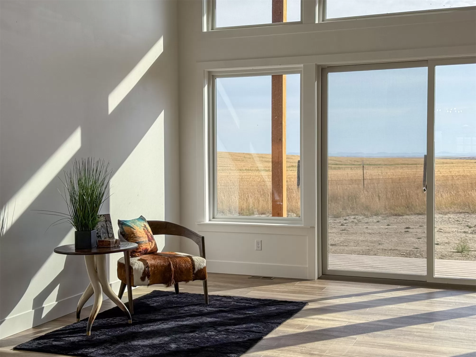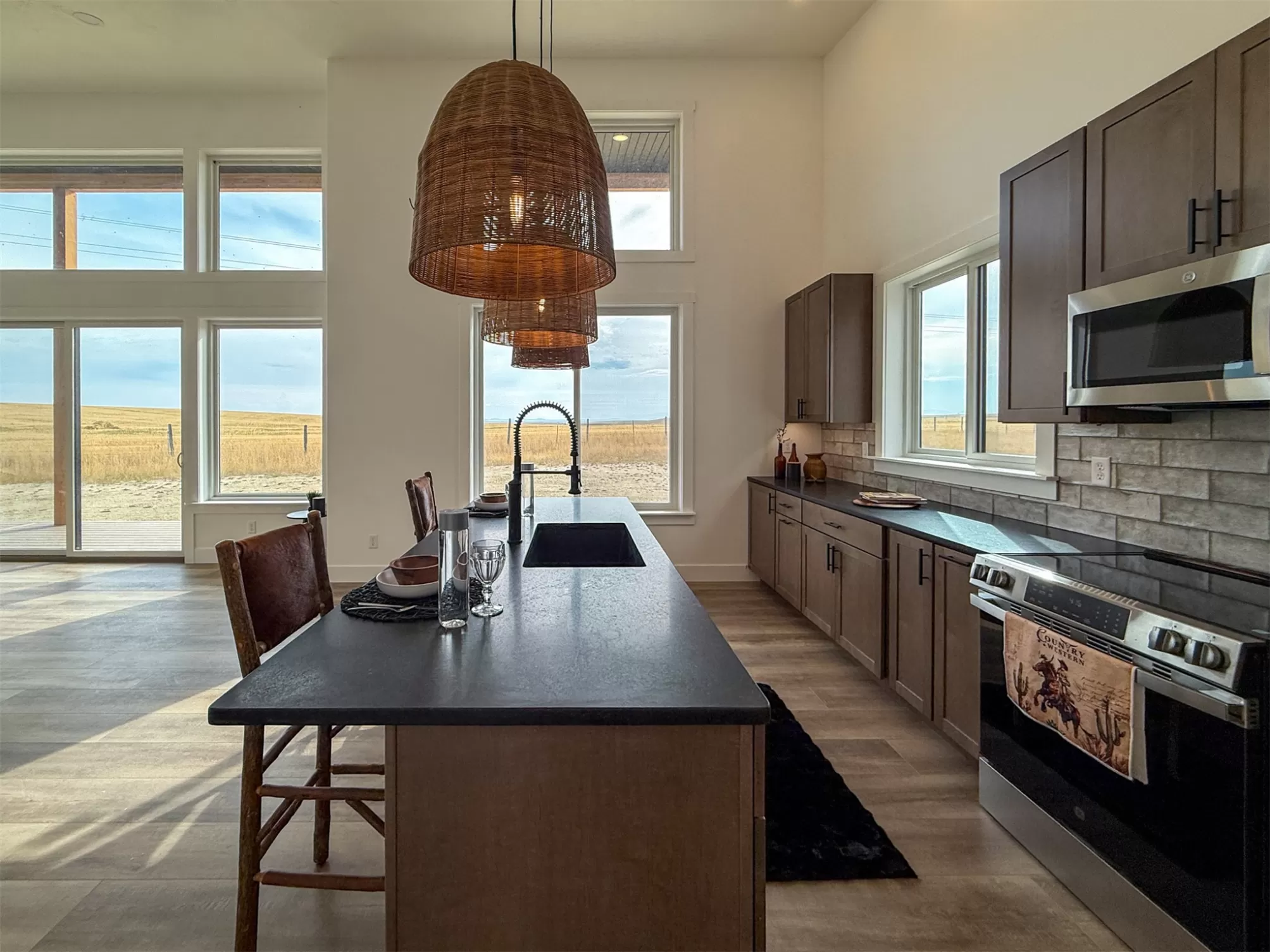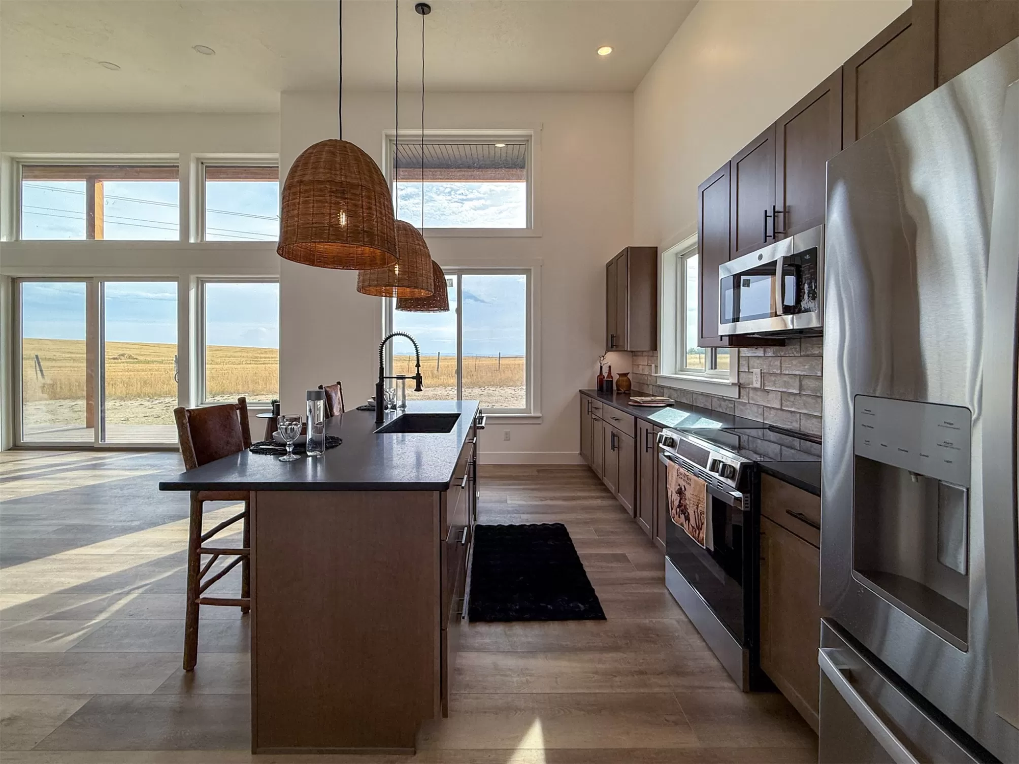 Come home to a high style NEW CONSTRUCTION home that showcases modern elements, along with classic lodge features. The house sits on over 10 acres with Rocky Mountain Front and territorial views which can be seen from the enormous windows or from one of the 3 covered decks; two of which are Trex. Inside, find a high-ceilinged, open concept great room to include a kitchen with a huge eating island, stainless appliances, handsome cabinetry and black granite countertops. The primary bedroom has a large tile shower, plus a double sink vanity. There are three bedrooms on the main floor and two more are in the lower level. The walk-out lower level has 9' ceilings and it boasts a versatile recreation room and another full bathroom. All the finishes, from lighting, hardware, flooring, doors, appliances are high-end and tasteful. You'll enjoy the attached 2 car garage that leads to a mud room. NO COVENANTS, so bring horses, chickens, cows, goats or pigs and utilize it how YOU like! It is located with close proximity to hunting, fishing, hiking and to the small rural towns of Fairfield, Augusta and Choteau. It is a little over 30 minutes to Great Falls, so is easily commutable. Garage is sheet-rocked and has gas pumped to it, so can be heated. 12 GPM well and septic. Central air and forced air propane. Home is 3400' feet with 5 bedrooms and 3 full bathrooms. With the walk-out basement and the way plumbing is set up, it is a prime candidate for creating two full and separate living areas on each floor. Separate listing includes house and a to-be-built 28 X 32' shop.