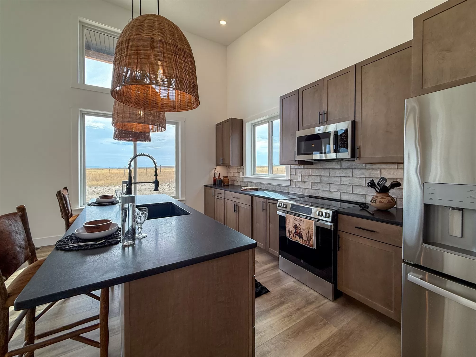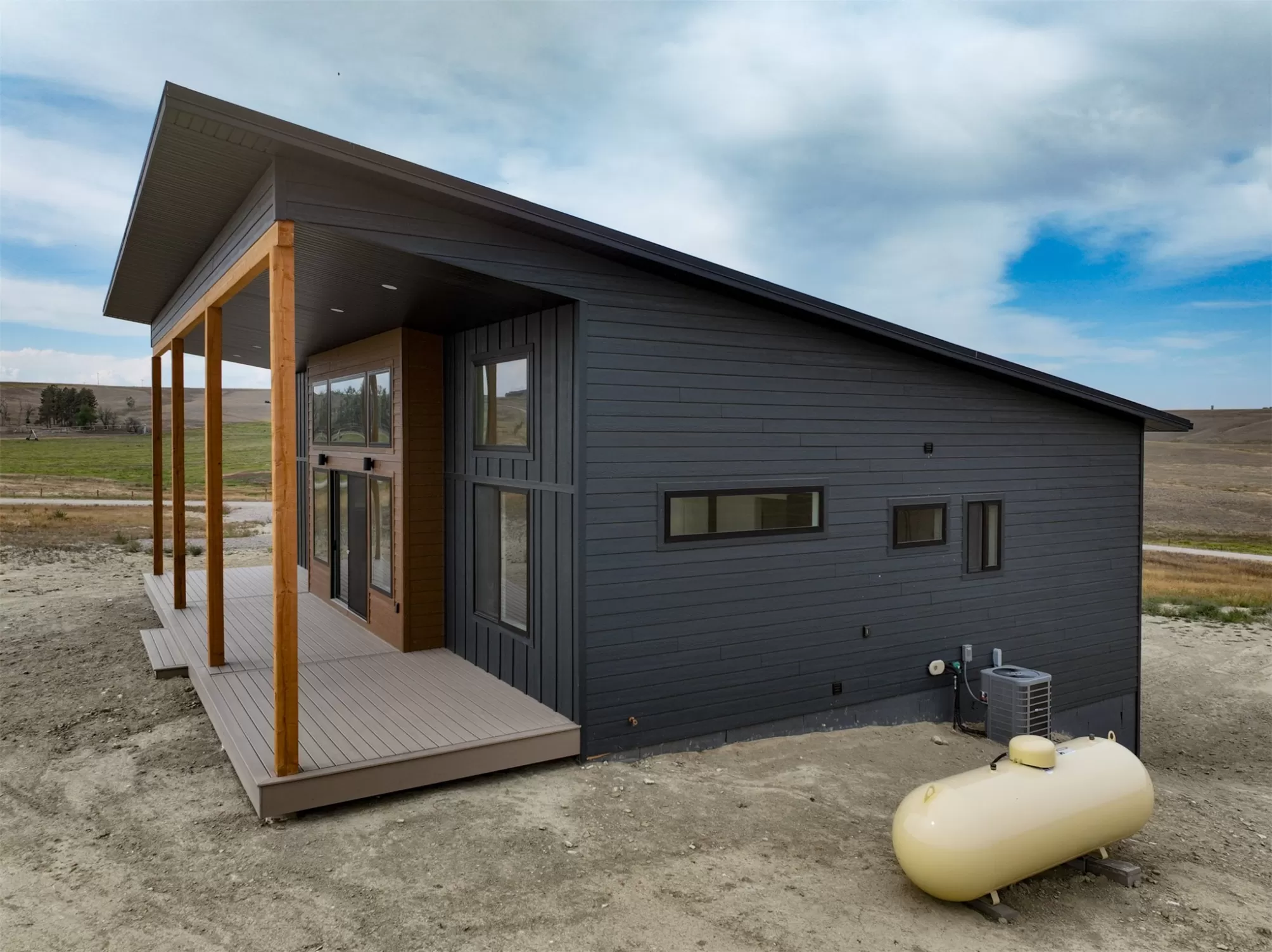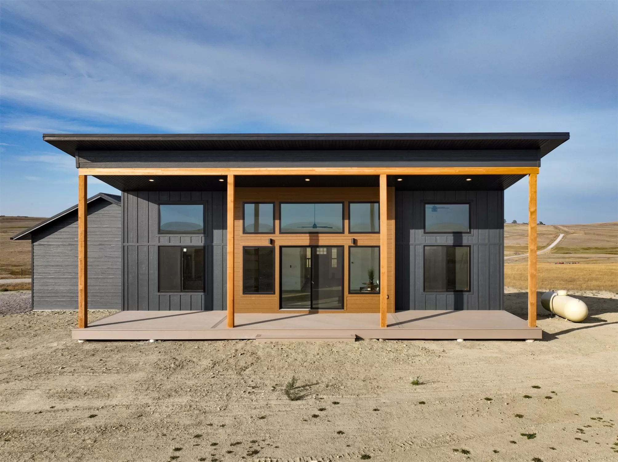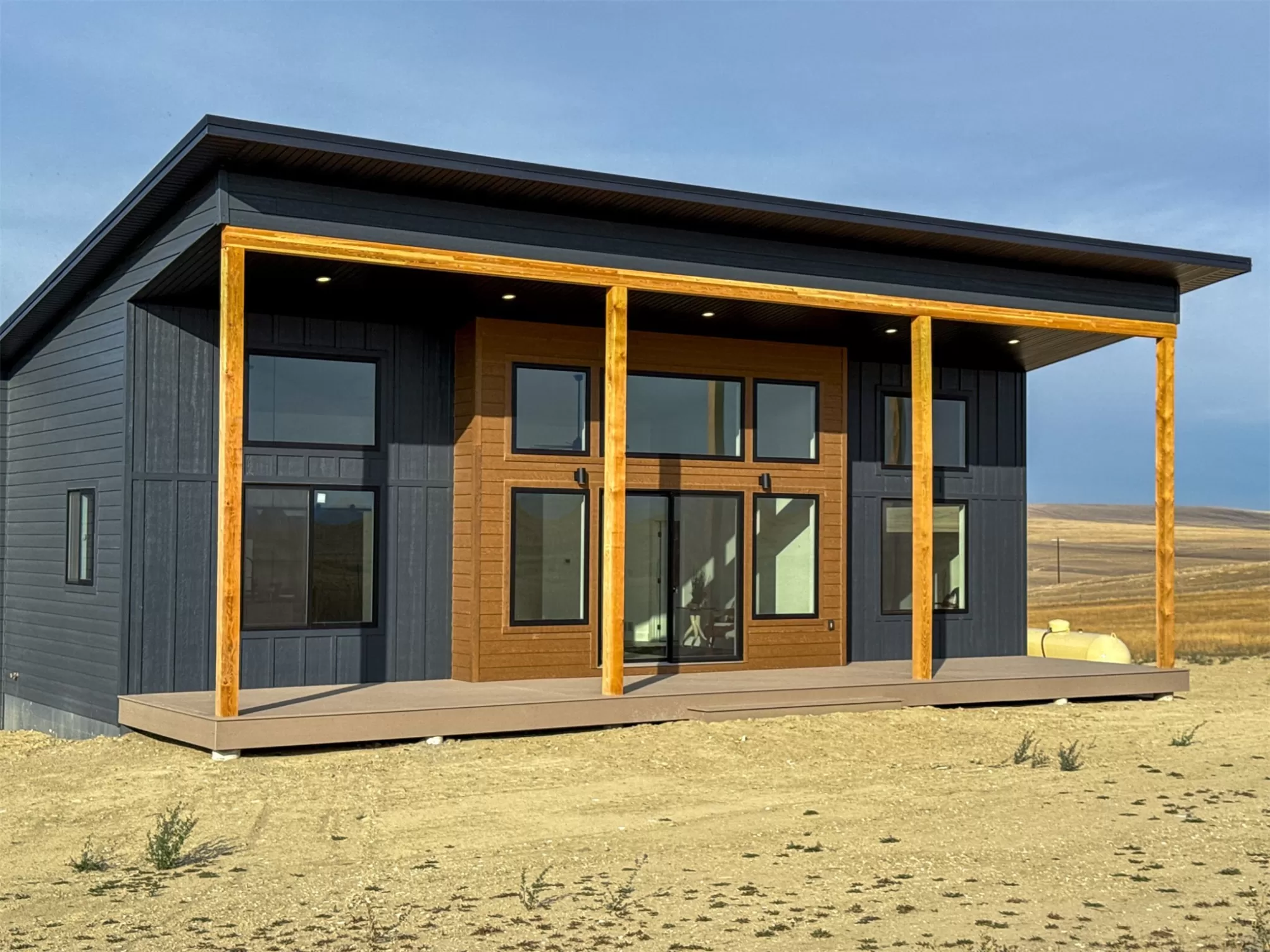 Come home to a high style NEW CONSTRUCTION home that showcases modern elements, along with classic lodge features. The house sits on over 10 acres with Rocky Mountain Front and territorial views which can be seen from the enormous windows or from one of the 3 covered decks; two of which are Trex. Inside, find a high-ceilinged, open concept great room to include a kitchen with a huge eating island, stainless appliances, handsome cabinetry and black granite countertops. The primary bedroom has a large tile shower, plus a double sink vanity. There are three bedrooms on the main floor and two more are in the lower level. The walk-out lower level has 9' ceilings and it boasts a versatile recreation room and another full bathroom. All the finishes, from lighting, hardware, flooring, doors, appliances are high-end and tasteful. You'll enjoy the attached 2 car garage that leads to a mud room. NO COVENANTS, so bring horses, chickens, cows, goats or pigs and utilize it how YOU like! It is located with close proximity to hunting, fishing, hiking and to the small rural towns of Fairfield, Augusta and Choteau. It is a little over 30 minutes to Great Falls, so is easily commutable. Garage is sheet-rocked and has gas pumped to it, so can be heated. 12 GPM well and septic. Central air and forced air propane. Home is 3400' feet with 5 bedrooms and 3 full bathrooms. With the walk-out basement and the way plumbing is set up, it is a prime candidate for creating two full and separate living areas on each floor. Separate listing includes house and a to-be-built 28 X 32' shop.