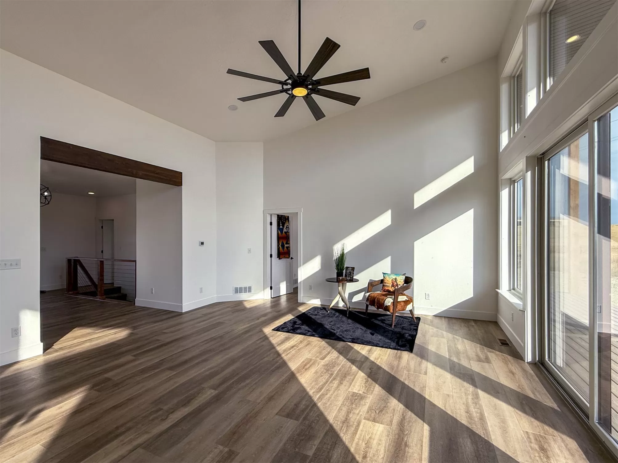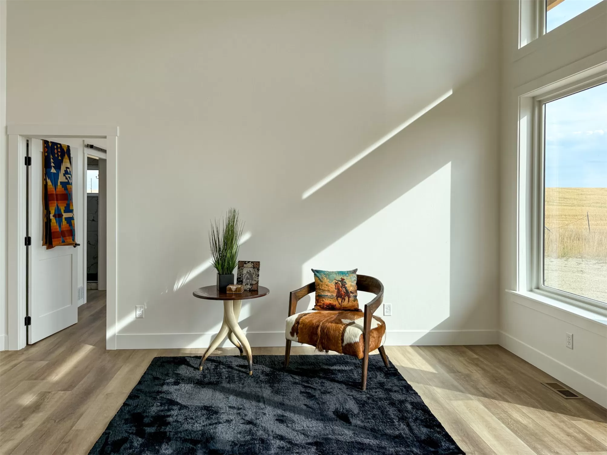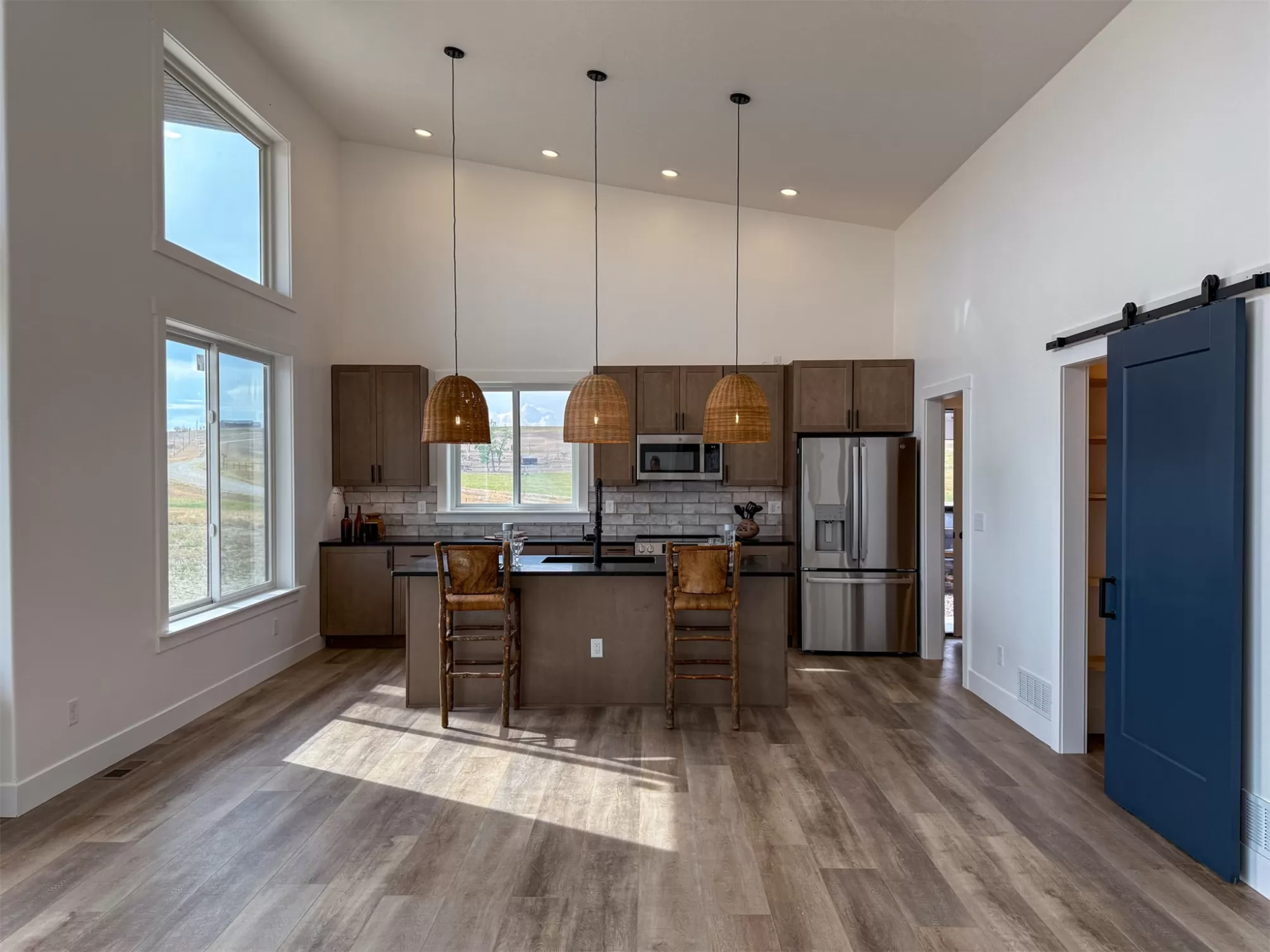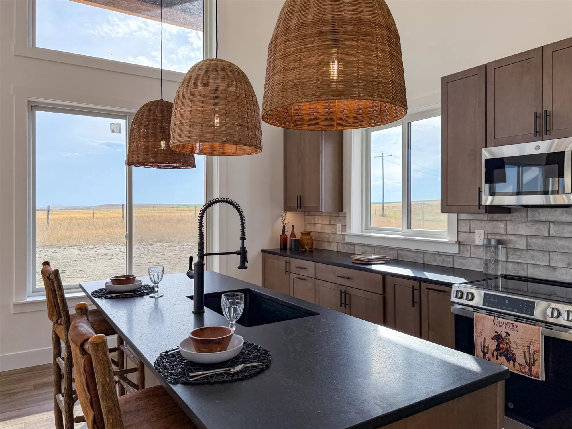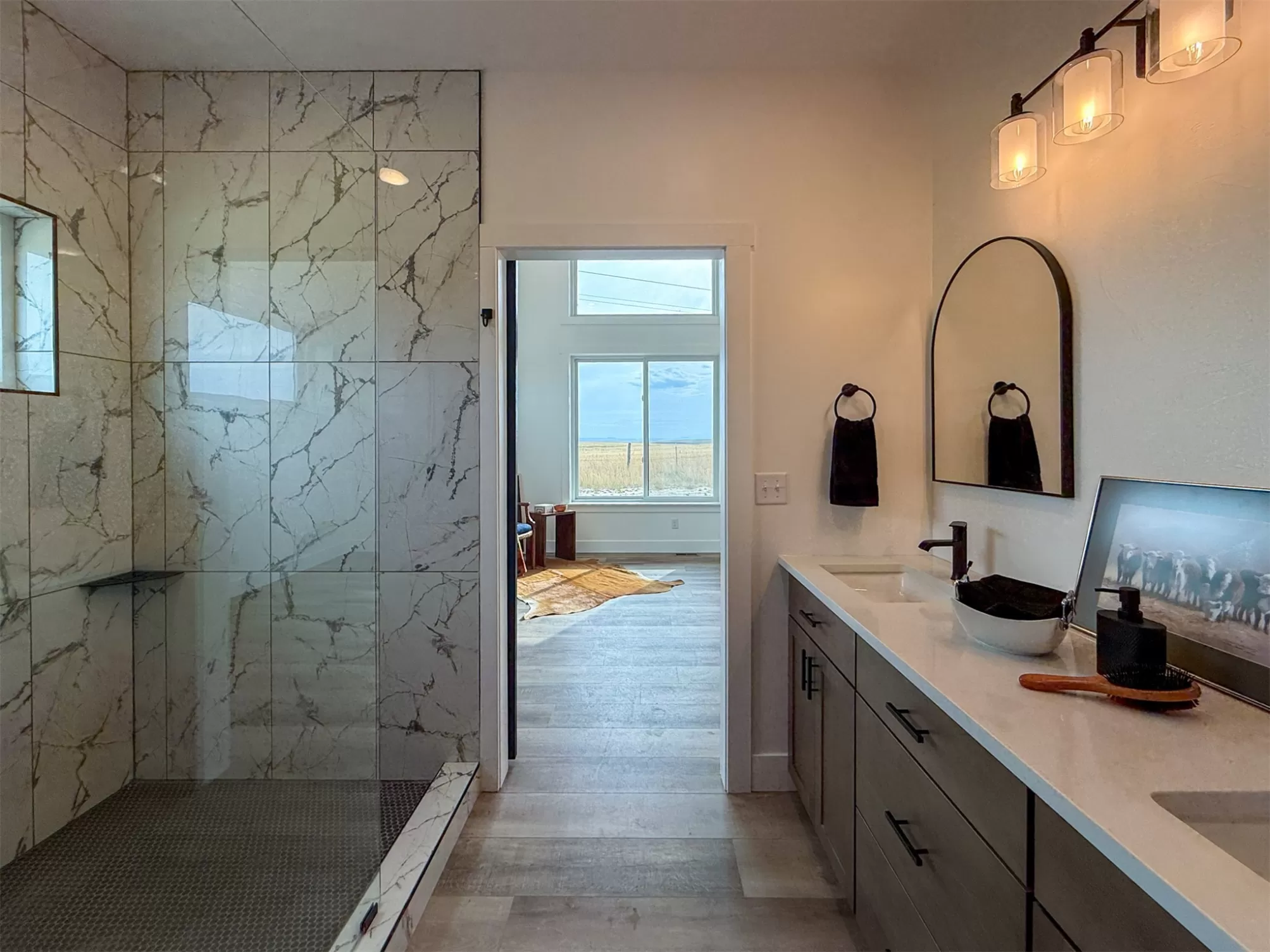 Come home to a high style NEW CONSTRUCTION home that showcases modern elements, along with classic lodge features. The house sits on over 10 acres with Rocky Mountain Front and territorial views which can be seen from the enormous windows or from one of the 3 covered decks; two of which are Trex. Inside, find a high-ceilinged, open concept great room to include a kitchen with a huge eating island, stainless appliances, handsome cabinetry and black granite countertops. The primary bedroom has a large tile shower, plus a double sink vanity. There are three bedrooms on the main floor and two more are in the lower level. The walk-out lower level has 9' ceilings and it boasts a versatile recreation room and another full bathroom. All the finishes, from lighting, hardware, flooring, doors, appliances are high-end and tasteful. You'll enjoy the attached 2 car garage that leads to a mud room. NO COVENANTS, so bring horses, chickens, cows, goats or pigs and utilize it how YOU like! It is located with close proximity to hunting, fishing, hiking and to the small rural towns of Fairfield, Augusta and Choteau. It is a little over 30 minutes to Great Falls, so is easily commutable. Garage is sheet-rocked and has gas pumped to it, so can be heated. 12 GPM well and septic. Central air and forced air propane. Home is 3400' feet with 5 bedrooms and 3 full bathrooms. With the walk-out basement and the way plumbing is set up, it is a prime candidate for creating two full and separate living areas on each floor. Separate listing includes house and a to-be-built 28 X 32' shop.