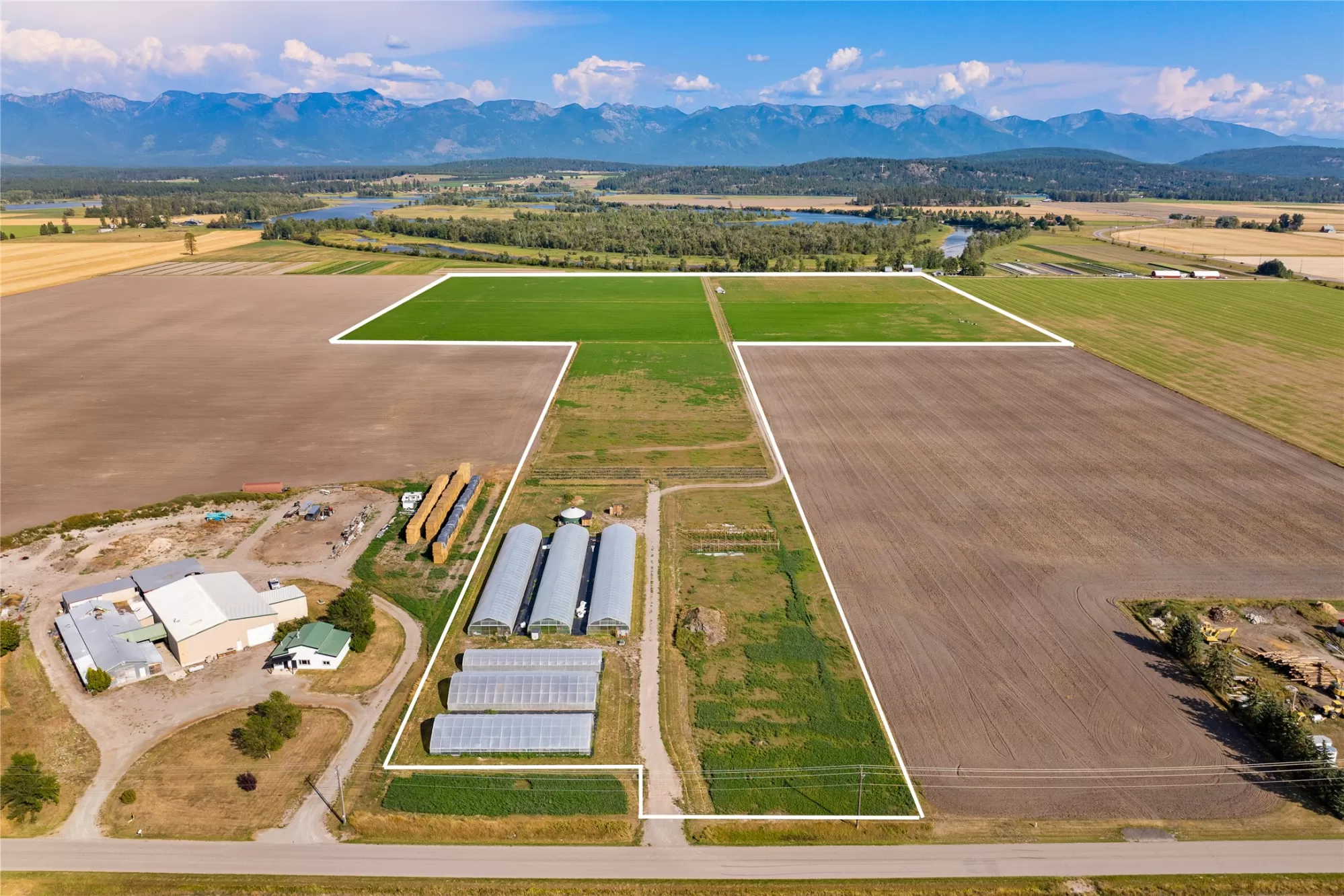 50 Acres on Lower Valley Road w/ 6 Greenhouses & a Yurt! Embrace self-sufficiency & rural tranquility on this expansive property.With 360° mountain views, Flathead Lake to the south & an idyllic level landscape, this is a rare opportunity to own versatile land with outstanding agricultural & recreational potential. Greenhouses are climate controlled, perfect for wholesale, market gardening or seed starting.The Yurt offers 2 bedrooms, dining/living space plus outdoor kitchen & laundry/shower room, perfect to live in while building your dream home or employee housing. The property is sub-irrigated, ideal for hay or crops. Grow food, start a hobby farm, or create a private retreat—this land is a blank canvas. A sizeable portion lies in the 100-year floodplain, suited for conservation or ag uses, while the area near Lower Valley Rd is outside the floodplain, offering potential for residential or commercial projects. Please see documents for septic site evaluation from Flathead County. Property has 5 fenced pastures for livestock. Posts for additional barn included, but hoop frame is excluded. Pasture corner braces made tall to allow for future high fence to keep wildlife out for crop protection. Seller willing to also sell package of 20 cows separte from property sale.