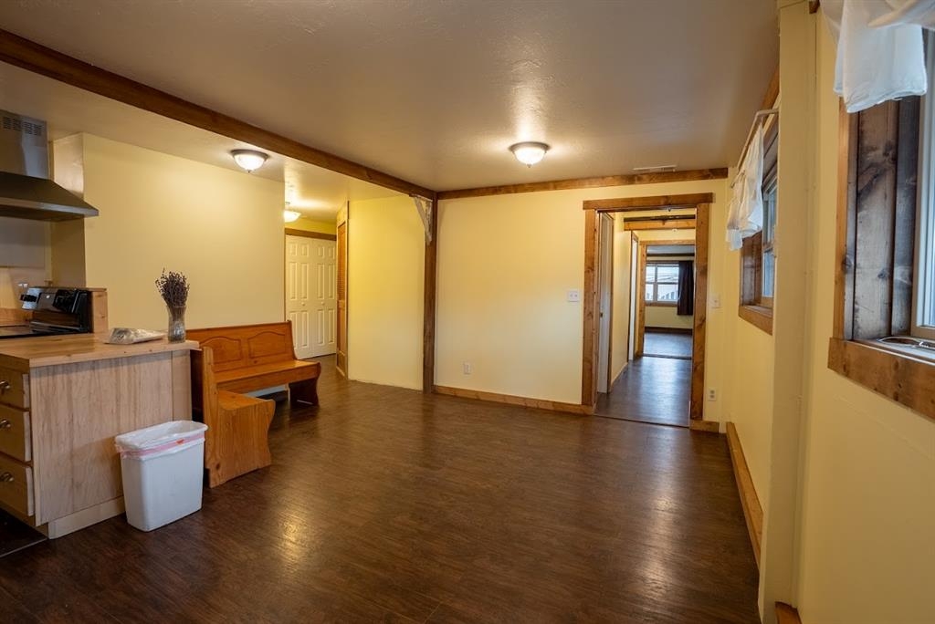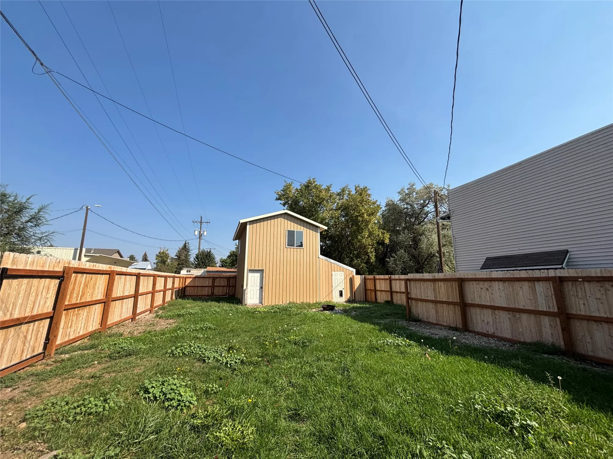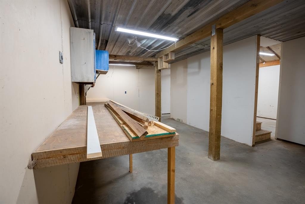 This center of town location has walking distance, stores, schools,restaurants and basic services. This home has had many upgrades with 2 bedrooms and 1 non conforming bedroom. The newly built wood perimeter fence offers privacy for the large lawn courtyard between the shop and home. The large shop has separate access off the side alley with concrete entrance to the parking garage. This shop has potential for many uses. The community sports complex is very close by and services the community school sports programs.