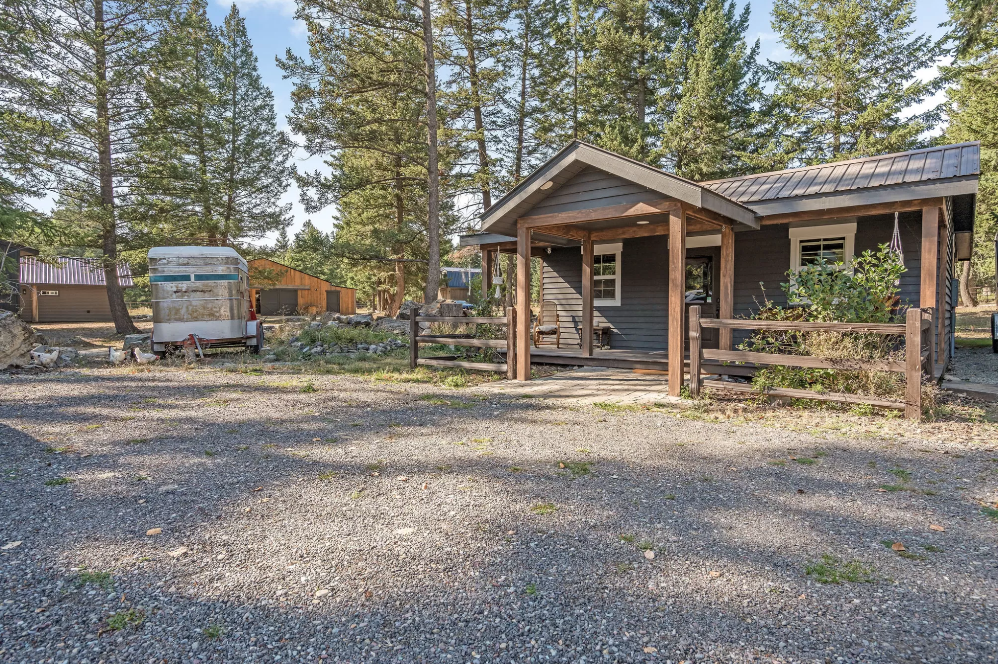 Escape to your own Boutique Montana estate with private guest cabins nestled on 3 pristine acres in breathtaking Flathead Valley. The main residence exudes rustic elegance with warm wood finishes. It has heated sidewalks, a hot tub off the master and a wrap around deck to enjoy the outdoor space. Four inviting guest cabins create the perfect setup for hosting loved ones, private retreats, or possible vacation rental income. The fifth cabin is used as a studio and yet another cabin has a sauna and workout area. The 30x40 pole barn built in 2025 has one side set up as a green house and the other side with 3 horse stalls. All of this is just a short distance from Flathead Lake, Glacier National Park, and Whitefish Mountain Resort. This getaway offers the ideal balance of seclusion and convenience. Whether you’re seeking a peaceful sanctuary, an adventure basecamp, or a charming investment opportunity, this property embodies the true Montana lifestyle. Take a look at the features sheet!