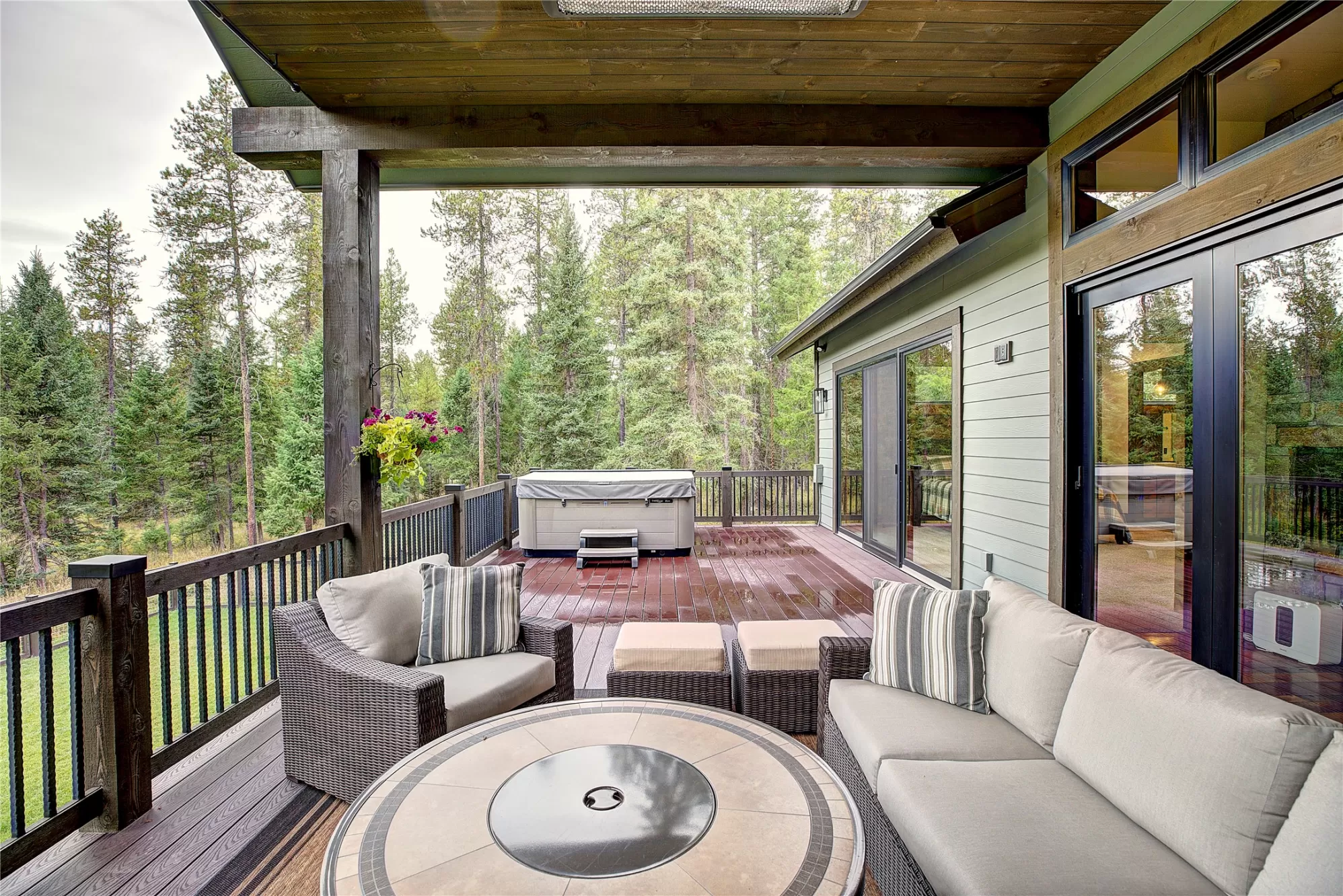 Just minutes from downtown Whitefish, this beautiful mountain home features over 4,000 square feet of exquisite architecture sure to please. The main level great room includes a floor to ceiling natural stone fireplace, circle sawn floors, Sonos sound system and a folding door system bringing the outdoors in. The main level primary bedroom features an inviting fireplace, spa like bathroom with heated floors, large walk in shower and oversized walk in closet. The kitchen offers high end stainless appliances, an oversized island and custom cabinets. The dining room offers panoramic views from every angle. An outdoor covered deck features overhead heaters a hot tub and ample room to relax and breathe in the fresh mountain air. A large rear fenced yard surrounded by tall pines offers an abundance of privacy. The lower level includes 4 ample bedrooms, 2 bathrooms, storage, a recreation room with fireplace and a walk out patio. A large 3 car heated garage provides room for all the toys.
