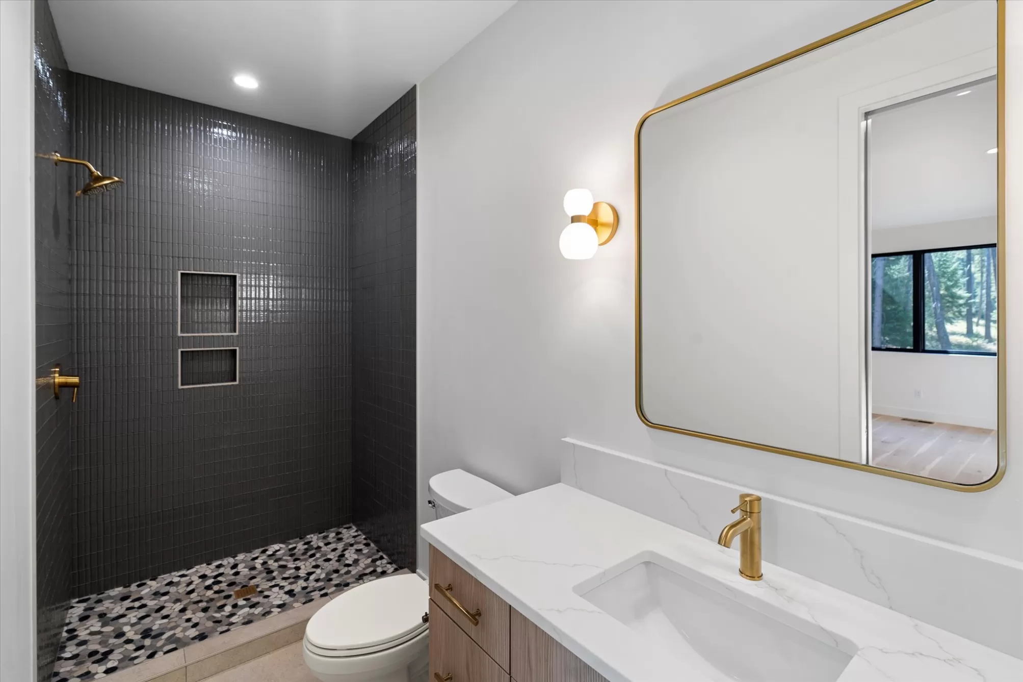 Immerse yourself in this exquisite custom home, located in the highly desirable neighborhood of Whitefish Hills Village! Sitting on 2.24 peaceful acres, this brand-new 6BD/4.5BA, 3,867 sq/ft home is an entertainer's dream, centered around open concept living and high-end design, all on a quiet cul-de-sac street. As you make your way inside, take in the well appointed kitchen (+ butler’s pantry), large bedrooms, & high ceilings. Experience the pinnacle of Indoor-outdoor living in this bright and airy residence, boasting engineered white oak hardwood flooring, light cabinetry + open shelving, and large, glass doors that open to the nearly 800 sq/ft upper deck! Outside, you will find privacy while being surrounded by beautiful landscaping and breathtaking views of the meadow & pond. So many beautiful features & finishes, they needed to be listed in the supplemental remarks below. Stay in the loop with updates on Instagram! @45_meadow_view_ct *One of the agents is related to seller. Inside is complete with a gas fireplace and reclaimed white oak mantle which opens to a beautifully appointed kitchen, boasting a high-end 48” Monogram gas range with 6 burners and griddle, open shelving, paneled Monogram refrigerator/freezer, paneled dishwasher, built in microwave, Calcutta Lux Quartz countertops (double thick) and an oversized waterfall kitchen island. In addition, there is also a butler’s pantry conveniently located behind the main kitchen wall, complete with a secondary refrigerator, sink, extensive storage, and a wine fridge. Conveniently located next to the garage is a spacious laundry room, outfitted with double washers and dryers, an additional sink and storage. High-end and durable, there is engineered white oak hardwood flooring on the lower level with a beautiful wool carpet up the stairs and in the bonus room for added comfort. The primary bath features heated bathroom floors, an oversized, stand alone bathtub, and a large, Glazzio porcelain tiled shower with multiple Grohe showerheads (All bathroom showers have glass being installed in the coming weeks). All bathroom showers are tiled with Glazzio porcelain tiles, each with their own color personality but in the same style to bring an overall cohesiveness to the home. Ensuite bathrooms are conveniently located within 4 of the 6 bedrooms (which includes the bonus room), with the remaining two bedrooms sharing a jack and jill bathroom. The second level of the home features two flexible bonus rooms, one with its own private bath attached. The upper level of the home provides versatility, with the ability to function as the perfect playroom/recreation room, workout space, private office, bunk-room, mother-in-law suite, dedicated movie room, or as a secondary primary suite. The upper deck features a covered area with an outdoor fireplace and recessed lighting, this area is equipped with wiring for all of your outdoor entertaining. Beyond the home itself, this convenient location offers both privacy and proximity. You're just minutes from downtown Whitefish and approximately 10 minutes to Kalispell. A neighborhood hiking trail next door as well as throughout the neighborhood, invites exploration of the surrounding landscape, connecting you deeply with nature. Residents of Whitefish Hills Village also have added neighborhood amenities such as, year round boat and/or RV storage, maintained neighborhood walking trails, winter plowing services, and more.