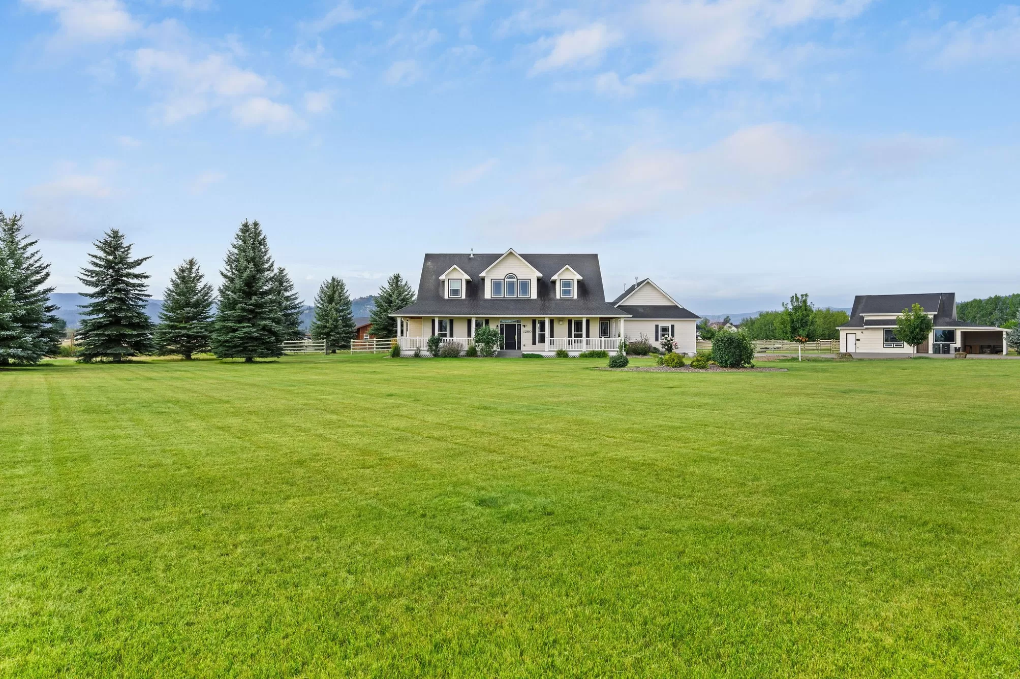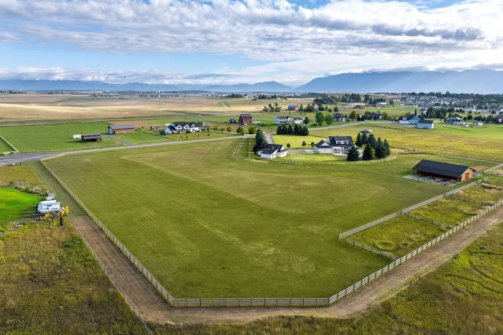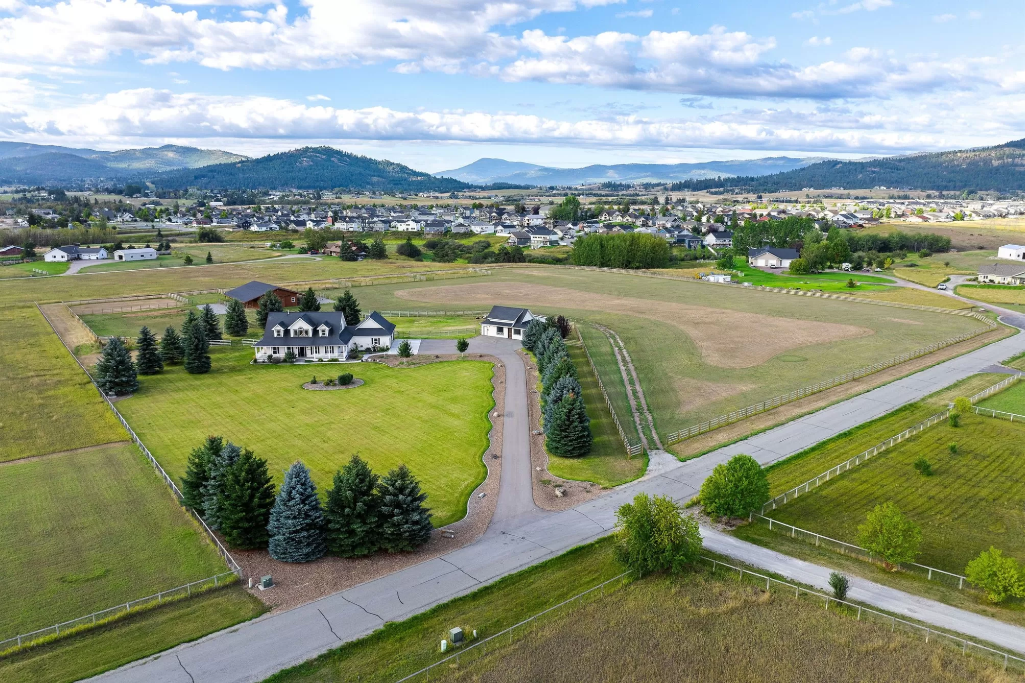Bring your horses! Experience the epitome of equestrian luxury in the heart of northwest Montana. This remarkable 10-acre estate features a beautifully crafted farmhouse that blends elegance and exceptional craftsmanship, offering 4 spacious bedrooms, 4 luxurious bathrooms, and a gourmet kitchen designed for culinary artistry. The property is perfect for entertaining, and boasts a heated pool, oversized hot tub, and abundant outdoor spaces. The guest house complements the estate, and the world-class equestrian facilities and custom fencing put it in a league of it's own. Ideally located just minutes from the renowned Rebecca Farm Equestrian Center, Logan Health Hospital, and Glacier International Airport, this exceptional property offers both luxury and convenience. All information deemed reliable but not guaranteed and should be independently verified by buyers and their agents.