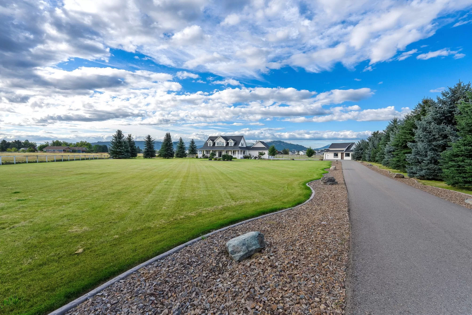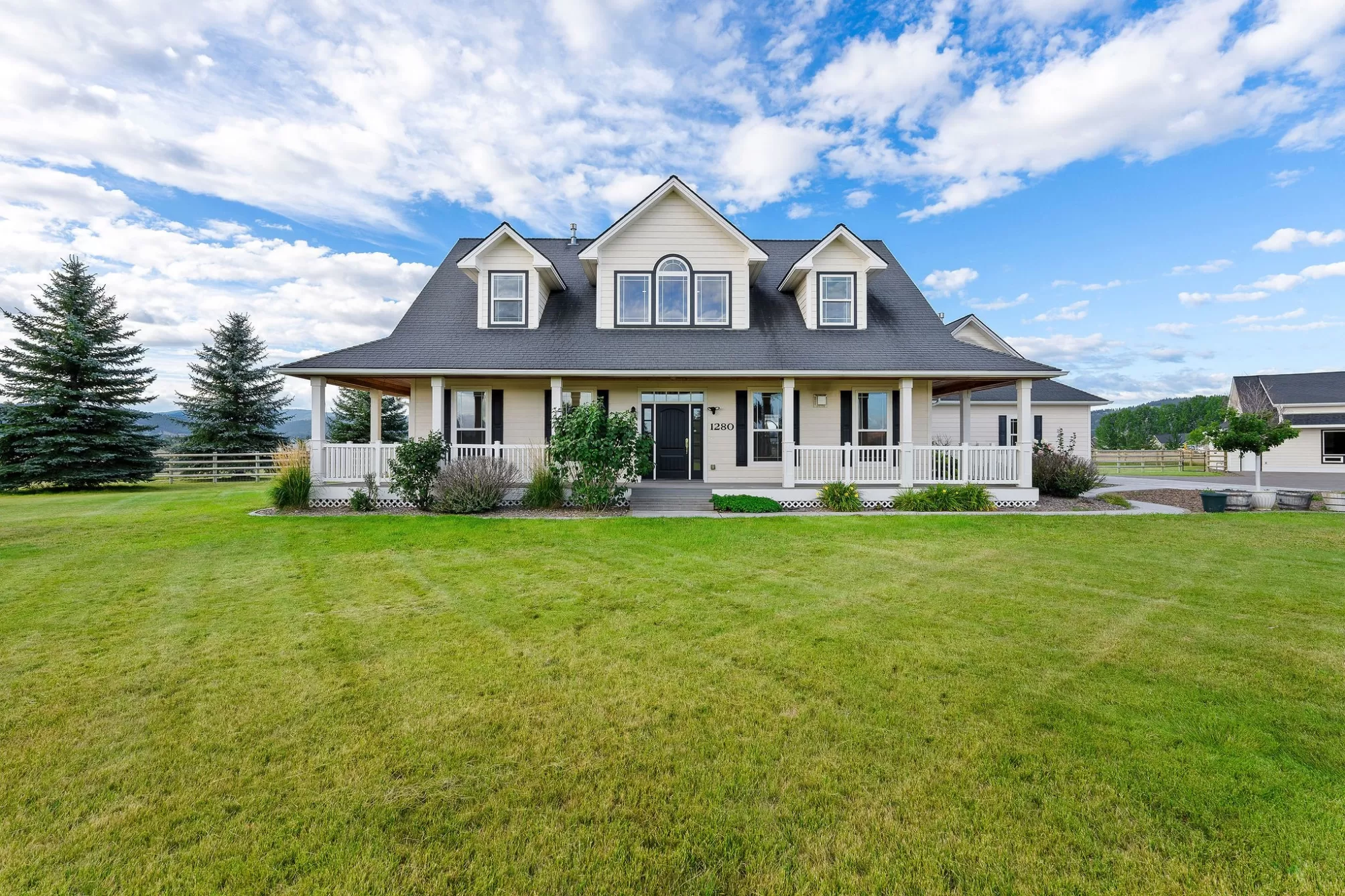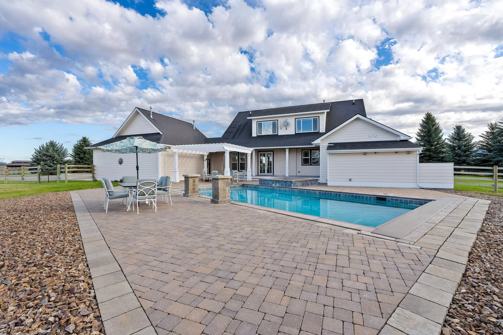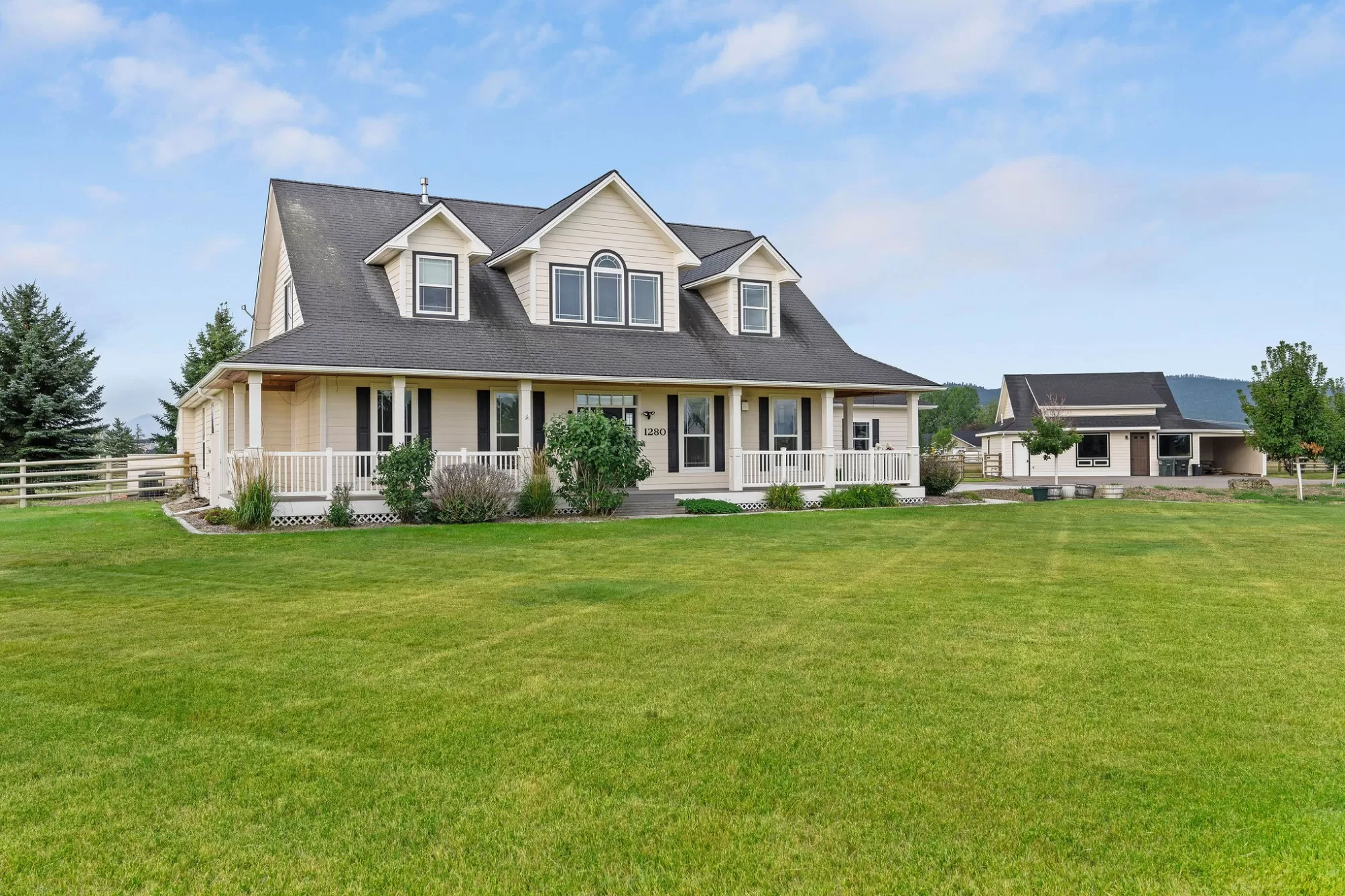 Bring your horses! Experience the epitome of equestrian luxury in the heart of northwest Montana. This remarkable 10-acre estate features a beautifully crafted farmhouse that blends elegance and exceptional craftsmanship, offering 4 spacious bedrooms, 4 luxurious bathrooms, and a gourmet kitchen designed for culinary artistry. The property is perfect for entertaining, and boasts a heated pool, oversized hot tub, and abundant outdoor spaces. The guest house complements the estate, and the world-class equestrian facilities and custom fencing put it in a league of it's own. Ideally located just minutes from the renowned Rebecca Farm Equestrian Center, Logan Health Hospital, and Glacier International Airport, this exceptional property offers both luxury and convenience. All information deemed reliable but not guaranteed and should be independently verified by buyers and their agents.