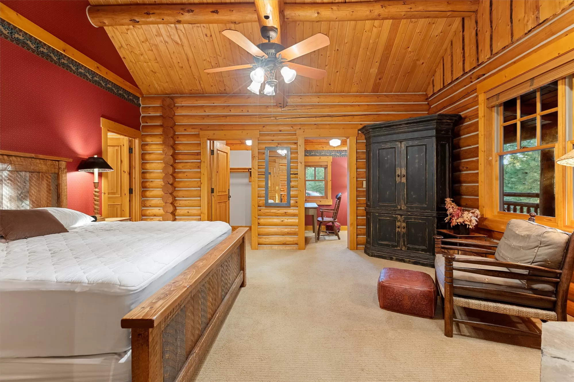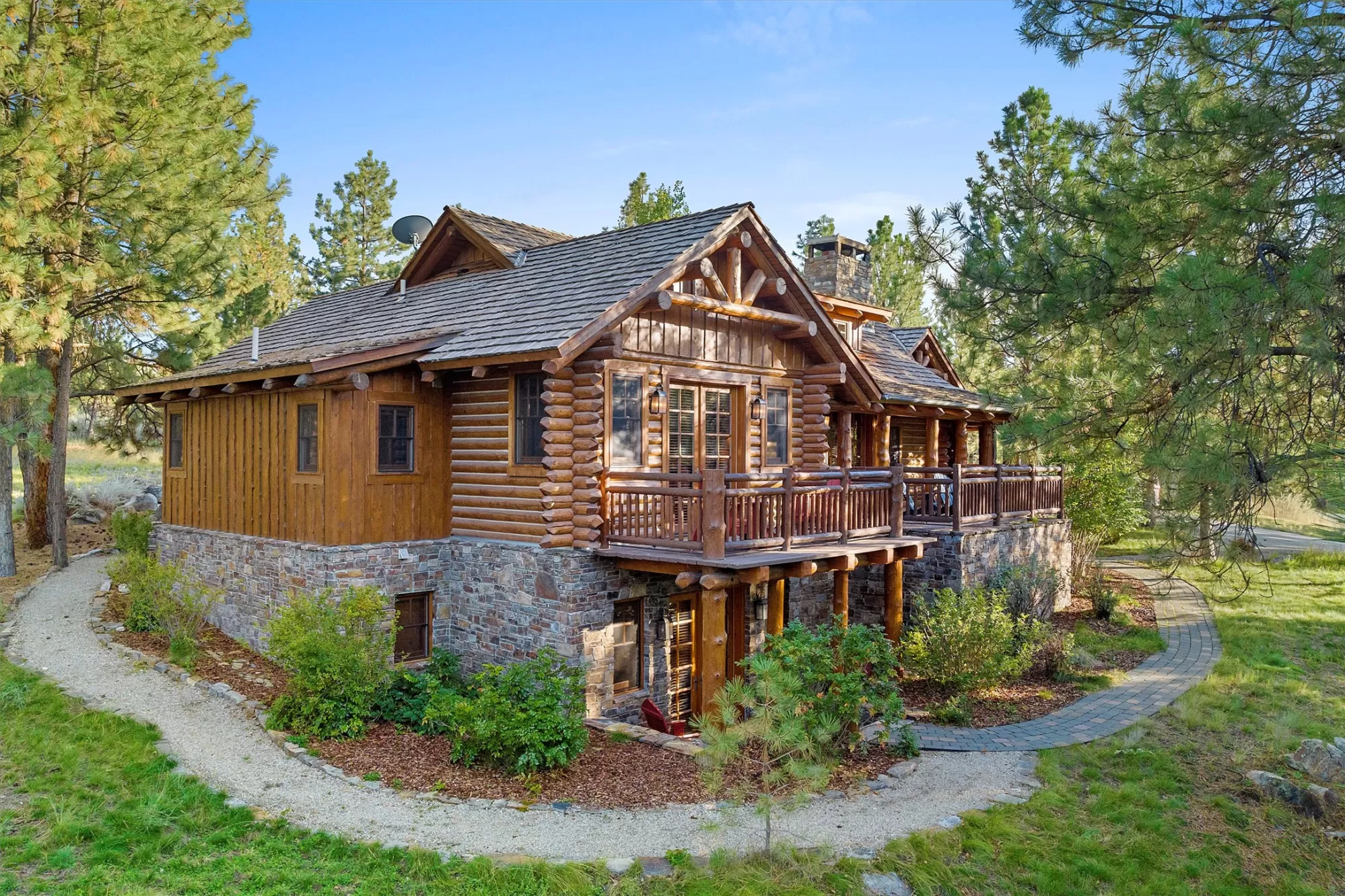 Beautiful custom log home located in the prestigious Bitterroot Valley Stock Farm Club. This home is nestled perfectly on .8 acres of manicured wooded land. Enjoy the best this Montana lifestyle has to offer with 4 bedrooms, 4 1/2 bathrooms and panoramic views of the Bitterroot mountain range. Custom features include an open concept living room with massive stone wood burning fireplace, custom woodwork, and a large primary suite on the main level. There are two floors perfect for separate private living areas. Numerous decks and balconies overlook the expansive Stock Farm common area and outdoor fire pit. An abundance of wildlife frequent the area and there is an abundance of beautiful native vegetation. The Stock Farm Club House features a gourmet dining experience and is located just a short golf cart drive away as well as a spa, gym and the famous Tom Fazio designed golf course. Stock Farm membership is not included with the offering. This cabin is part of the rental pool.