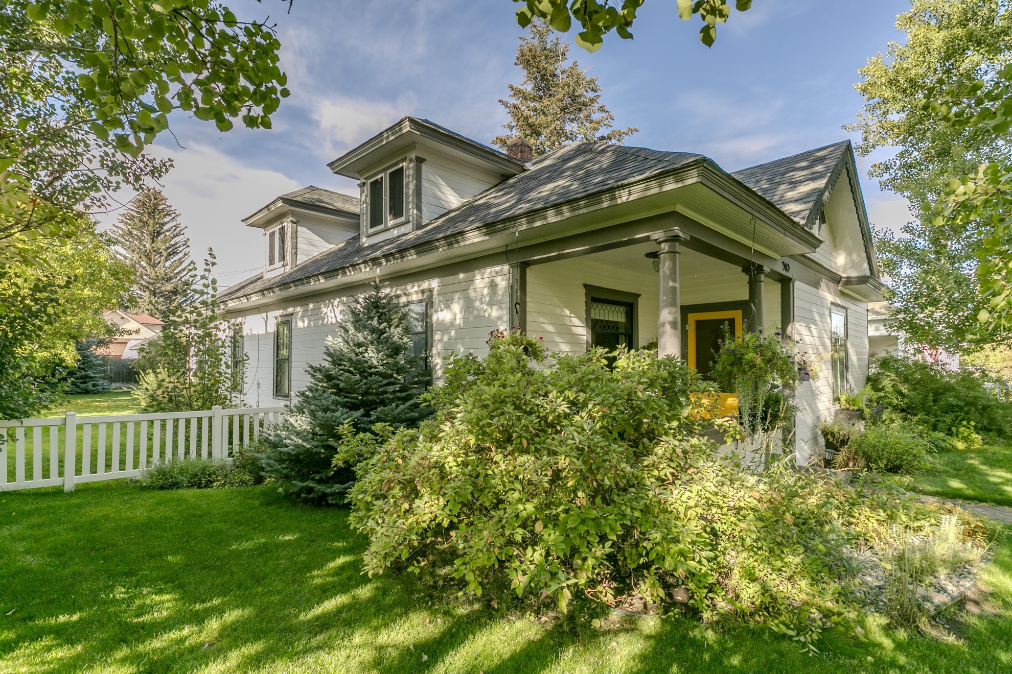 Timeless charm in the heart of Big Timber! You’ll appreciate the vintage character and modern comfort the moment you step inside this beautifully cared-for 1904 home. Original oak floors, pocket doors, and bright, welcoming rooms blend seamlessly with thoughtful updates throughout. The yard is beautifully landscaped with mature quaking aspens, colorful flower beds, and a classic white picket fence—enhanced by a seasonal shared well for convenient irrigation. A detached garage with workshop and alley access complete this picture-perfect home.