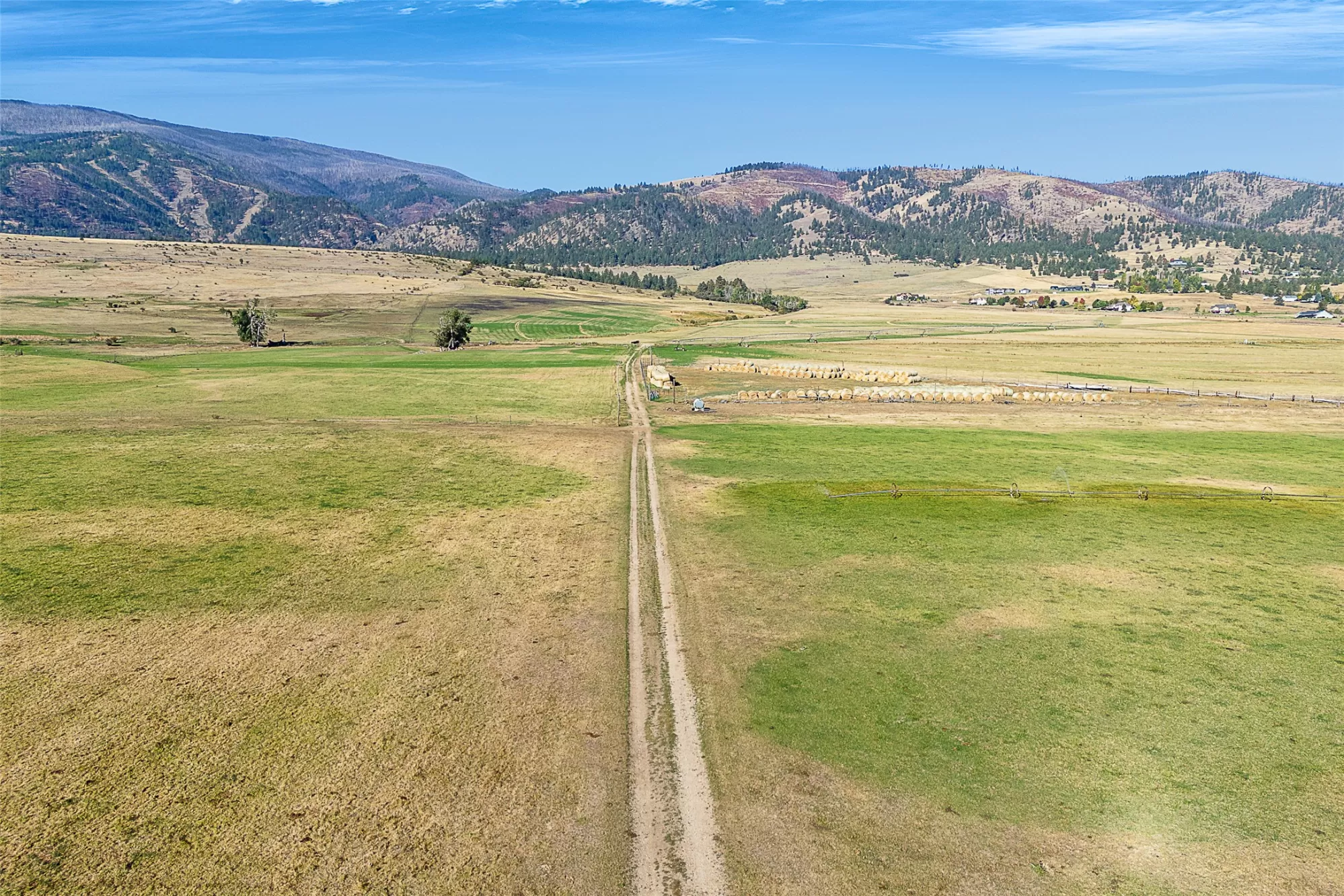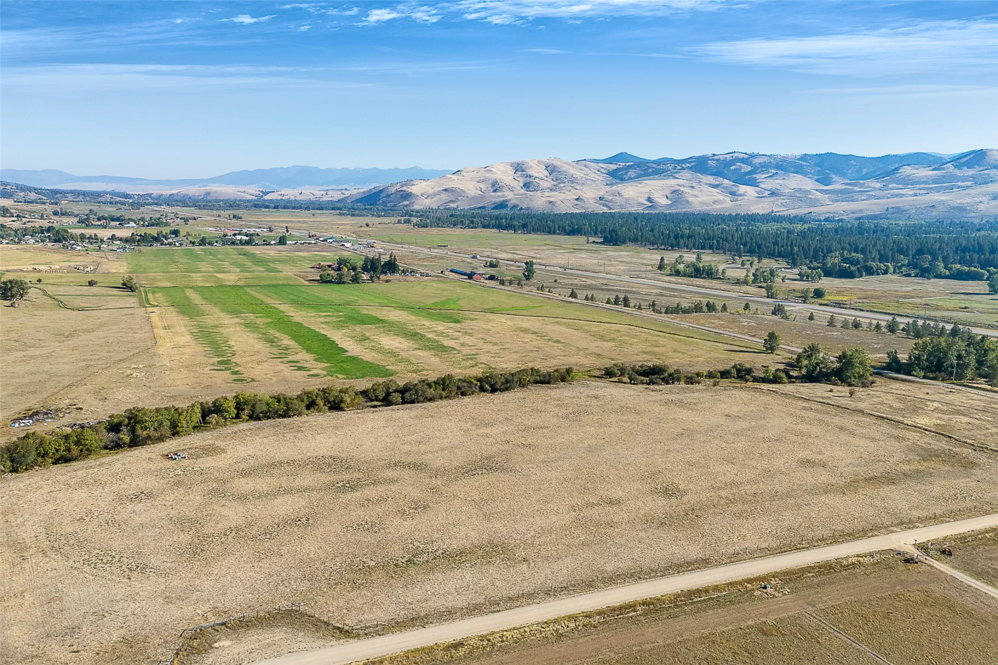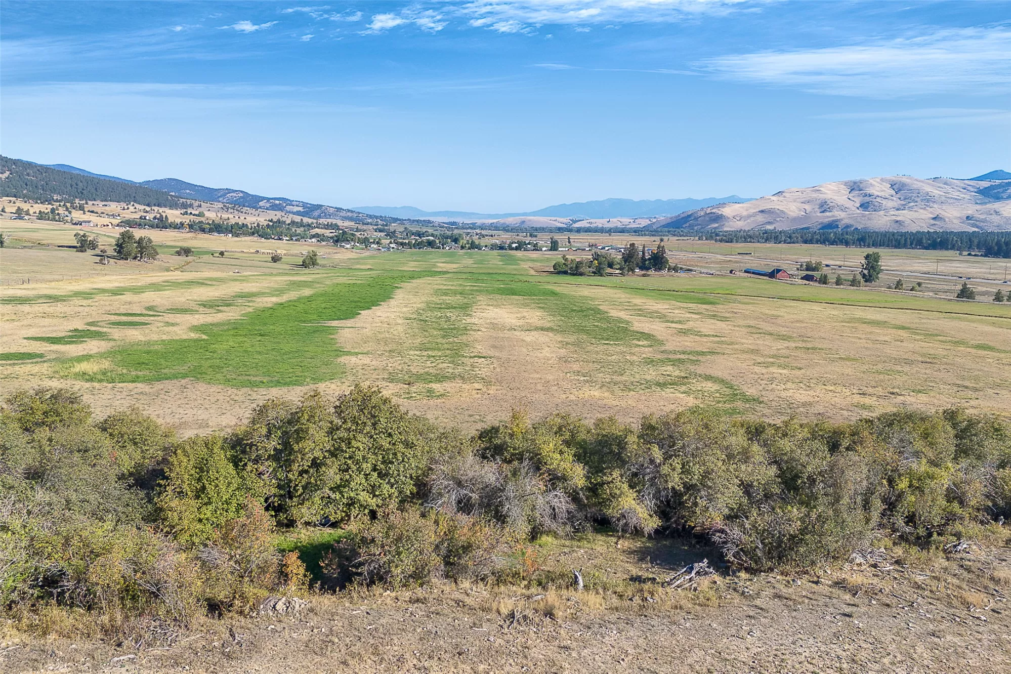 Homestead Village at Lolo Ranch offers 196.88± acres of level, highly productive, and irrigated farmland nestled in the scenic Bitterroot Valley—just minutes south of Missoula. With impressive hay production, established irrigation ditches, and irrigation equipment included, this property provides a rare balance of agricultural efficiency and development versatility. Multiple equipment sheds support ongoing ranch operations, while the flat terrain and panoramic mountain views create an ideal setting for a gentleman’s ranch, horse facility, or private owner’s compound. County zoning guidance is for potential one-acre tracts, supported by nearby utilities, offering a unique opportunity for a master-planned residential or commercial center within the greater Lolo Ranch community. Homestead Village is an integral part of Lolo Ranch’s holistic land plan, designed to preserve the valley’s agricultural heritage, protect wildlife corridors, and maintain open space while thoughtfully introducing residential and lifestyle enclaves. Here, the land itself dictates the vision—a timeless Montana landscape ready to inspire its next chapter.