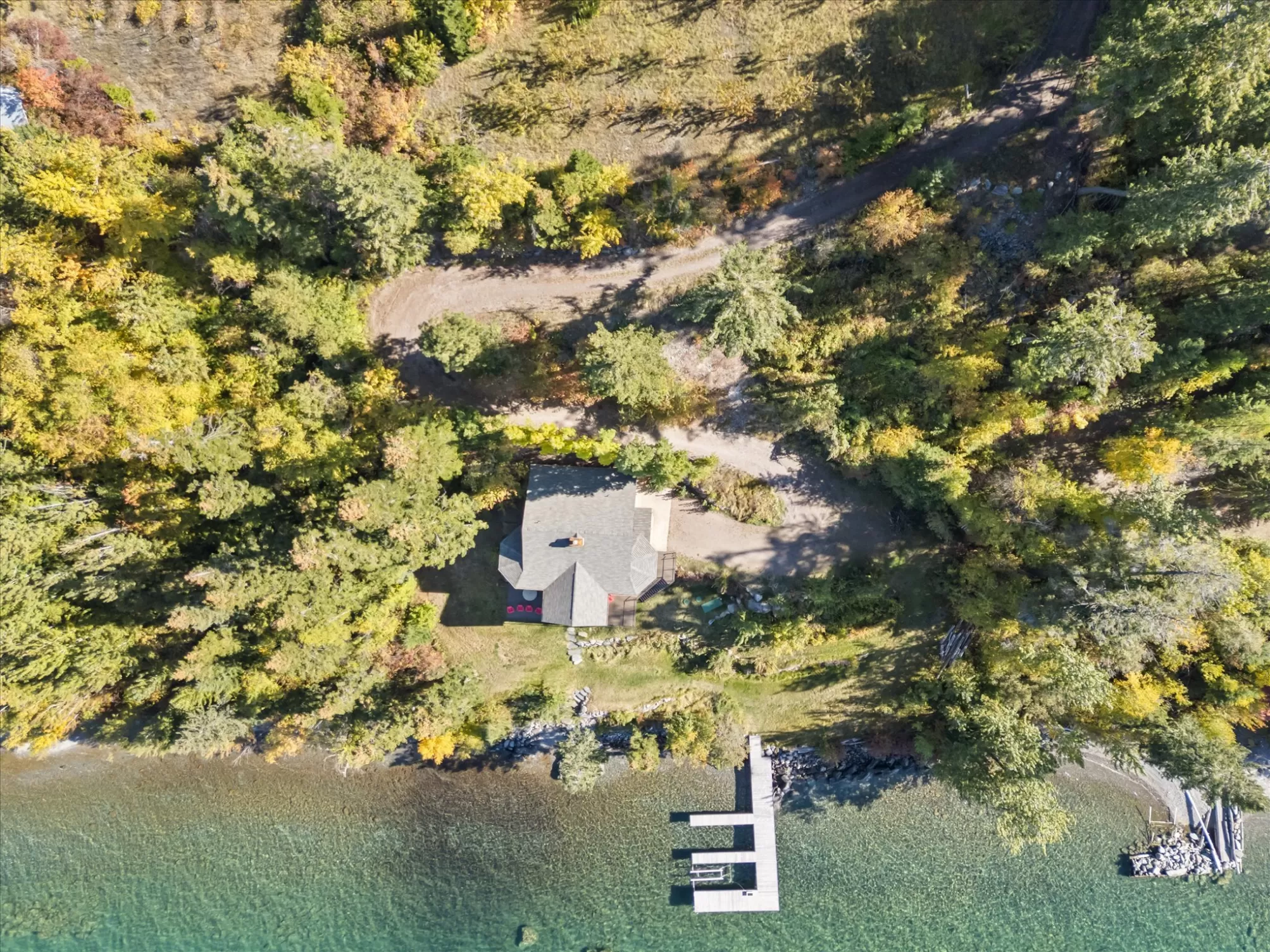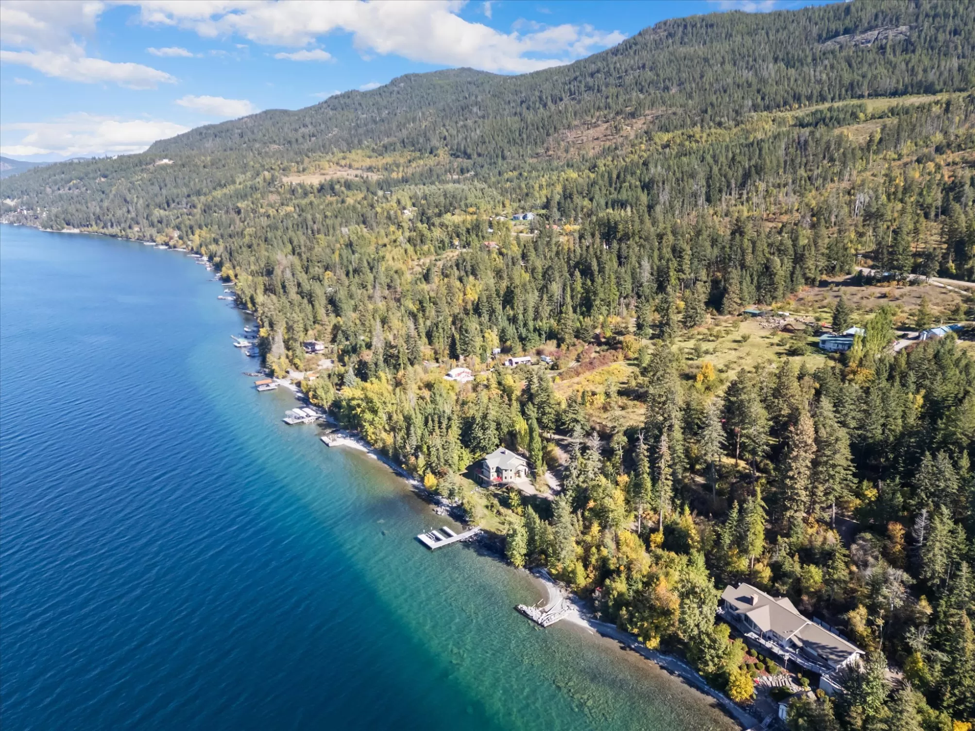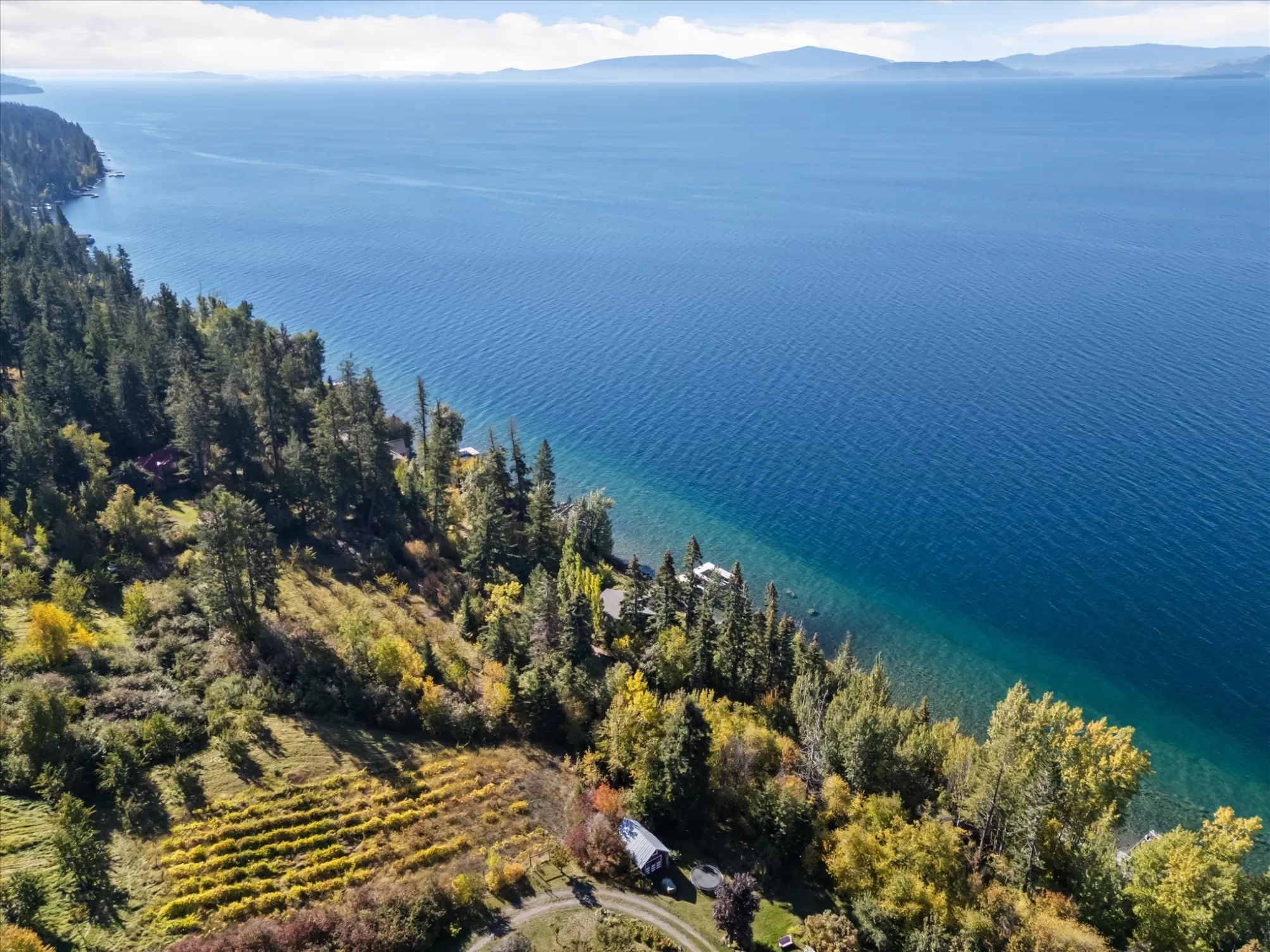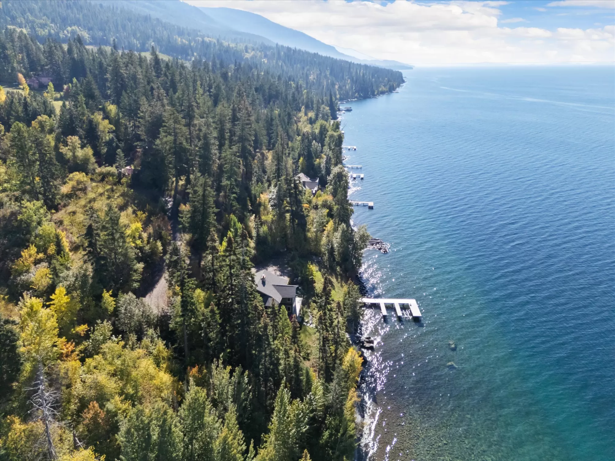 Experience a rare opportunity to own one of Flathead Lake’s most private and picturesque properties. Nestled on the East shore with 192 feet of pristine lake frontage, this exceptional estate is framed by a serene creek on one side and stunning mountain and lake vistas on the other; an unparalleled level of seclusion that is nearly impossible to find today. This turnkey luxury retreat seamlessly blends timeless craftsmanship with modern comfort. The heart of the home centers around a magnificent two-story stone fireplace, framed by an open balcony and vaulted ceilings that create a warm yet dramatic gathering space. Thoughtful custom details are found throughout, and the lower walk-out level adds an additional entertaining area and private bedroom suite for guests. Step outside to the expansive deck and take in sweeping views of Flathead Lake, or stroll through the beautifully manicured grounds where orchard trees and remnants of a vineyard lead you to the shoreline. A private swim cove, pebble beach swimming area, and a robust custom dock make lakeside living effortless and unforgettable. Impeccably maintained and move-in ready, this home offers both luxury and comfort in equal measure. Currently operating as a successful VRBO, it also presents a unique investment opportunity. Truly one-of-a-kind property where tranquility, elegance, and Montana’s natural beauty converge.