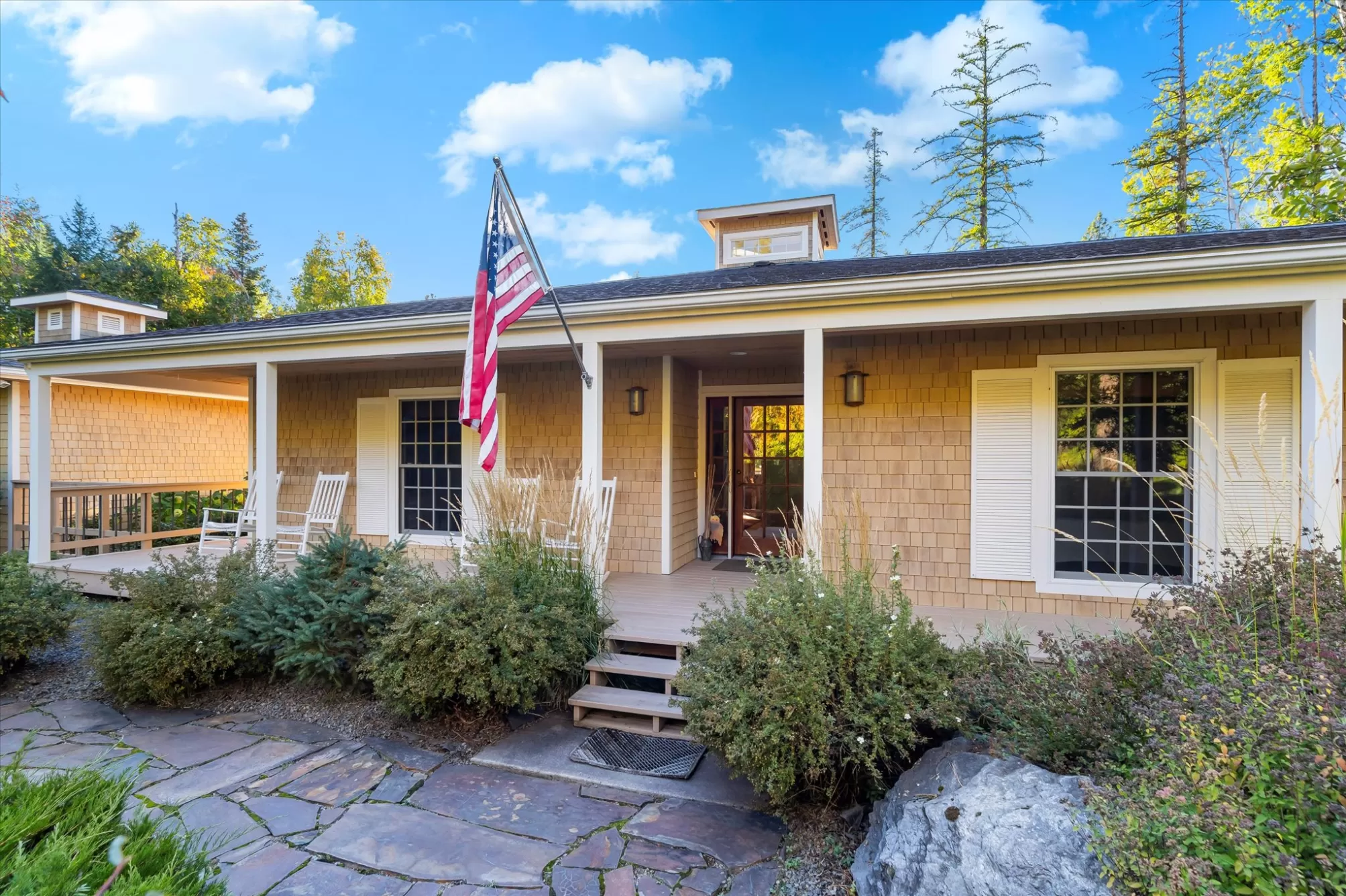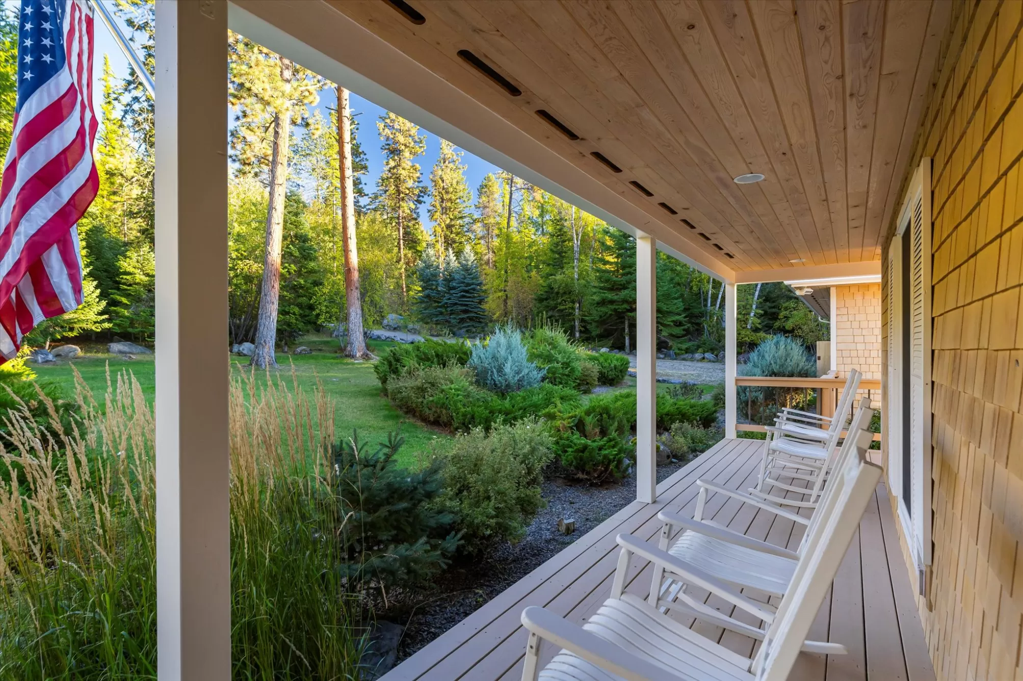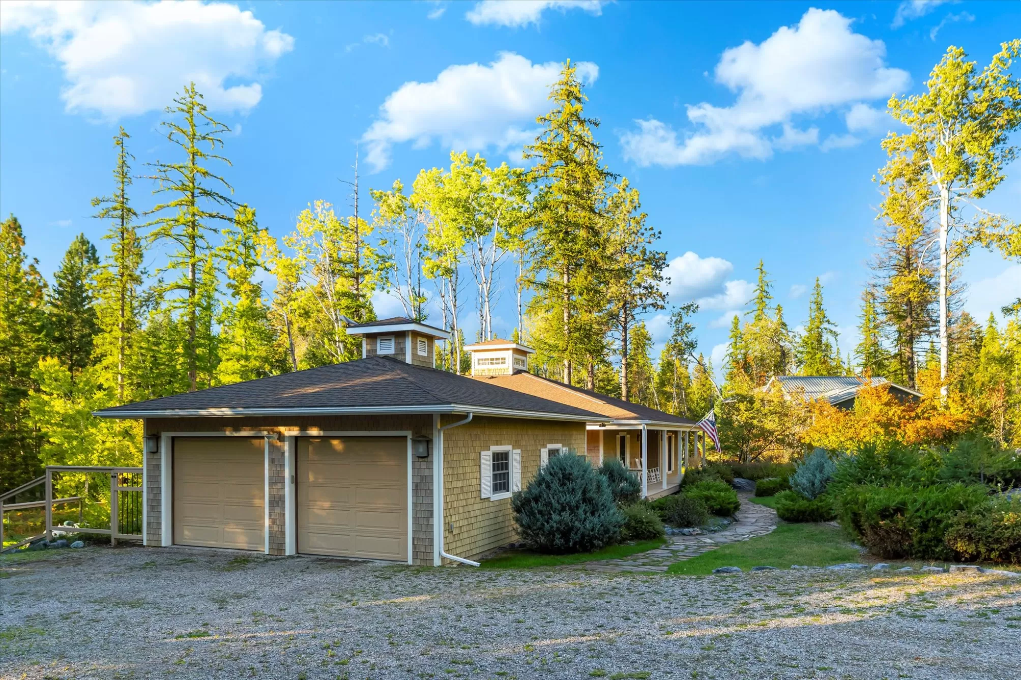 Nestled in the storybook village of Bigfork, Montana, this beautifully crafted home blends classic coastal architecture with the warmth of mountain living. Wrapped in white cedar shingles and surrounded by whispering pines, it radiates timeless charm and a sense of calm from the moment you arrive. Built with quality and care, the home features century-old heart pine floors reclaimed from the original Sears Roebuck Warehouse in Chicago, custom cabinetry, genuine plaster walls, and carefully chosen fixtures that create an atmosphere of understated elegance. The primary suite offers a vaulted sitting area, two walk-in closets, dual vanities, and a steam shower, while a private lower-level suite provides comfort for guests or extended family, or a secondary primary room. Recent updates include new appliances, a York HVAC heat pump and air handler, a recirculating hot water system, and a new roof and decking. Multiple porches and decks invite you to enjoy the quiet beauty of the wooded 1.19 acre setting. The covered breezeway connects the main house to a heated two car garage, and the professionally landscaped gardens complete this peaceful retreat. With four bedrooms, three baths, and 2,668 square feet of living space, this home offers refined craftsmanship, comfort, and the enduring appeal of Bigfork’s mountain charm.