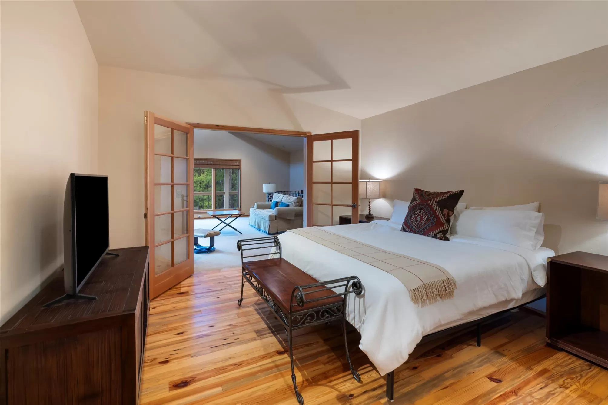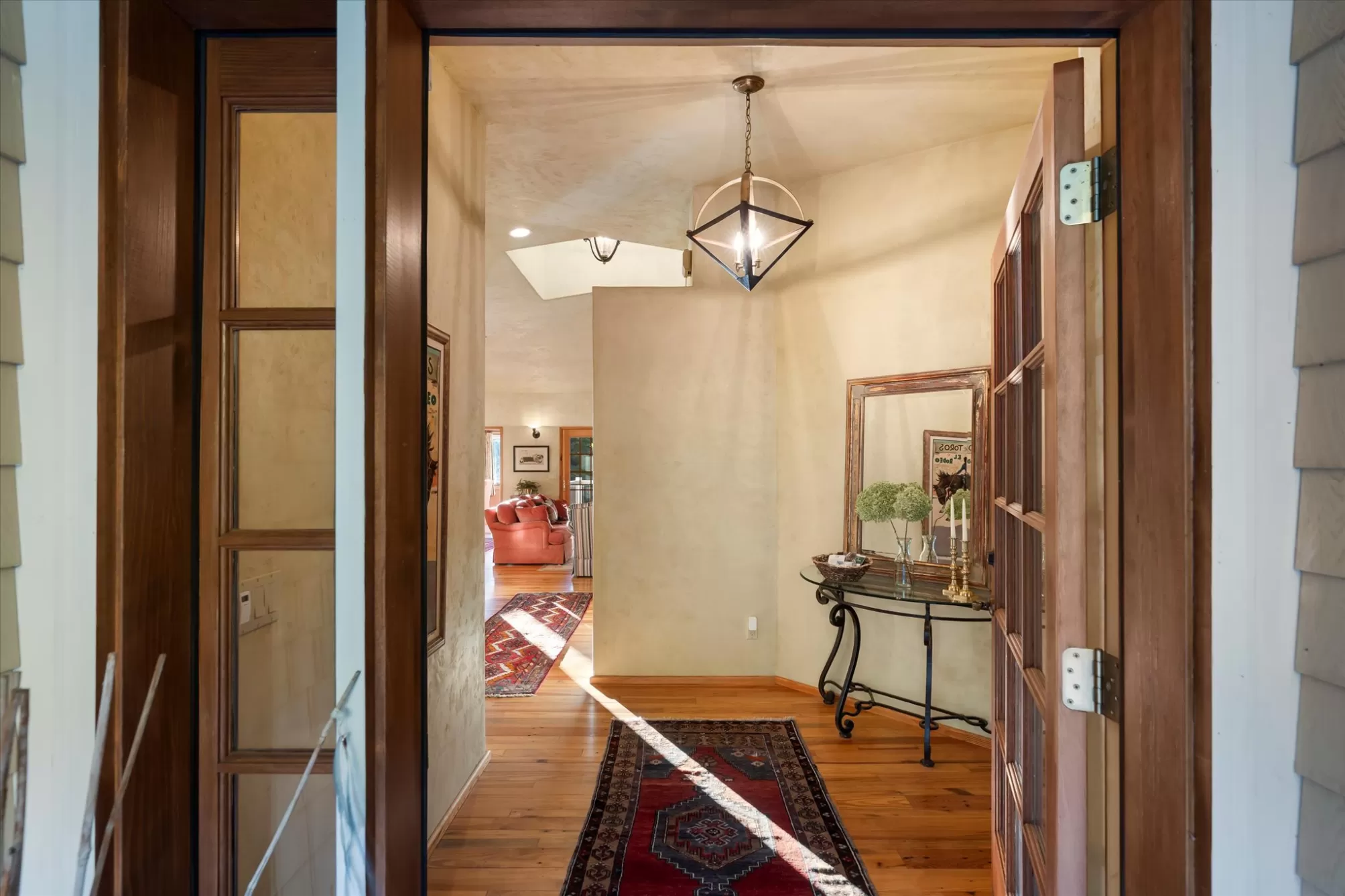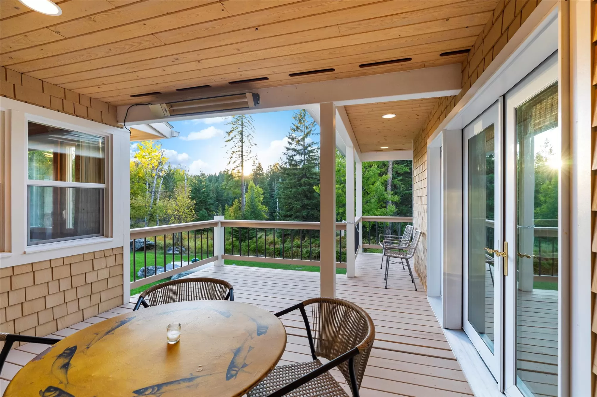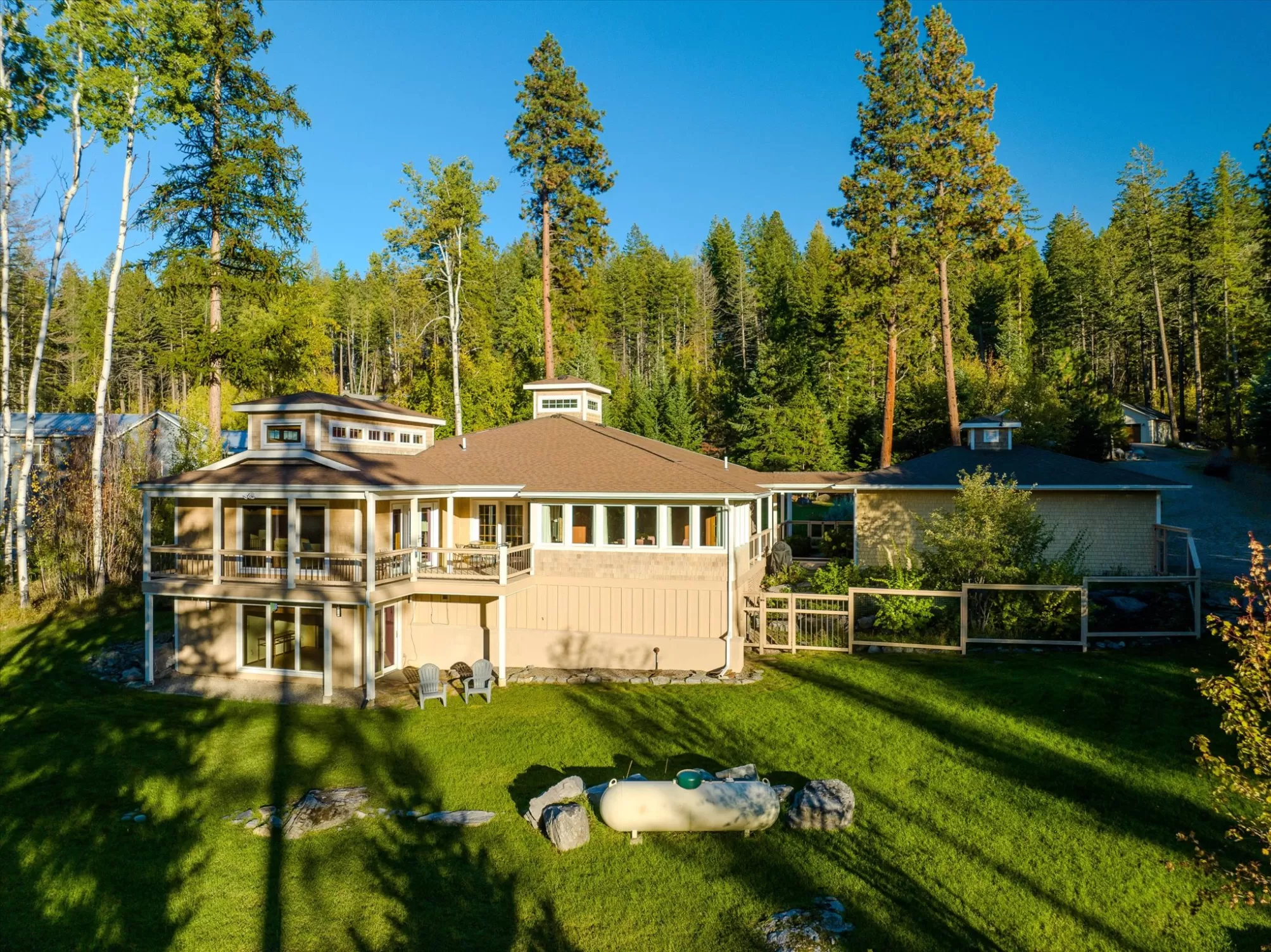 Nestled in the storybook village of Bigfork, Montana, this beautifully crafted home blends classic coastal architecture with the warmth of mountain living. Wrapped in white cedar shingles and surrounded by whispering pines, it radiates timeless charm and a sense of calm from the moment you arrive. Built with quality and care, the home features century-old heart pine floors reclaimed from the original Sears Roebuck Warehouse in Chicago, custom cabinetry, genuine plaster walls, and carefully chosen fixtures that create an atmosphere of understated elegance. The primary suite offers a vaulted sitting area, two walk-in closets, dual vanities, and a steam shower, while a private lower-level suite provides comfort for guests or extended family, or a secondary primary room. Recent updates include new appliances, a York HVAC heat pump and air handler, a recirculating hot water system, and a new roof and decking. Multiple porches and decks invite you to enjoy the quiet beauty of the wooded 1.19 acre setting. The covered breezeway connects the main house to a heated two car garage, and the professionally landscaped gardens complete this peaceful retreat. With four bedrooms, three baths, and 2,668 square feet of living space, this home offers refined craftsmanship, comfort, and the enduring appeal of Bigfork’s mountain charm.